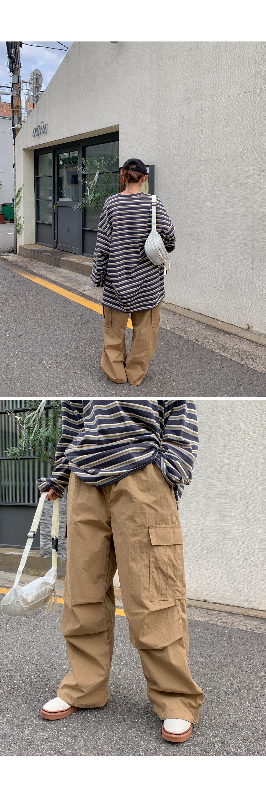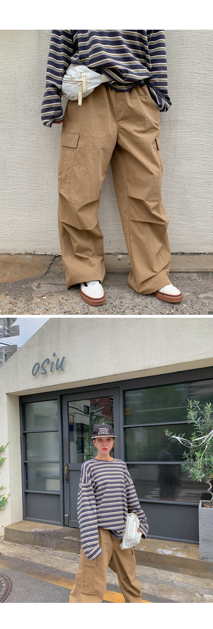 [15% off special sale] Pay Nylon Cargo two-way pintuck wide banding pants
