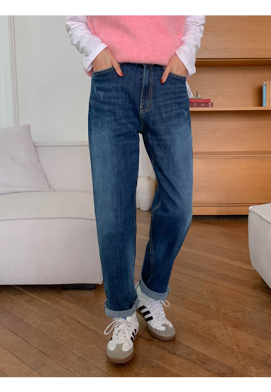 Barrel napping denim banding exhaust pants