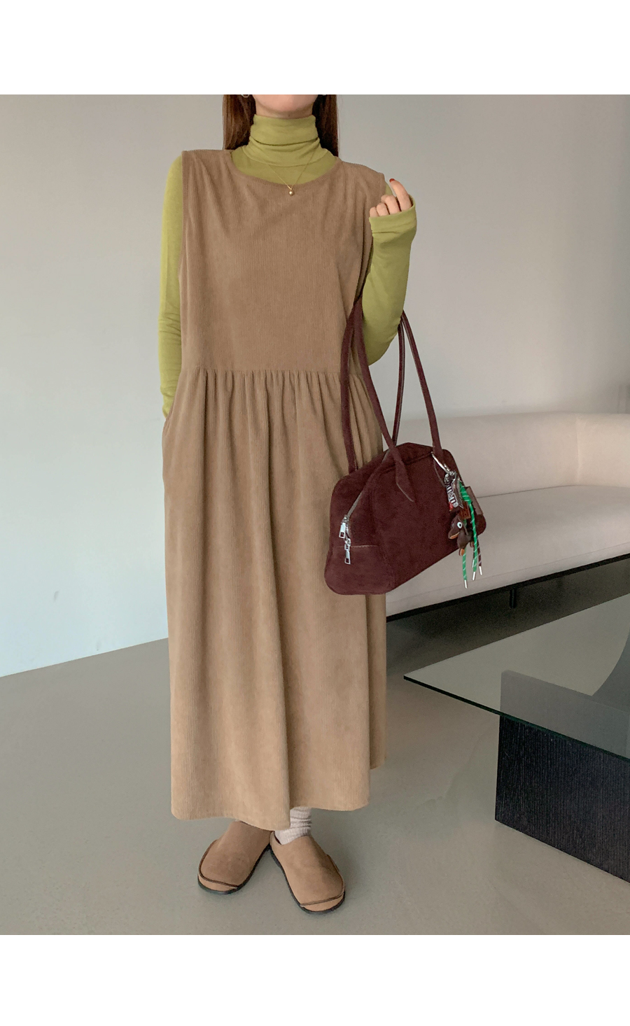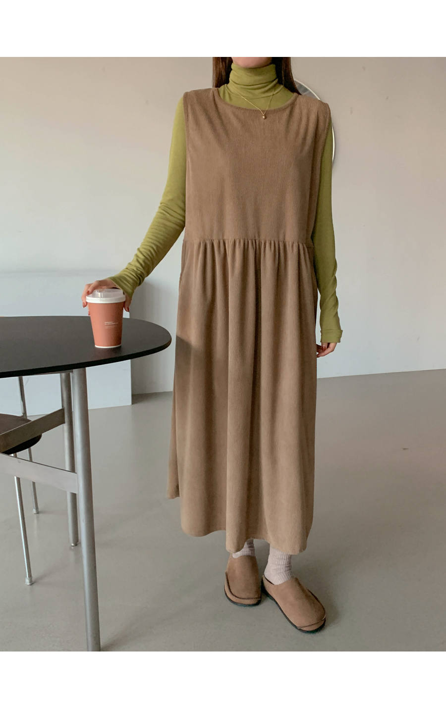 Connie Corduroy Sleeveless Shirts Long One Piece