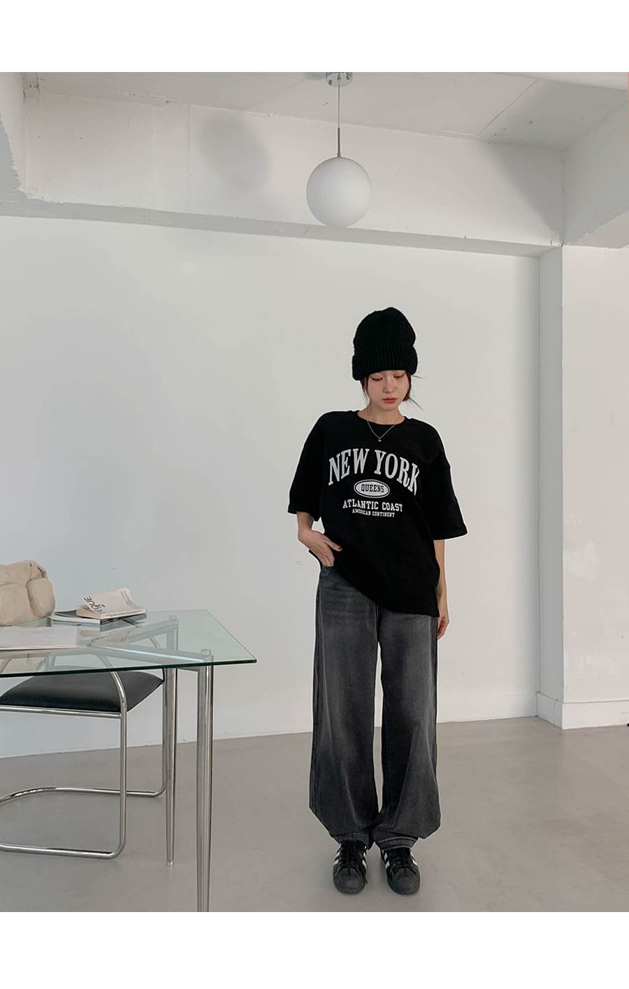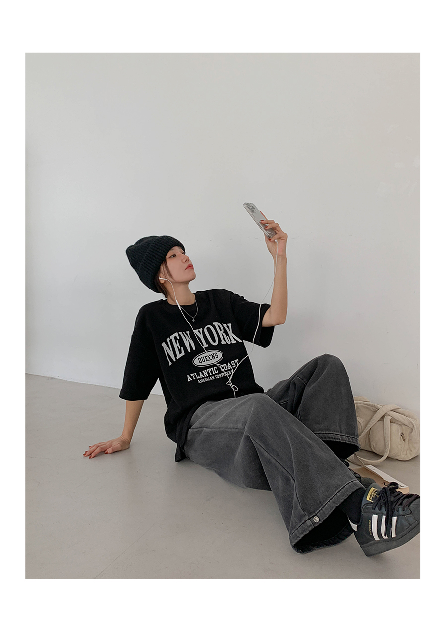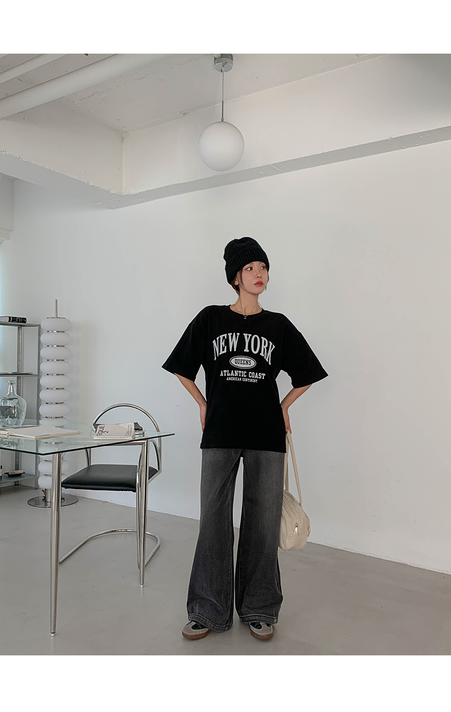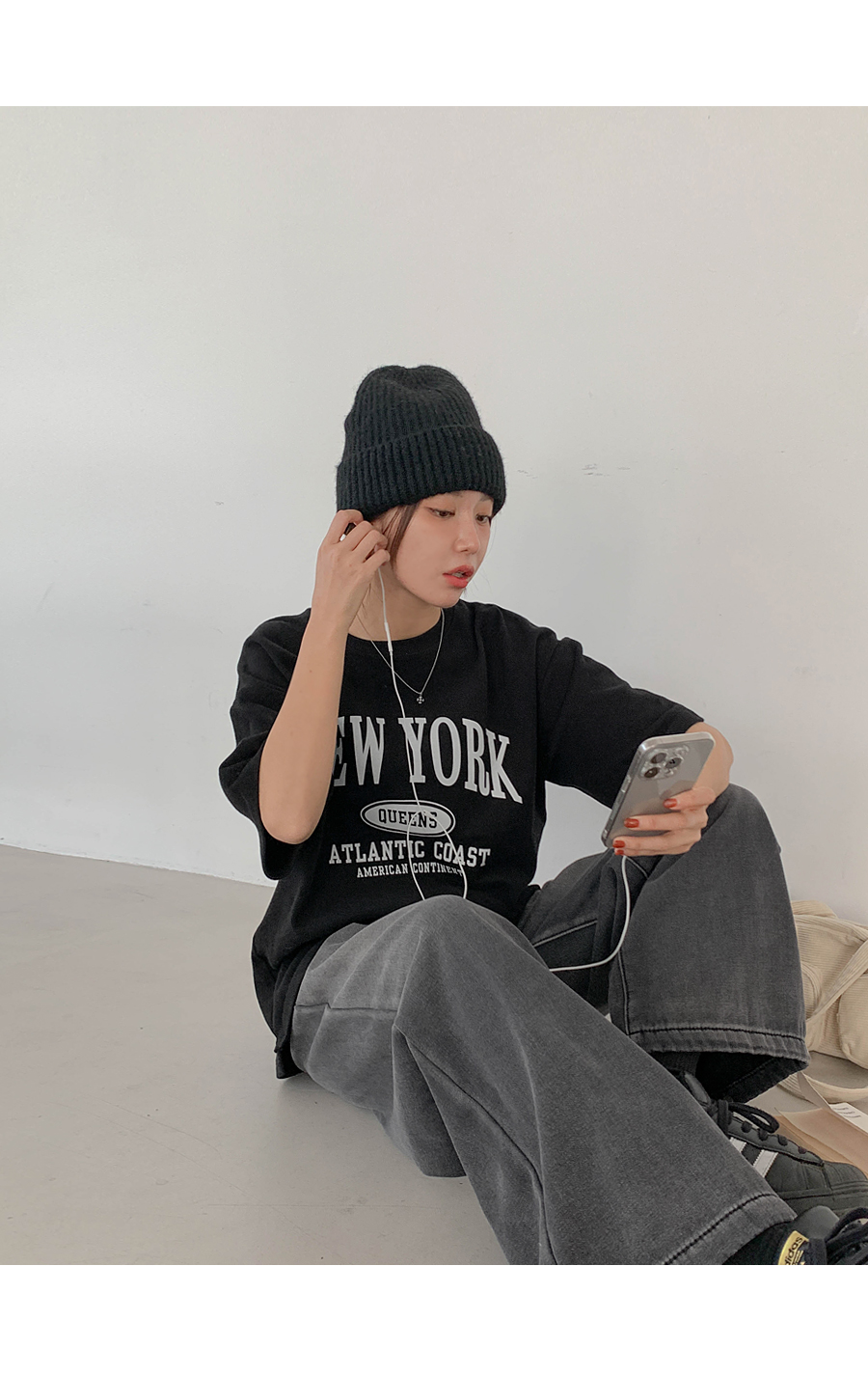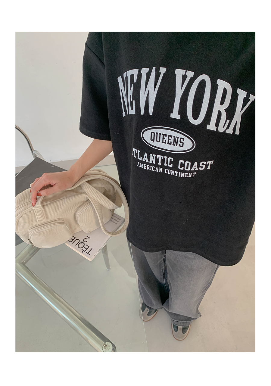 New York Printing Peach Fleece Short Sleeves T-shirt