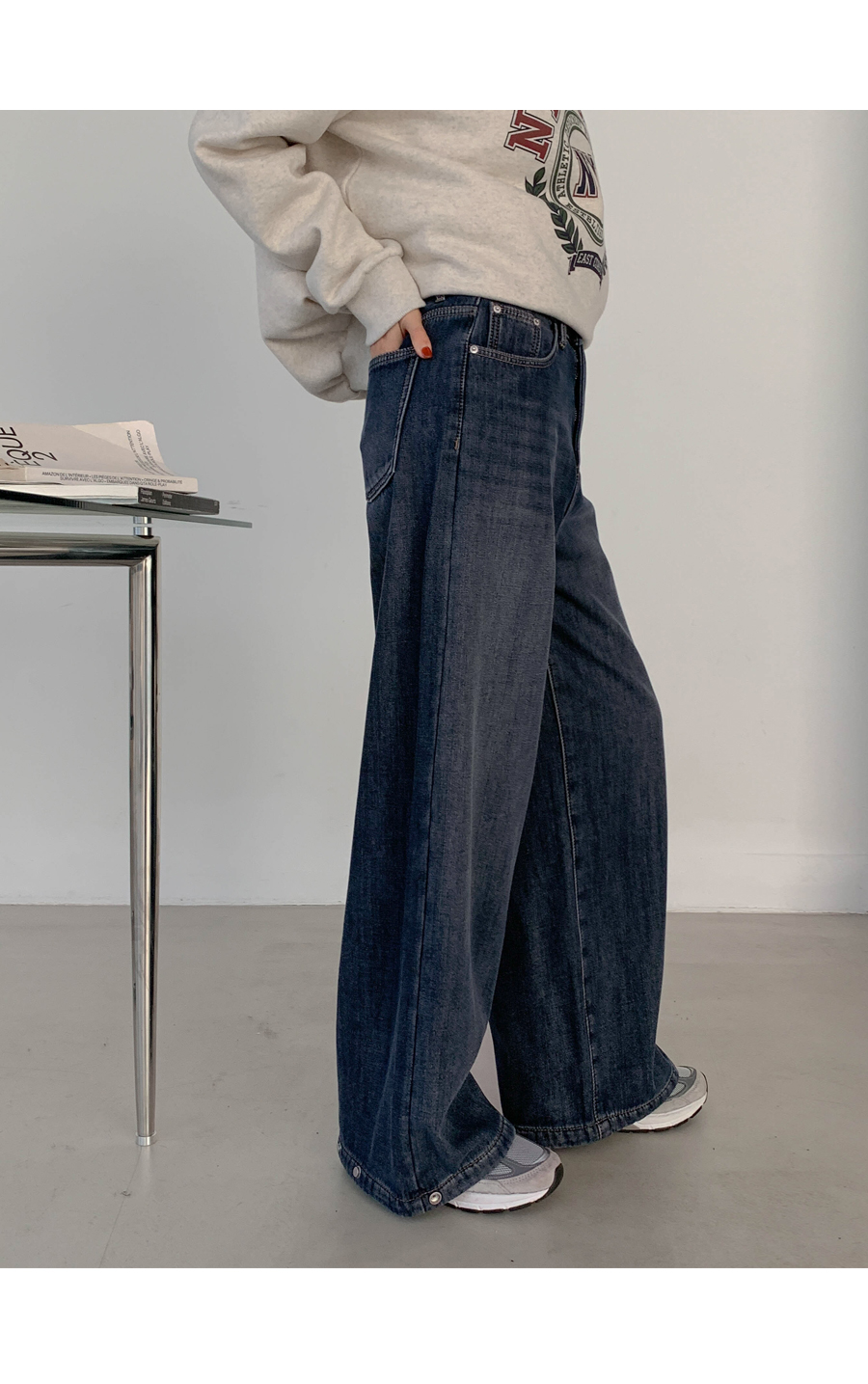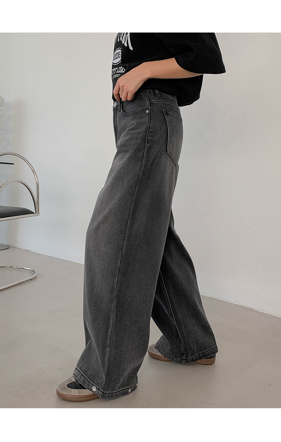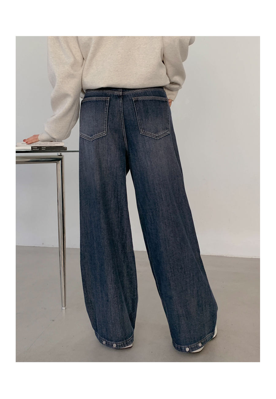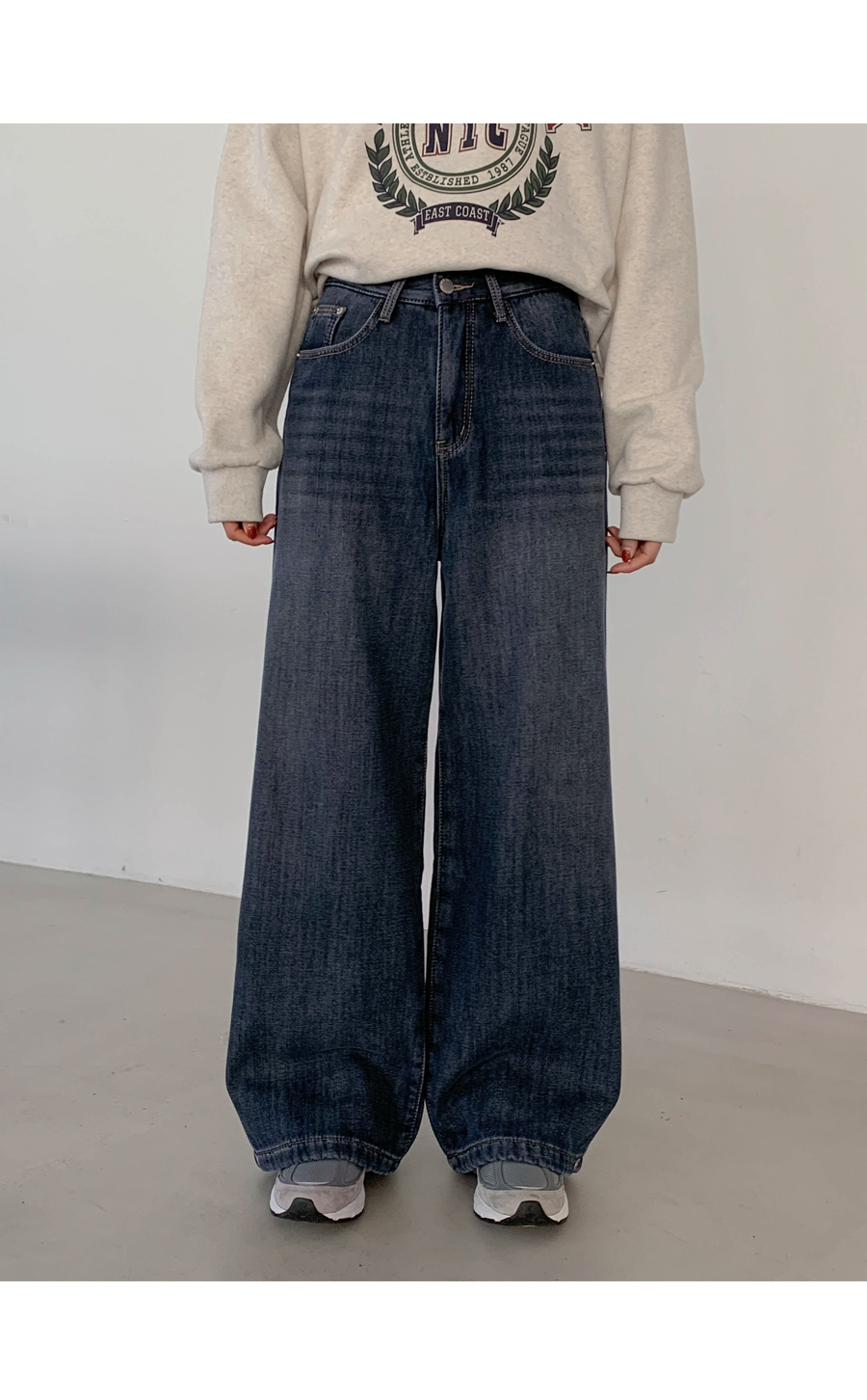 Coron Bonded Fleece Snap Denim Wide Pants (Short/Basic/Longver)