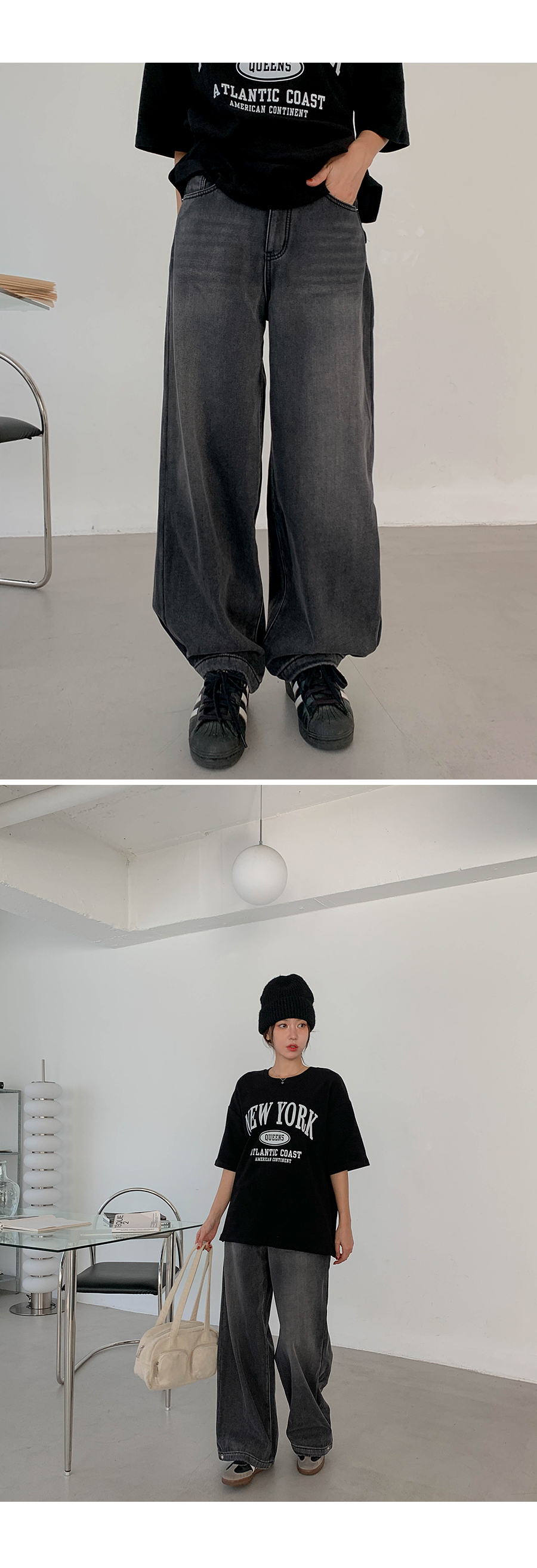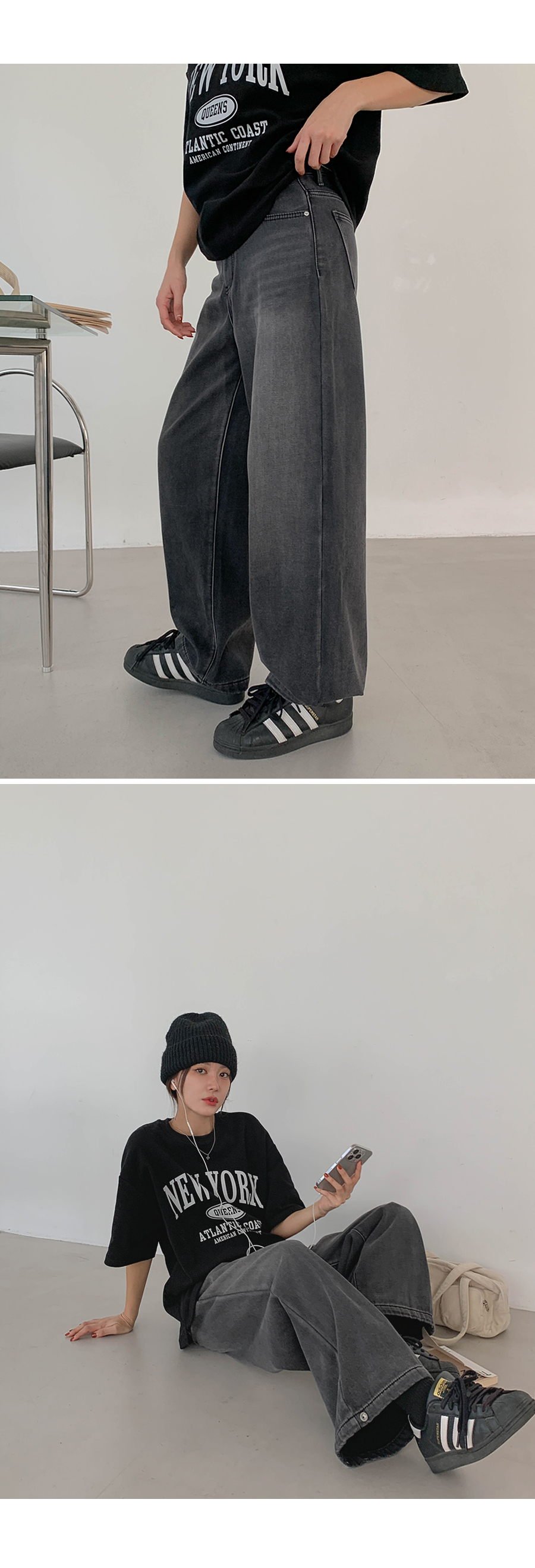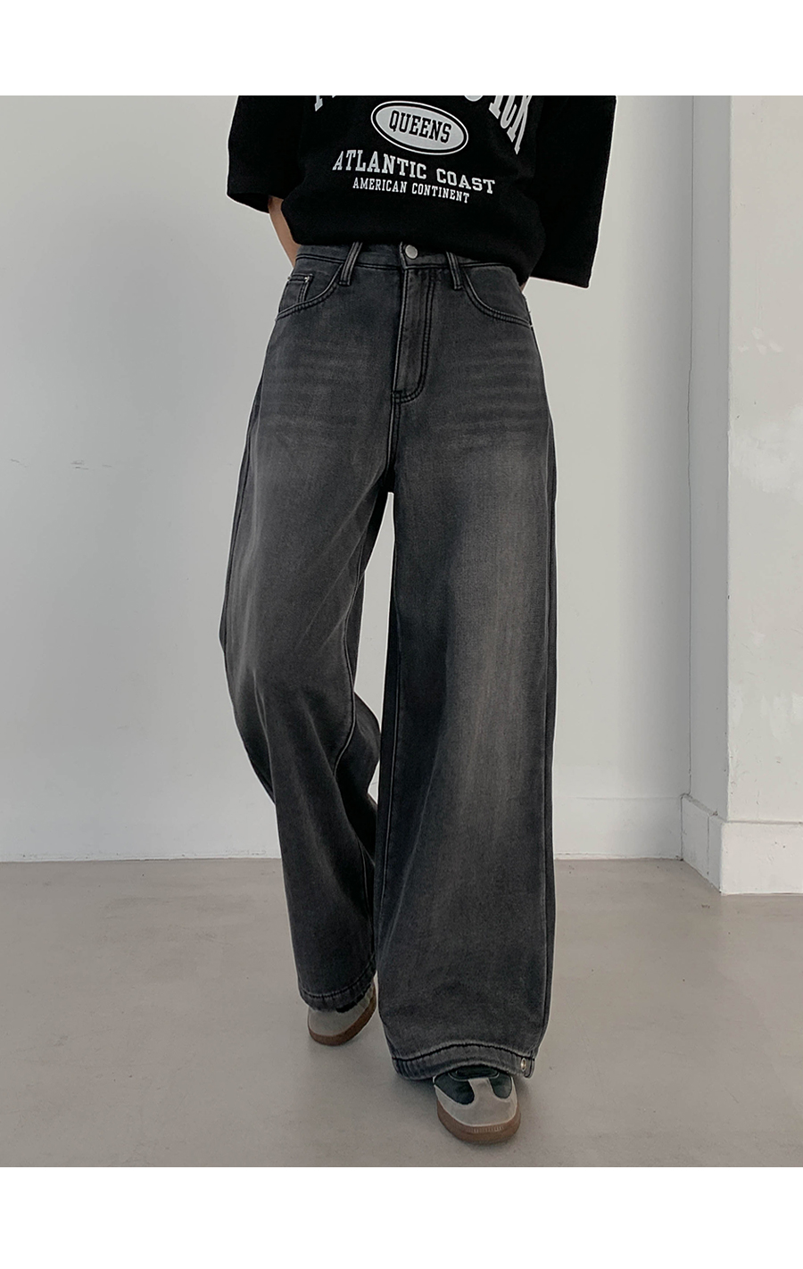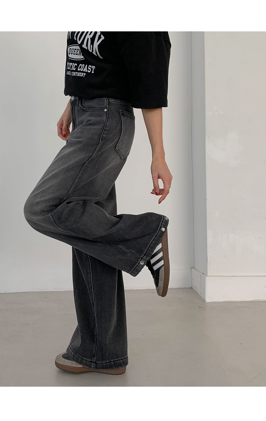 Coron Bonded Fleece Snap Denim Wide Pants (Short/Basic/Longver)