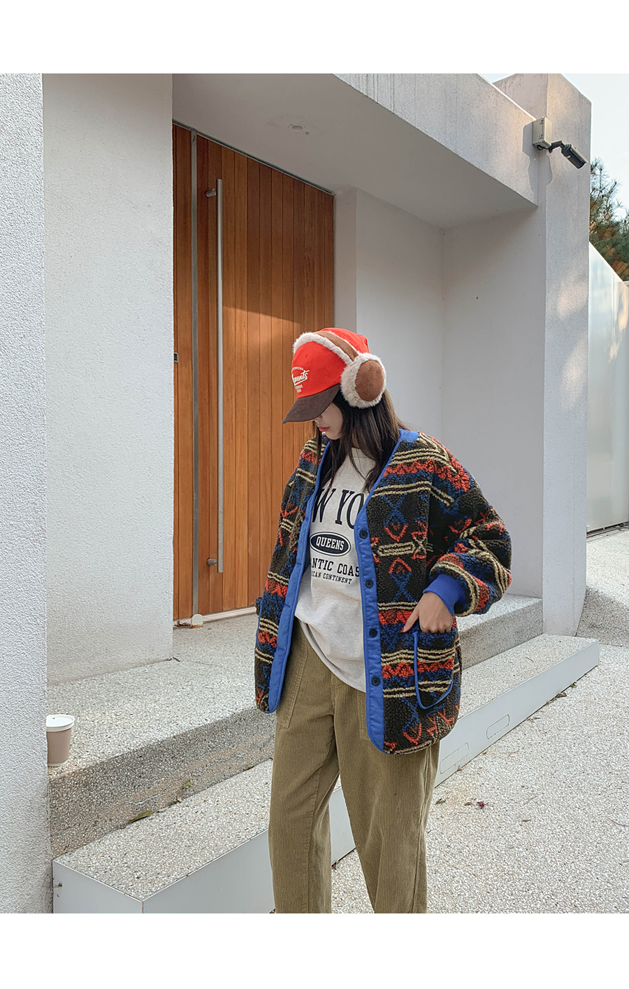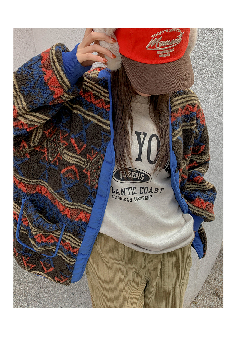 New York Printing Peach Fleece Short Sleeves T-shirt