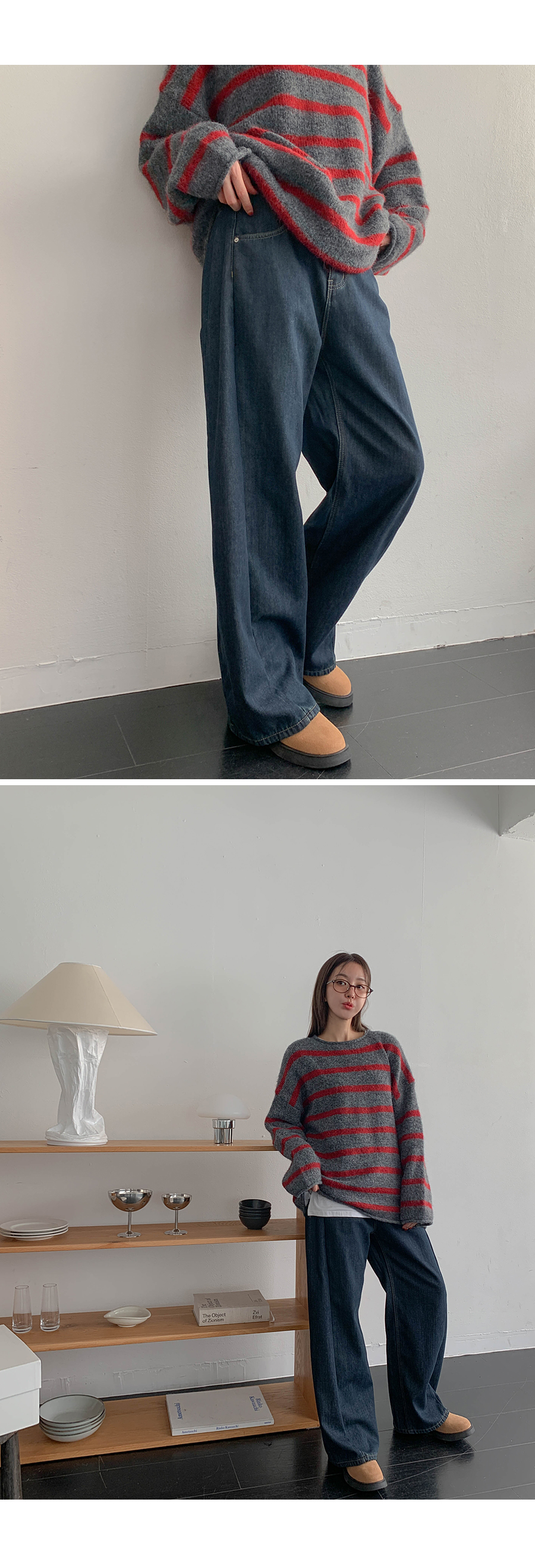 Spen Warm Pocket Bonded Fleece Cut Denim Wide Pants (Short/Basic/Longver)