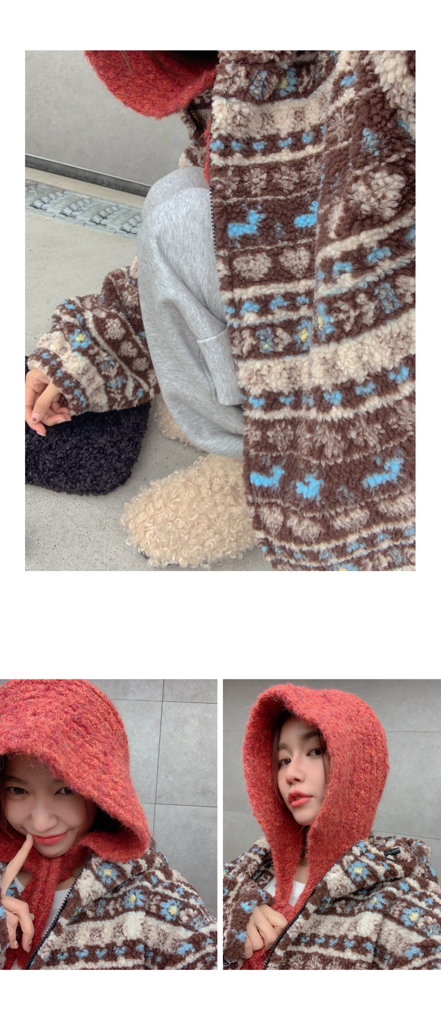 [Unisex] Deer Patterns String Dumble Highneck Hood Zip-up