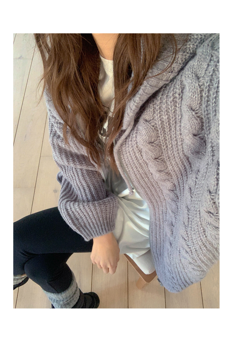 Wooner Twiddle Knit Hood Zip-up