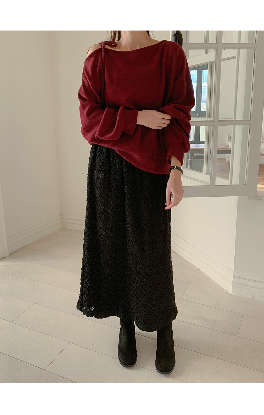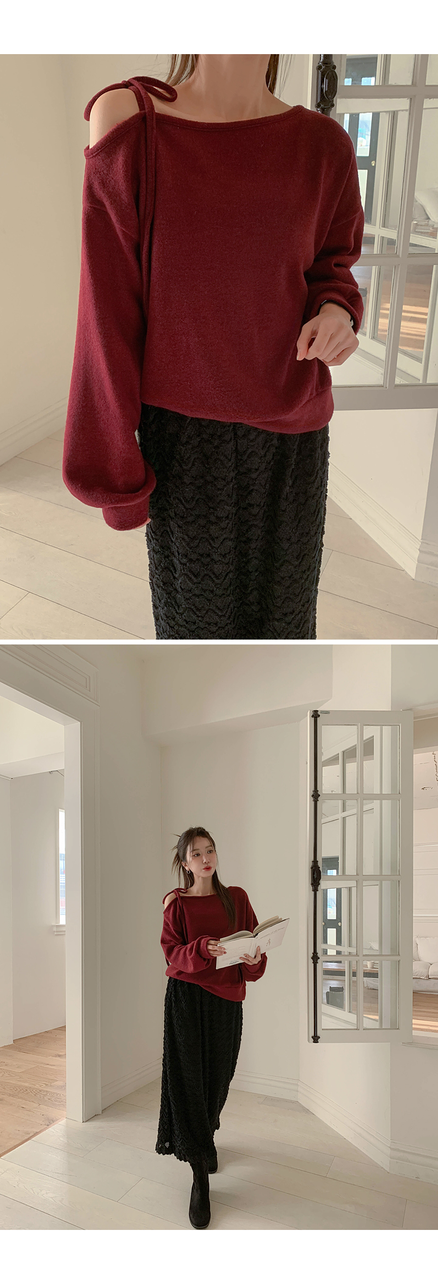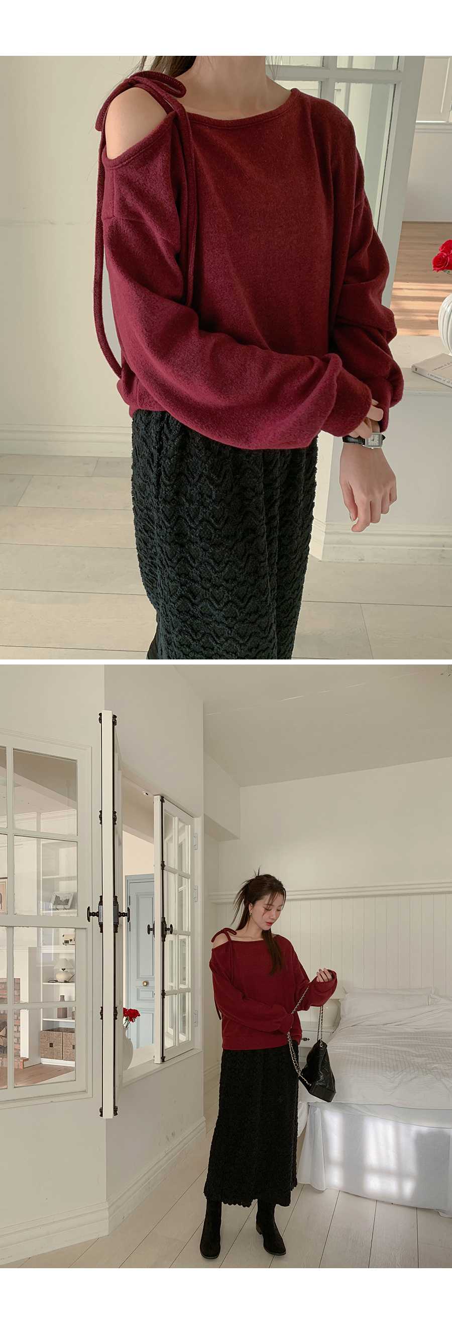 Soft off shoulder brushed long-sleeved T-shirt