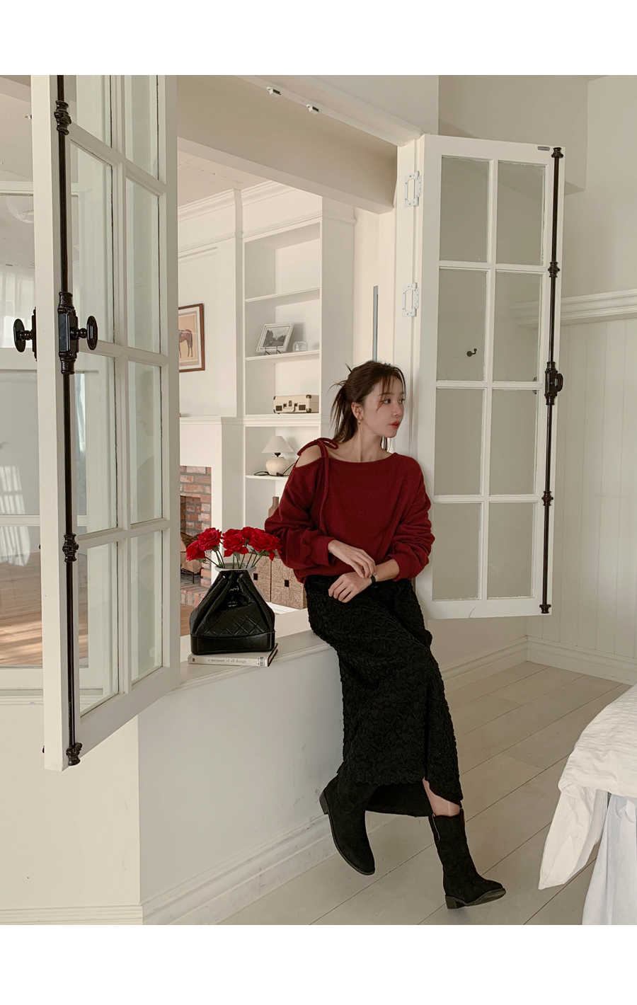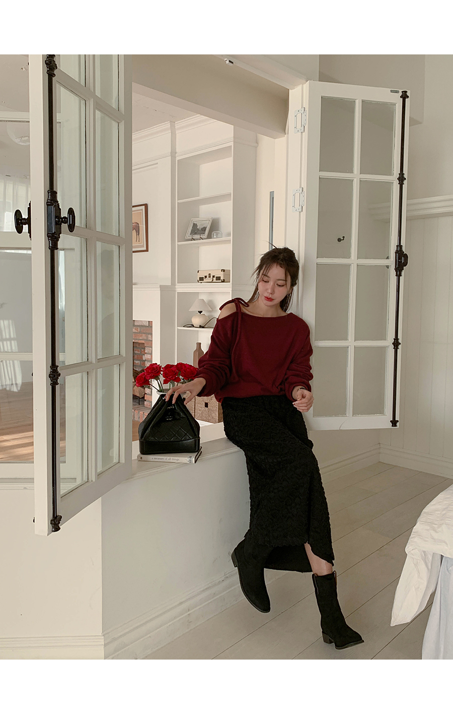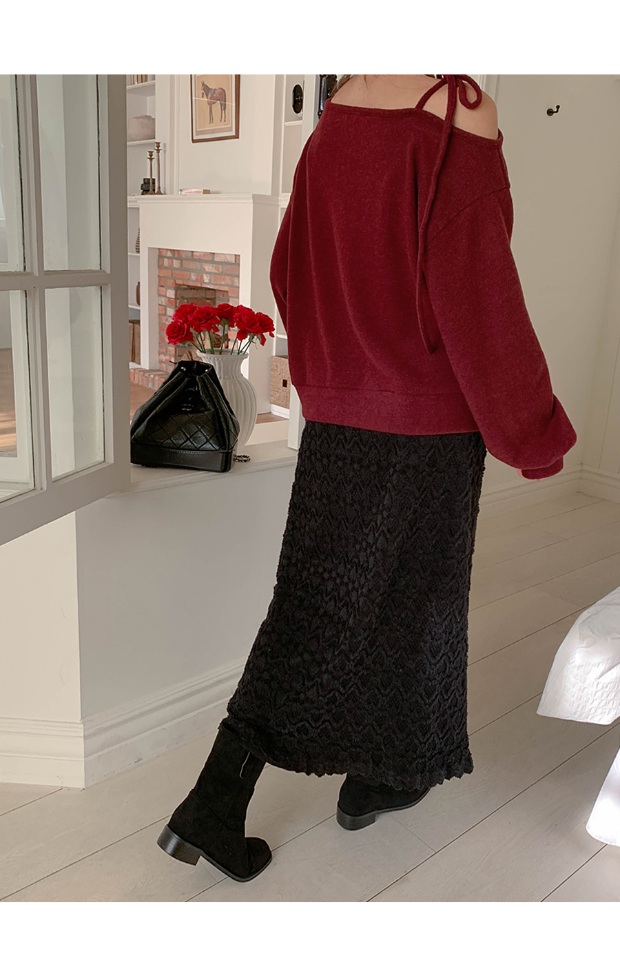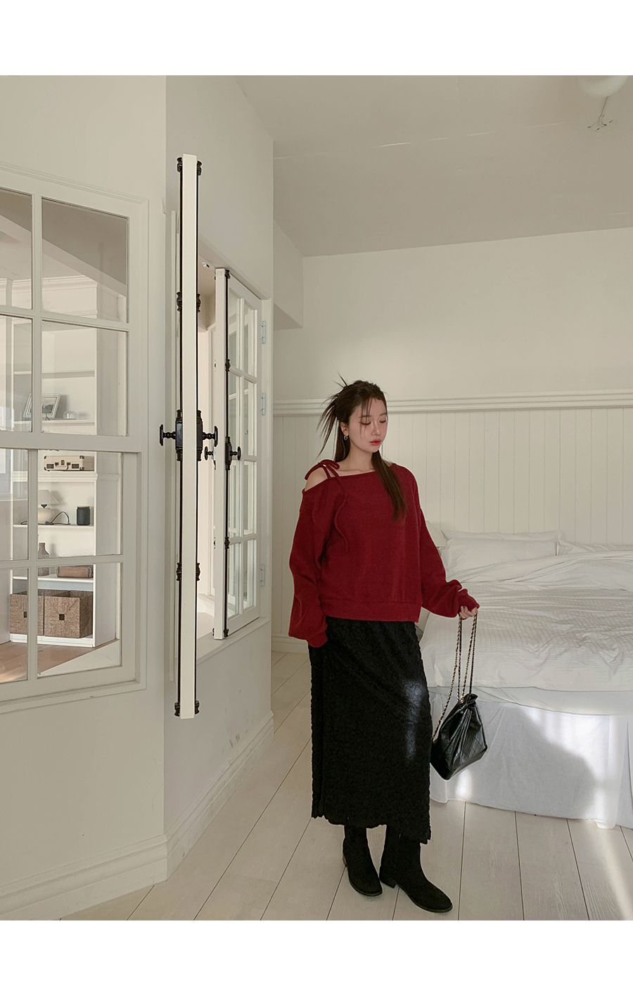 Soft off shoulder brushed long-sleeved T-shirt