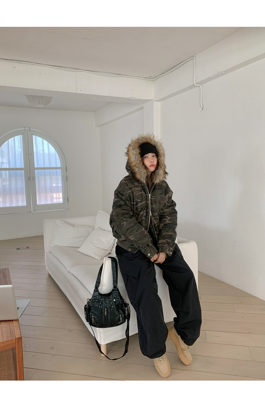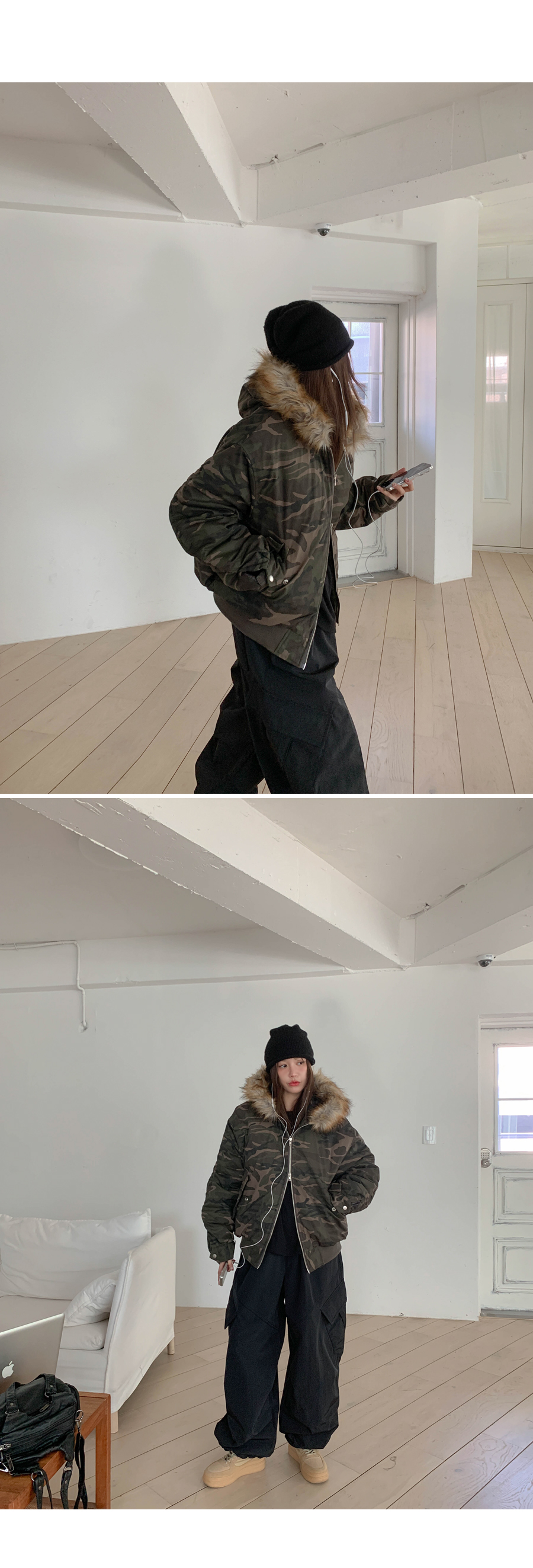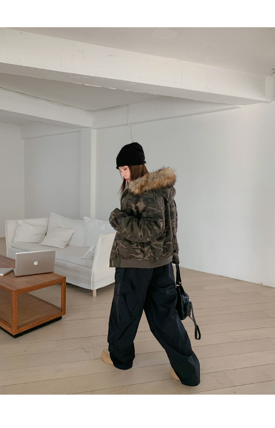 [Unisex] Raccoon Camo Hooded Padding Jumper