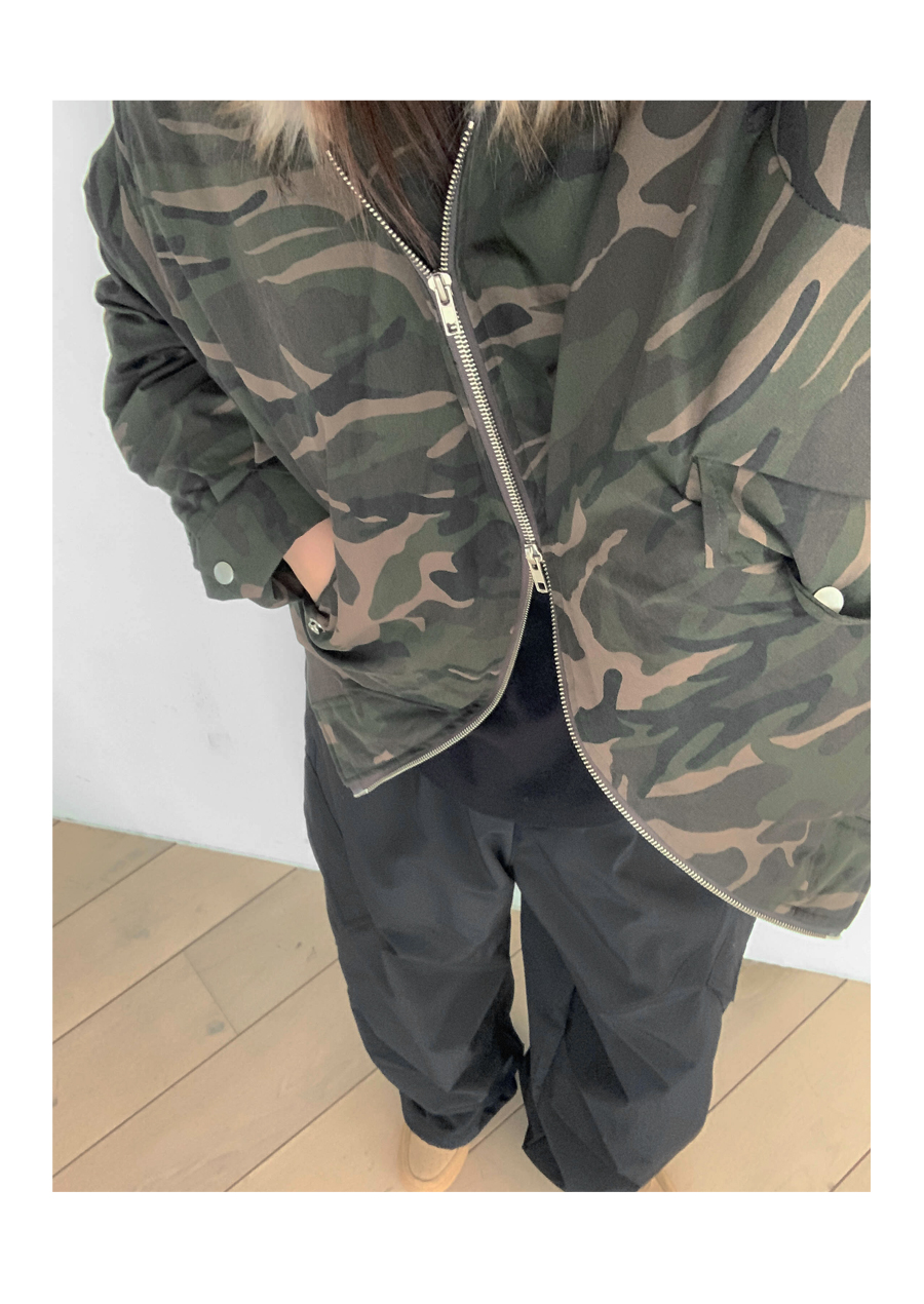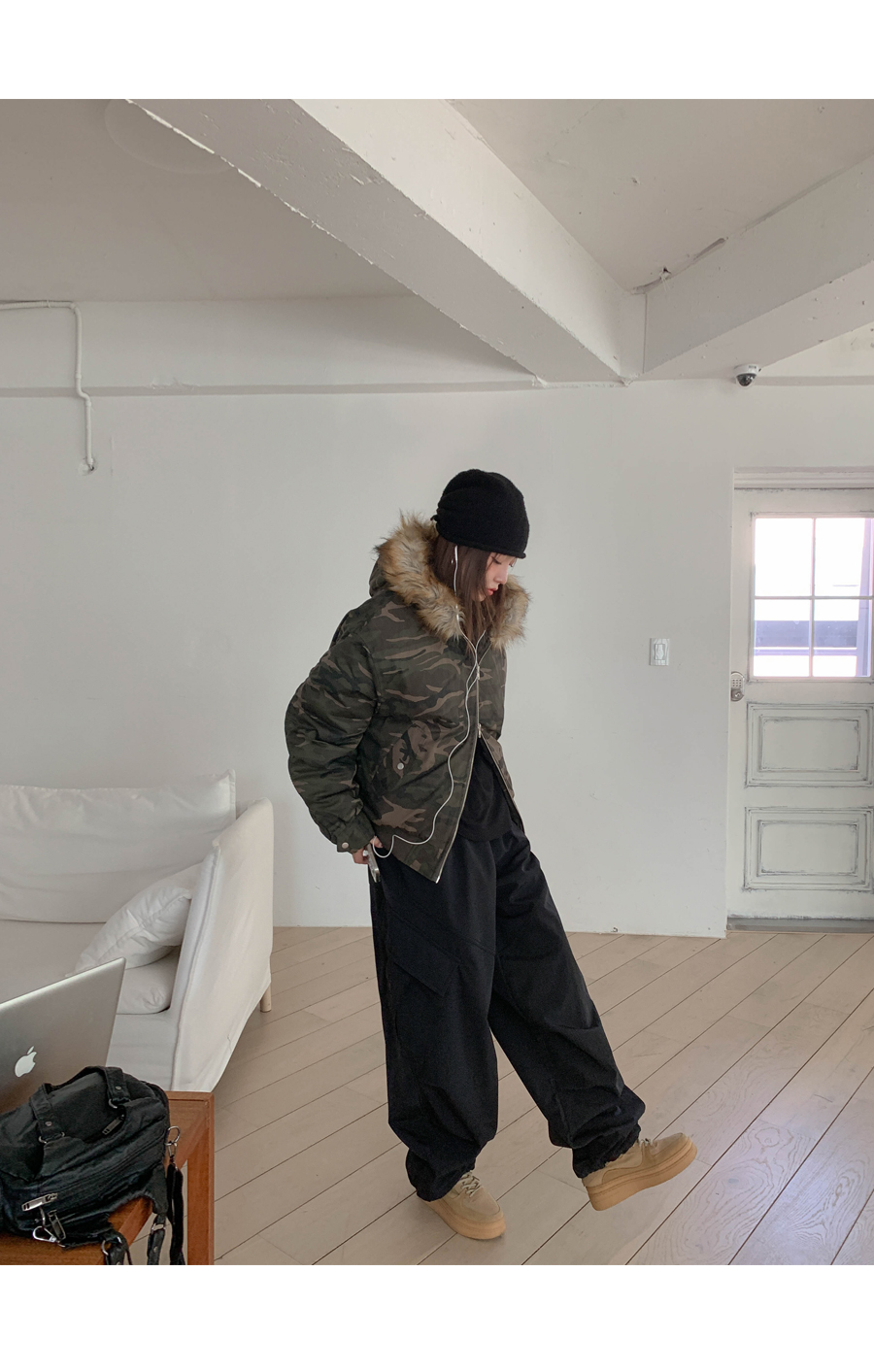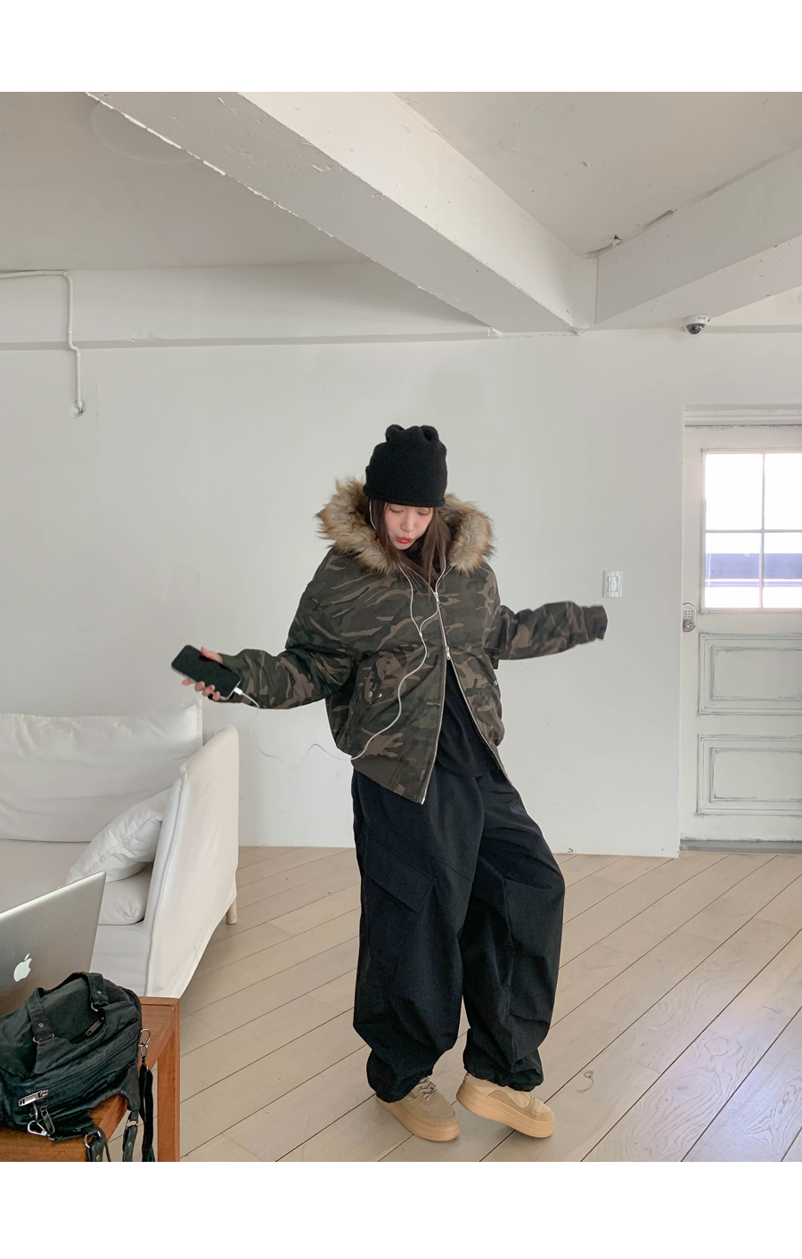 [Unisex] Raccoon Camo Hooded Padding Jumper