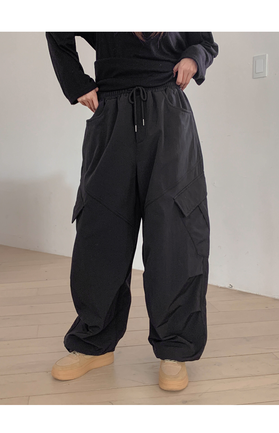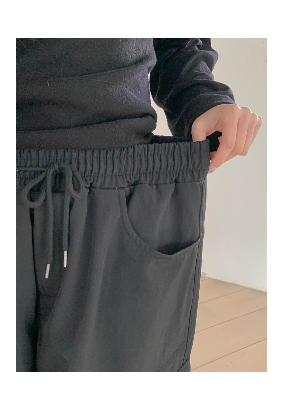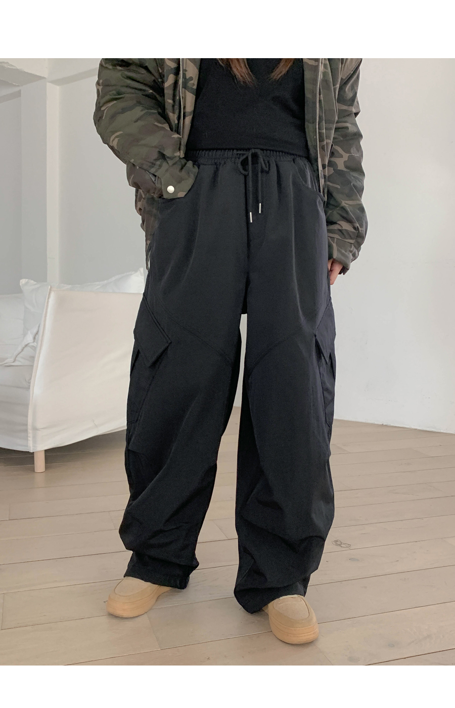 [Unisex] Nut Nylon Bonded Fleece String Cargo Wide Pants