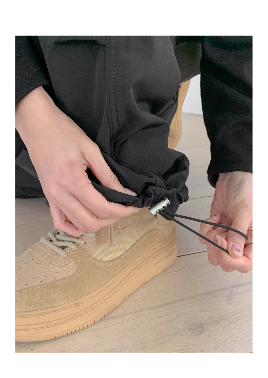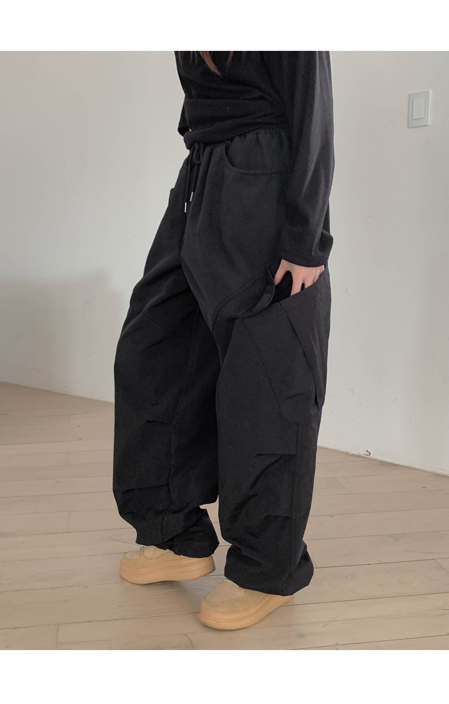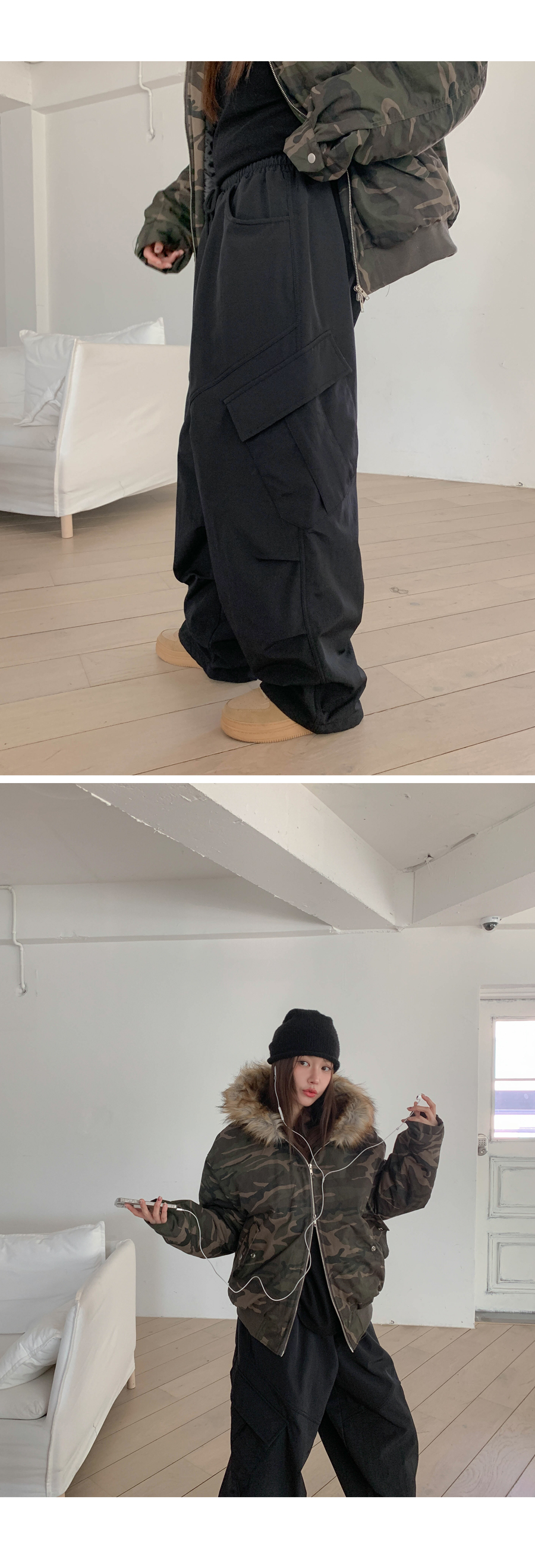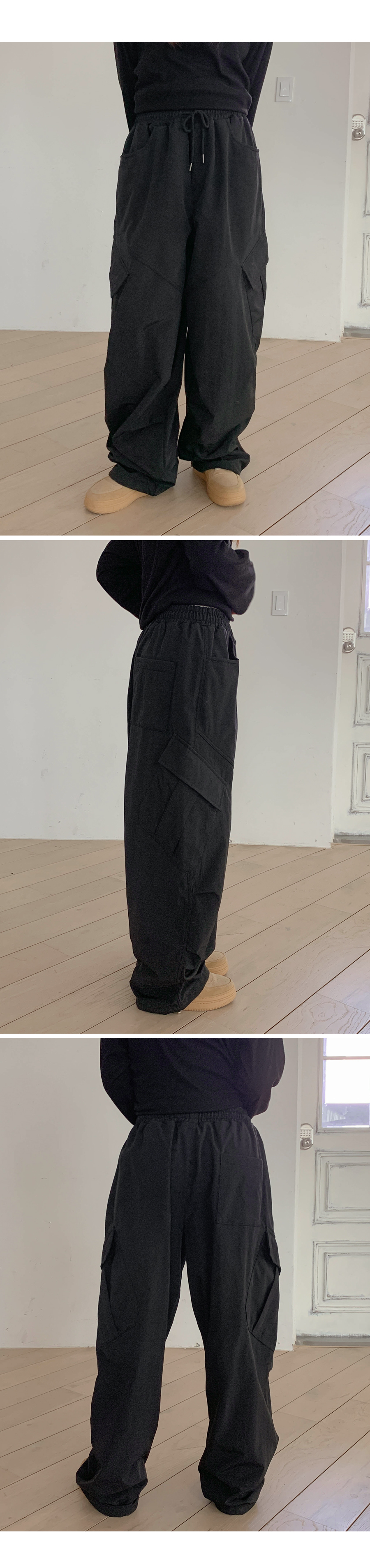 [Unisex] Nut Nylon Bonded Fleece String Cargo Wide Pants