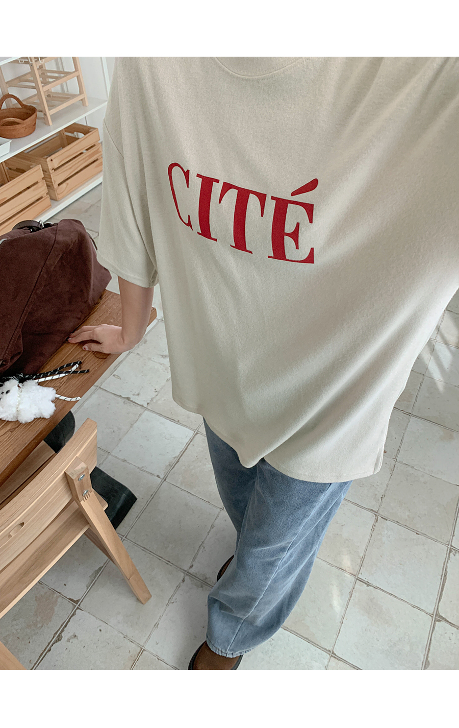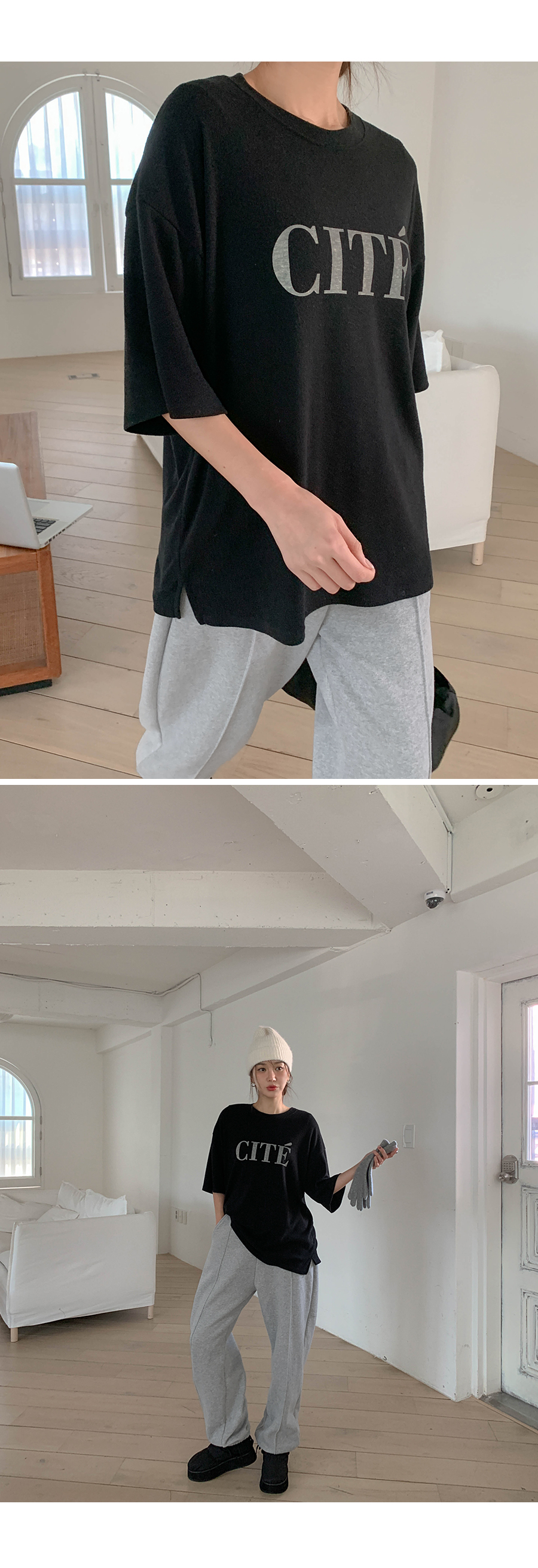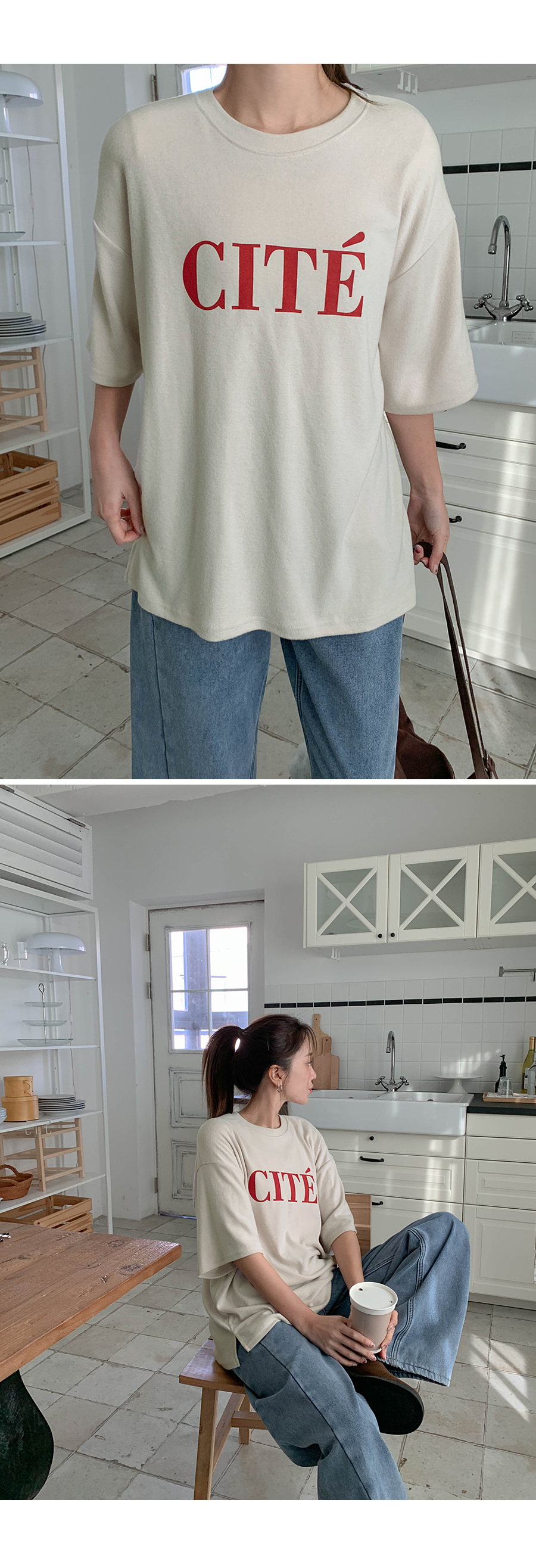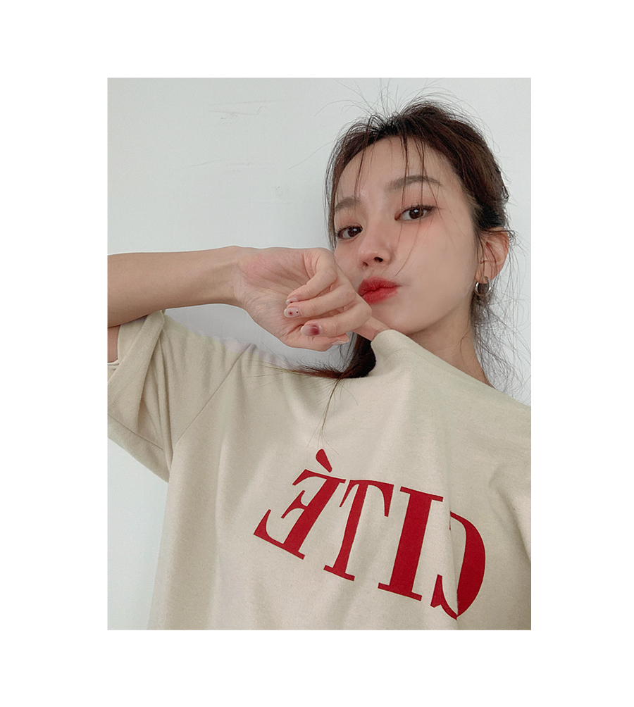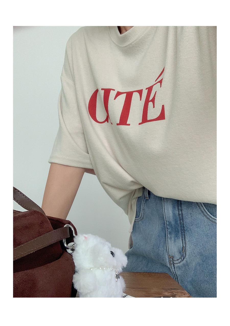 Touched-up, dyed outer fabric, short sleeves T-shirt
