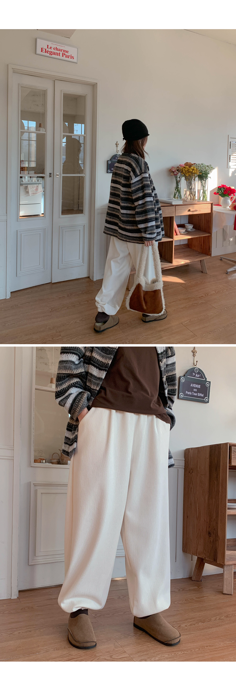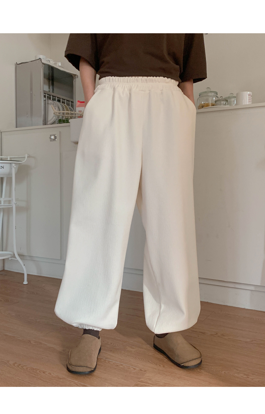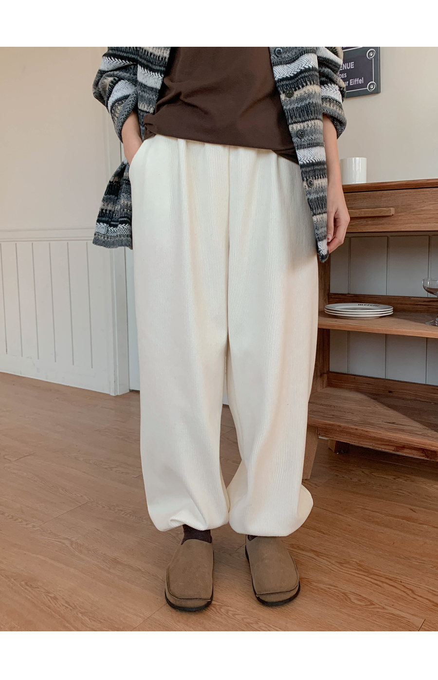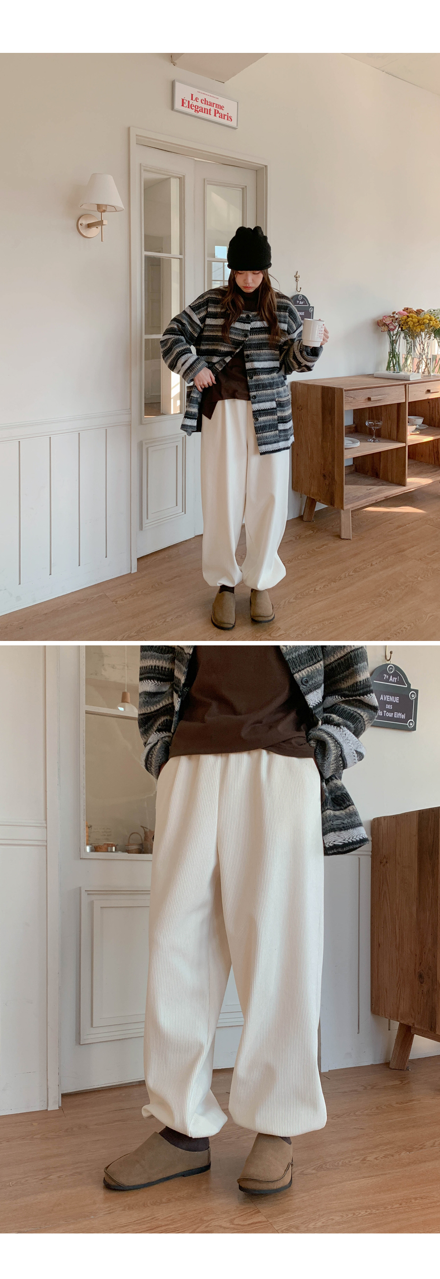 Muse Patch Corduroy Raised Fleece Banding Jogger Pants