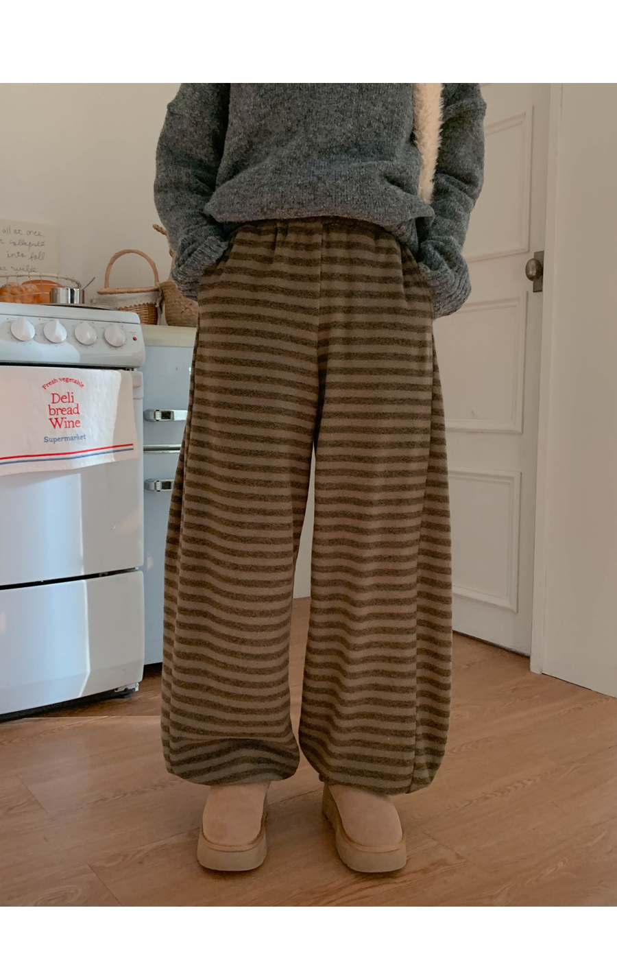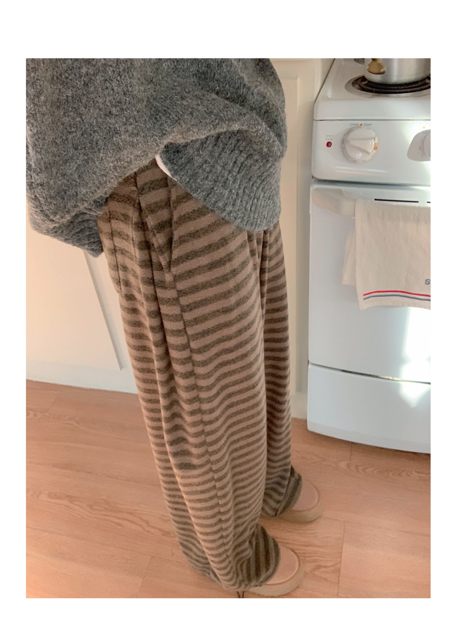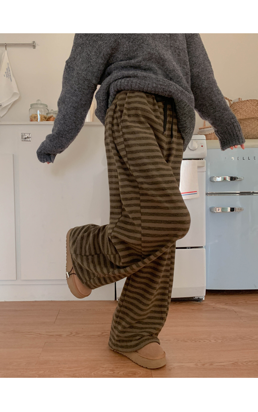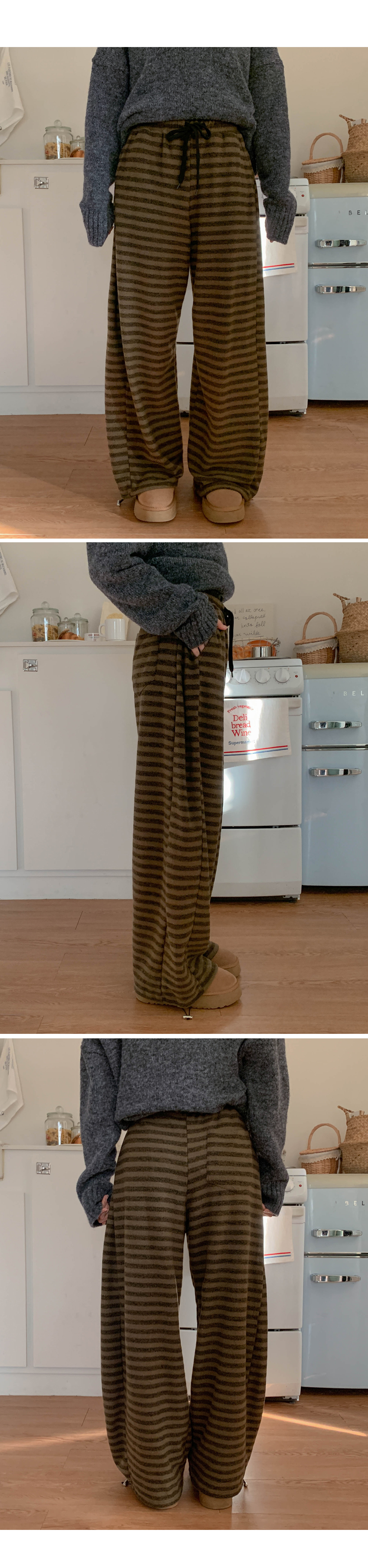 Cheek outer fleece single-breasted pin-tuck stopper wide pants