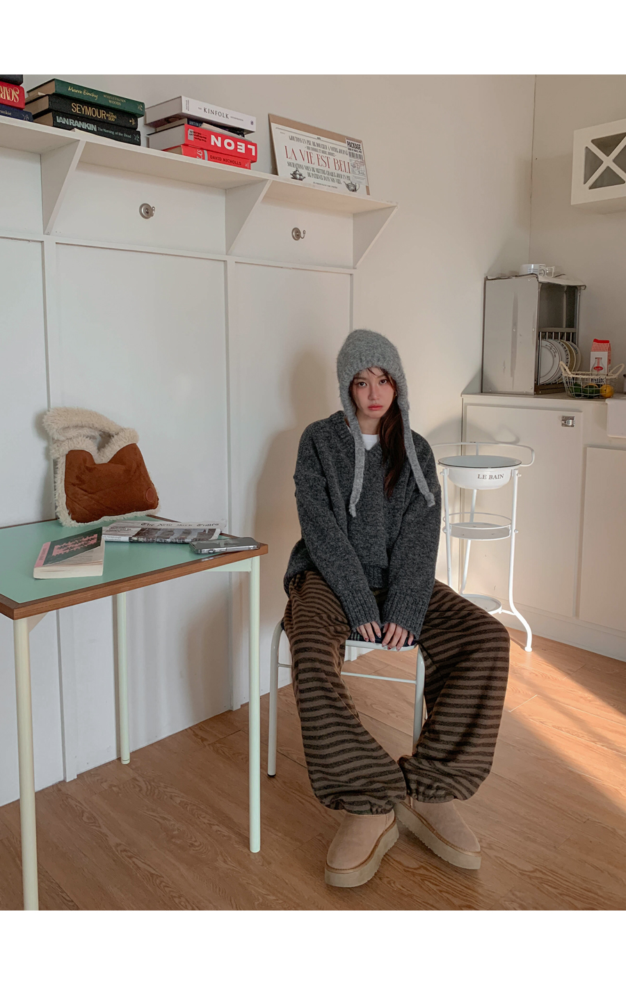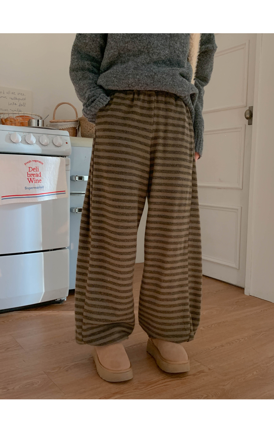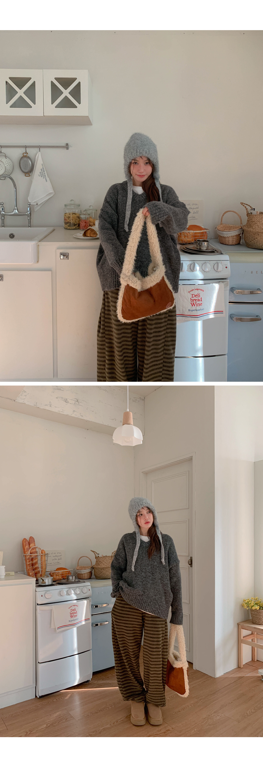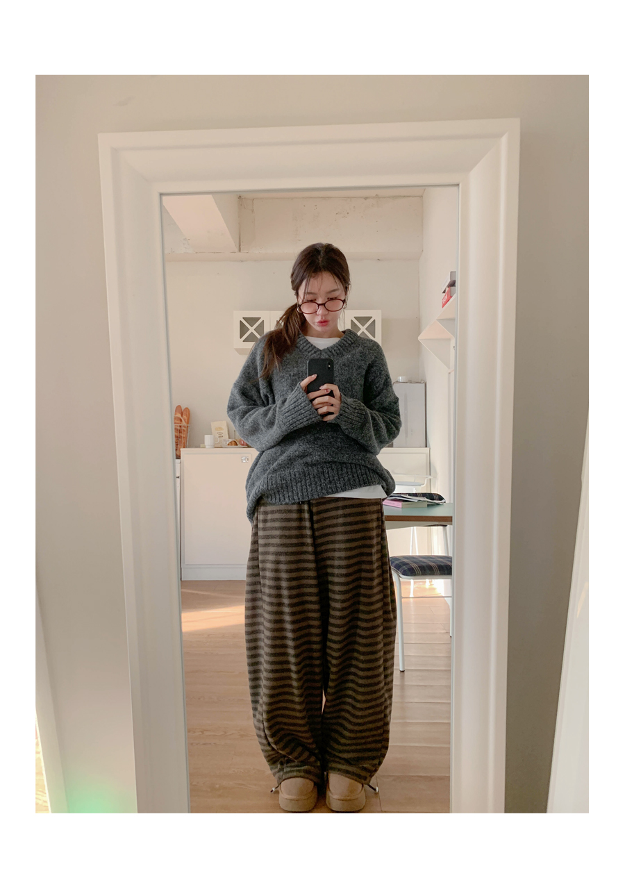 Cheek outer fleece single-breasted pin-tuck stopper wide pants