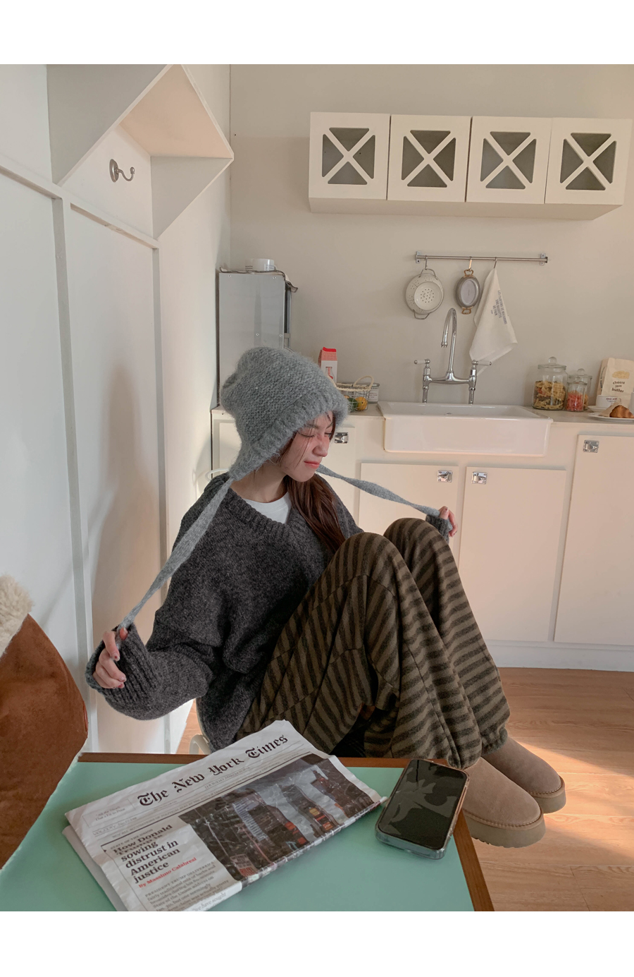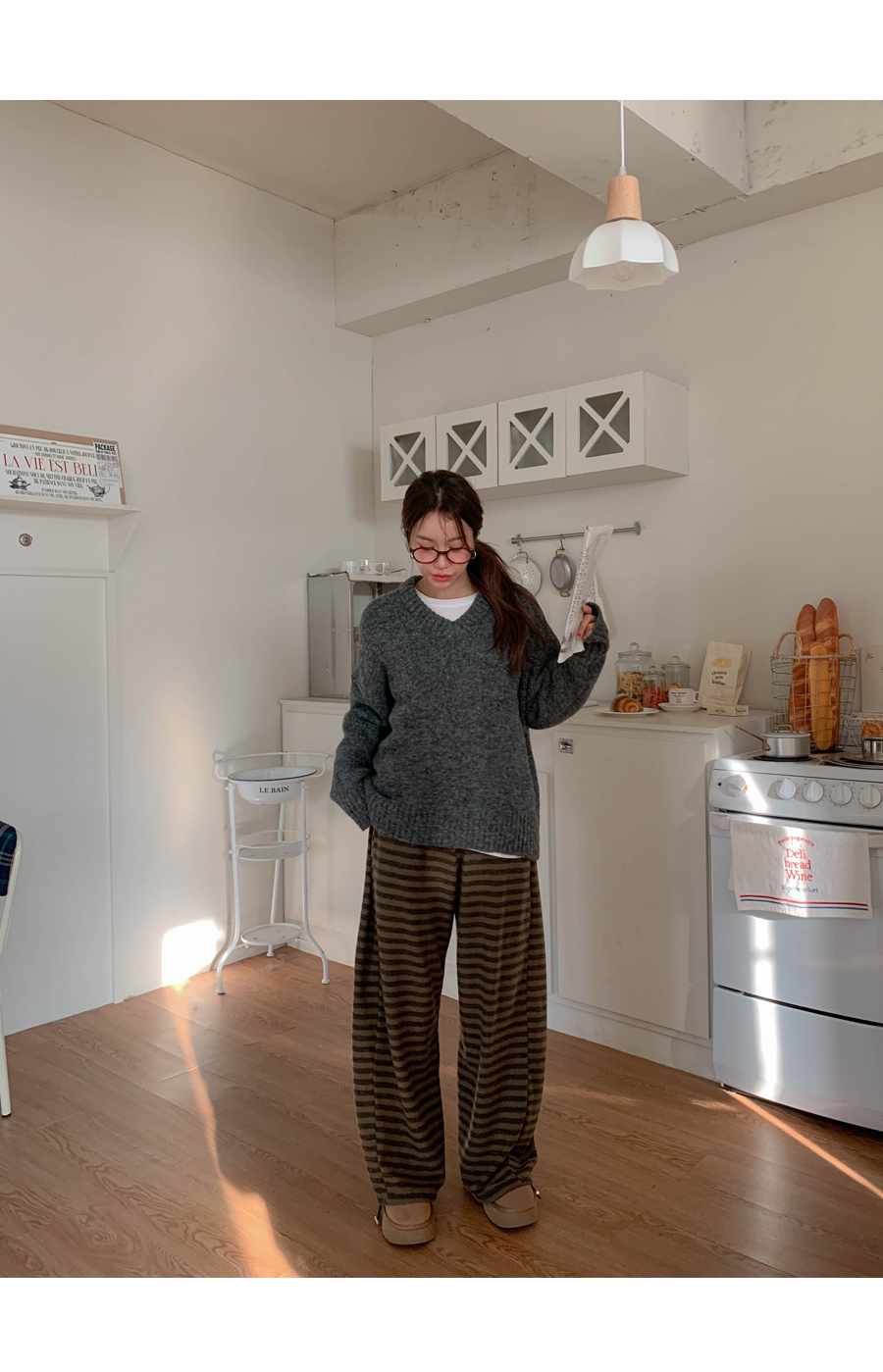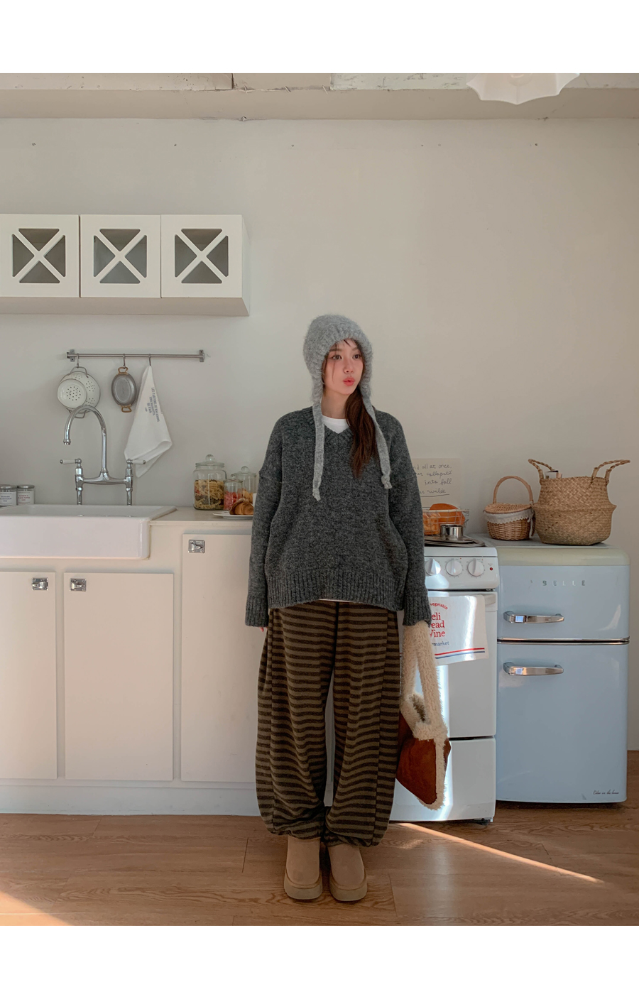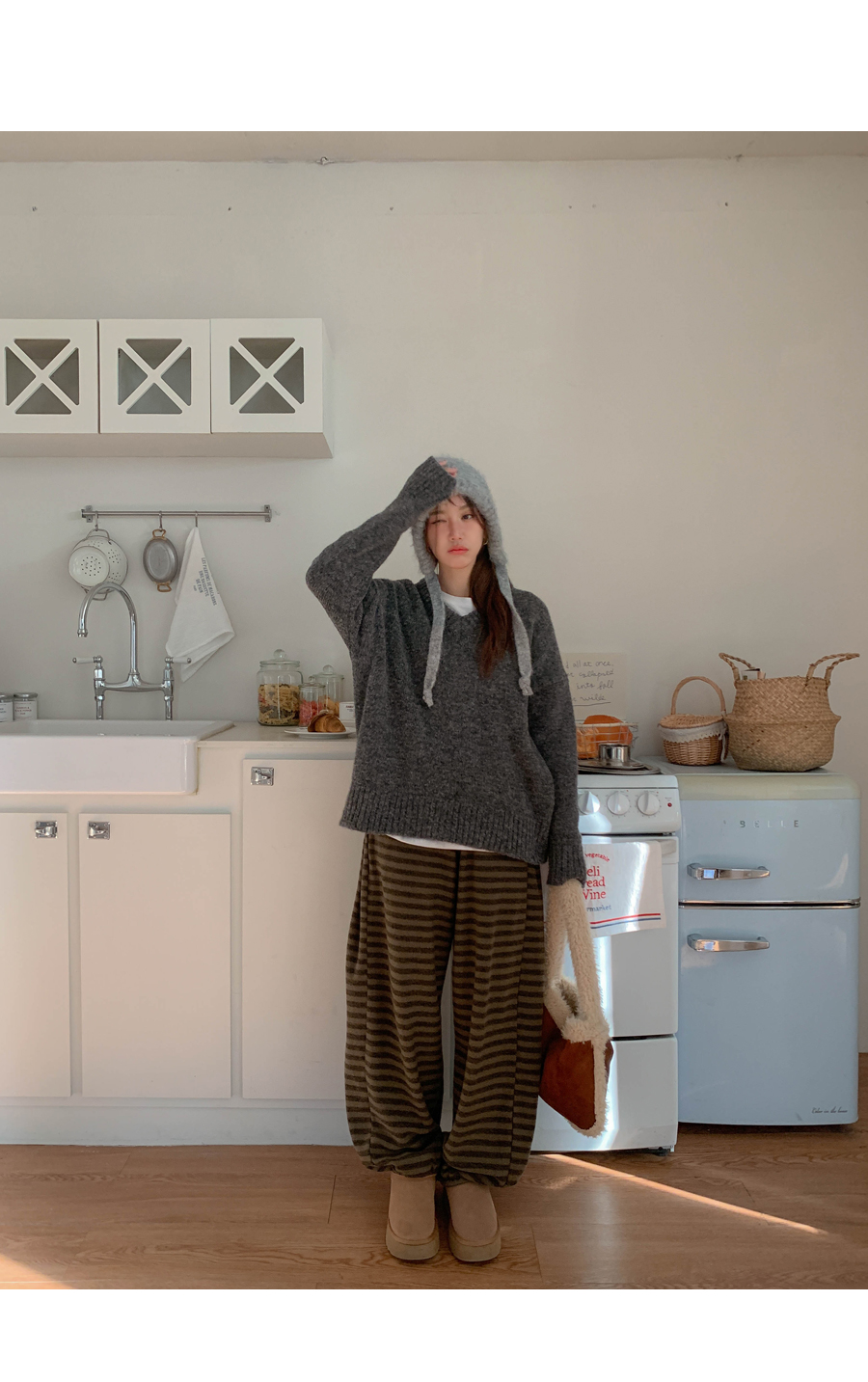 Cheek outer fleece single-breasted pin-tuck stopper wide pants