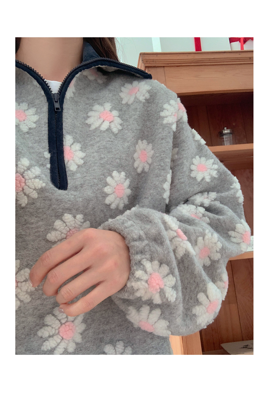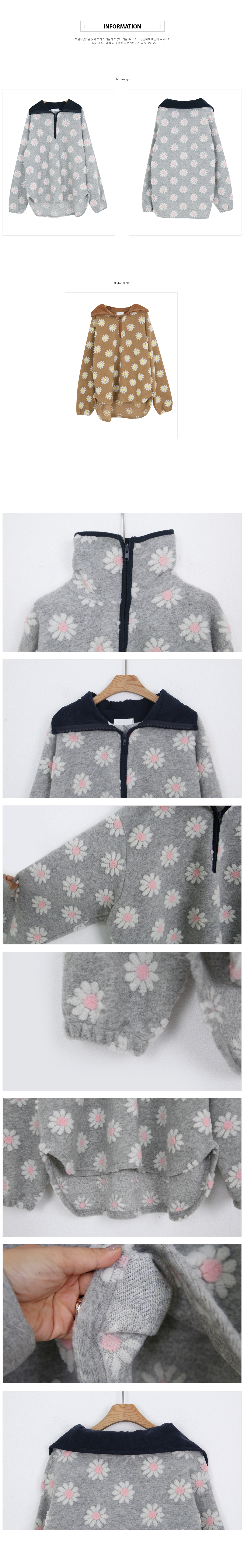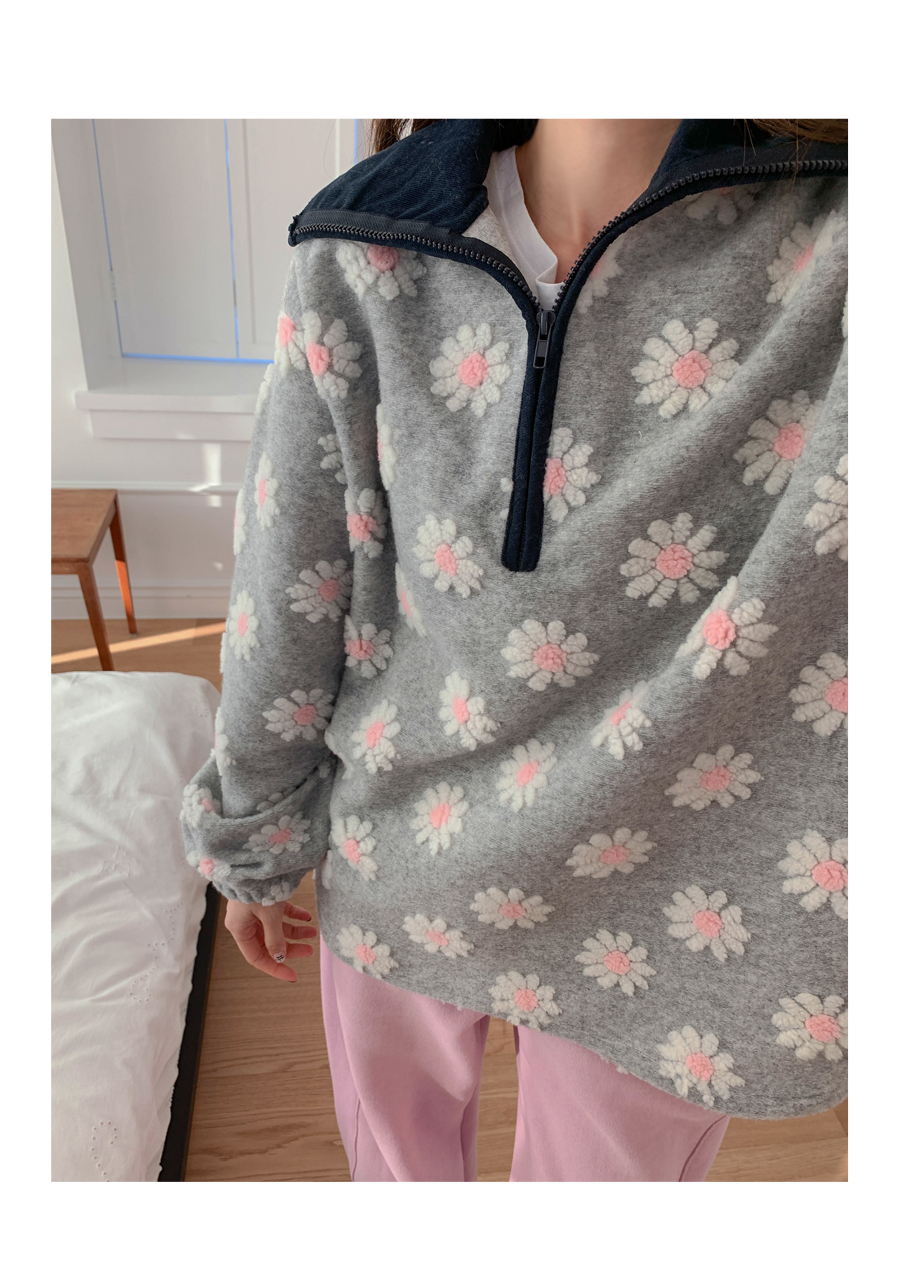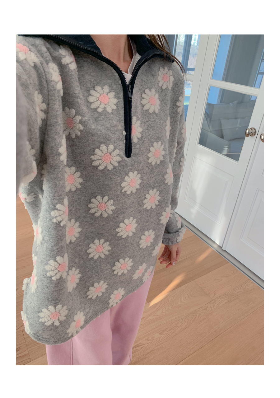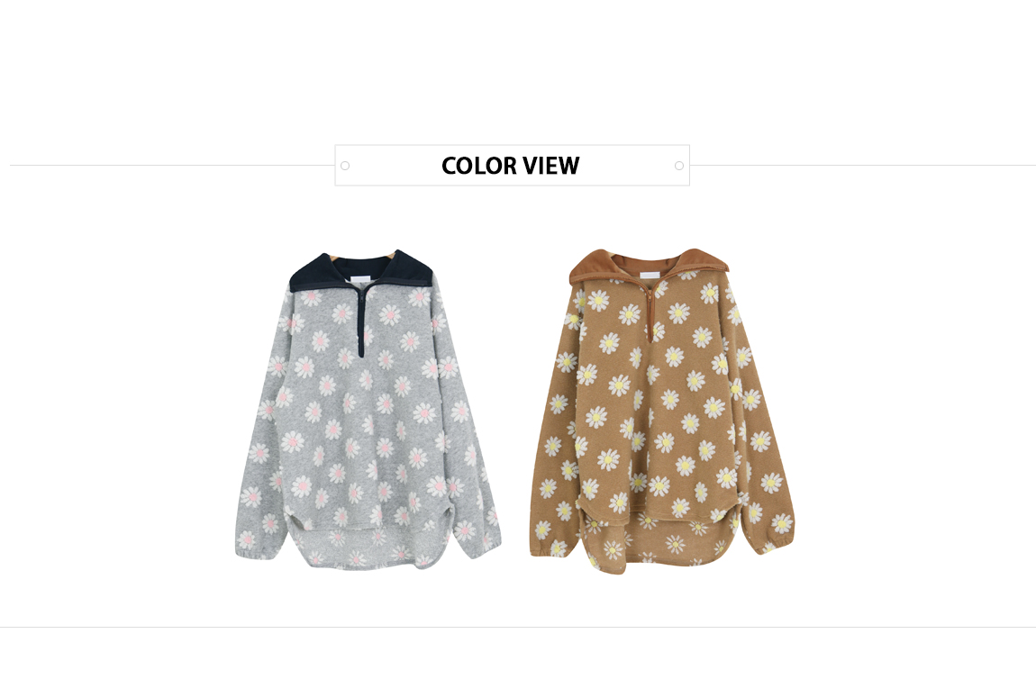 Flower color combination tumble fleece half-zip up uneven anorak