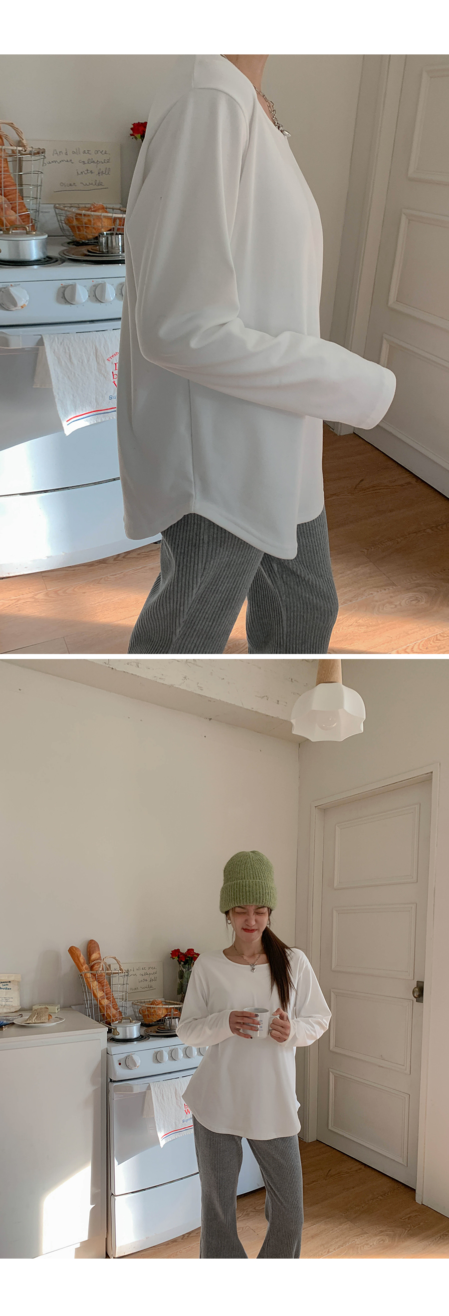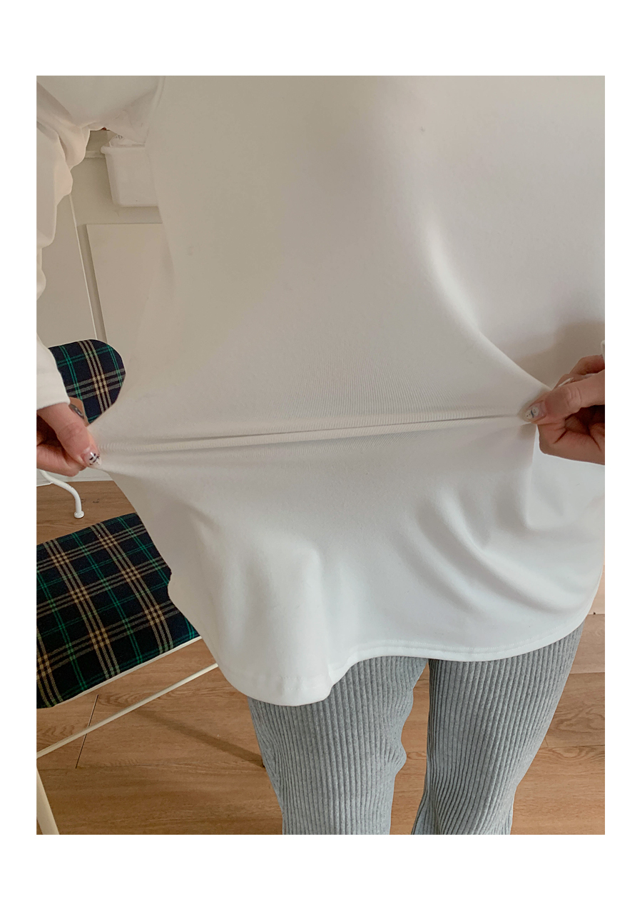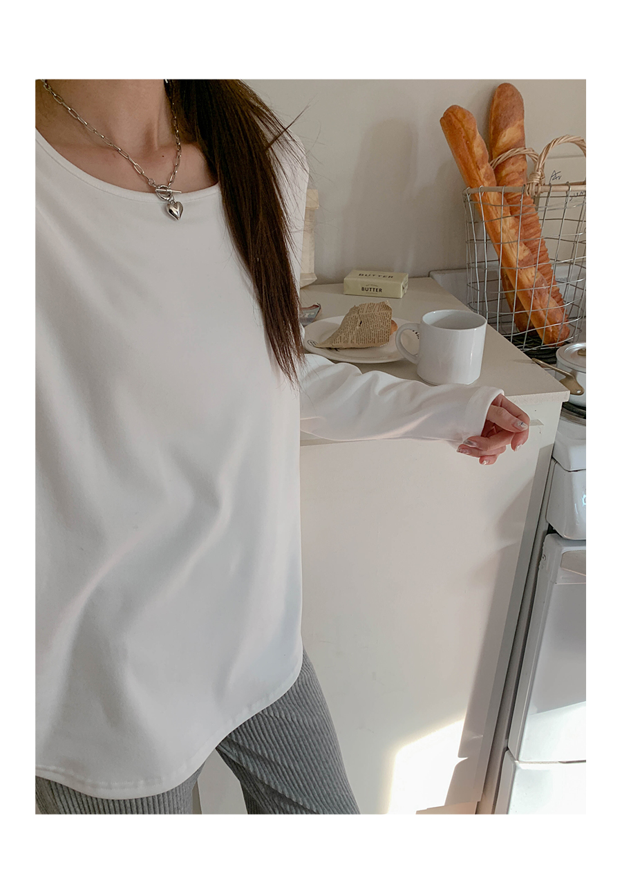 Cream Peach Brushed Round Long-sleeve T-shirt