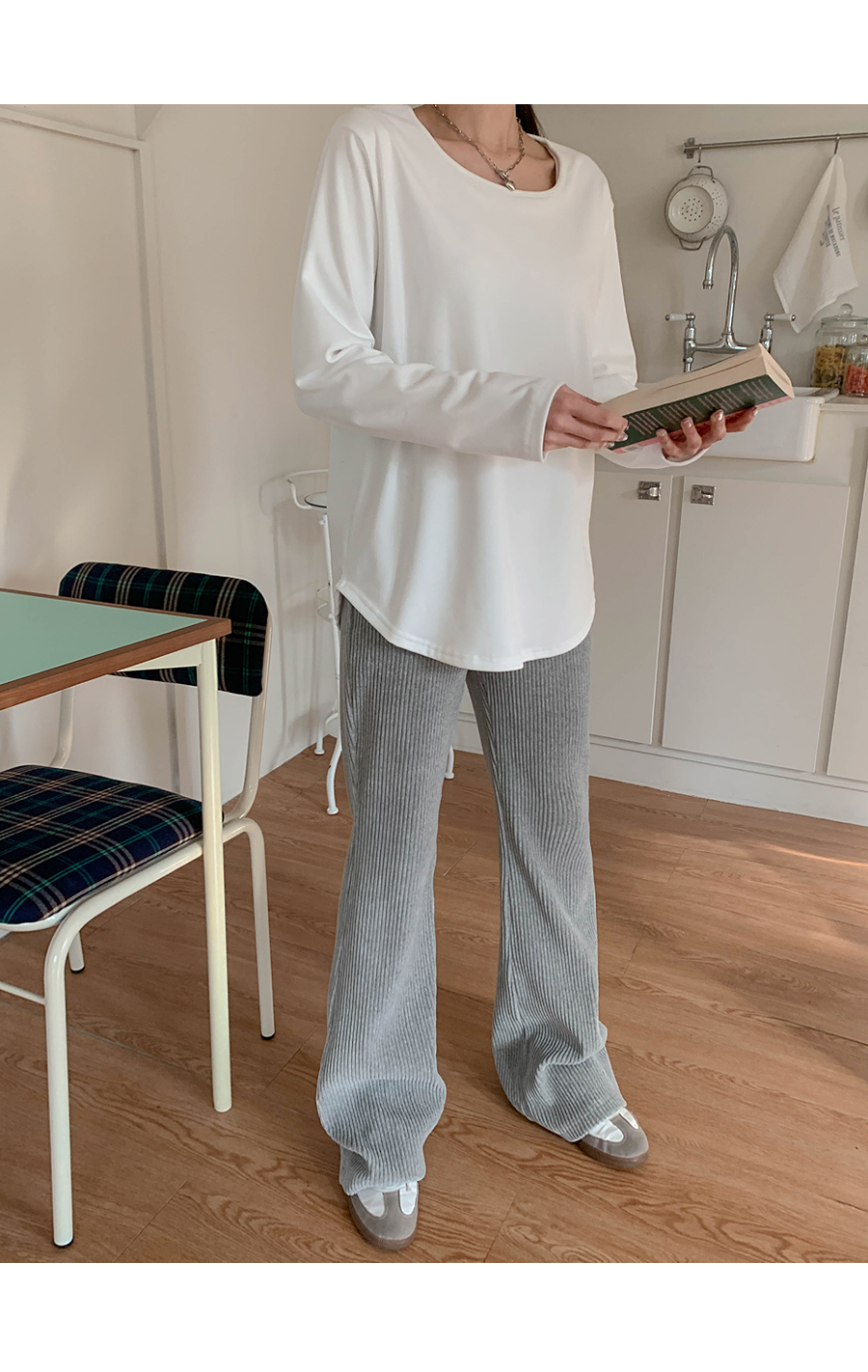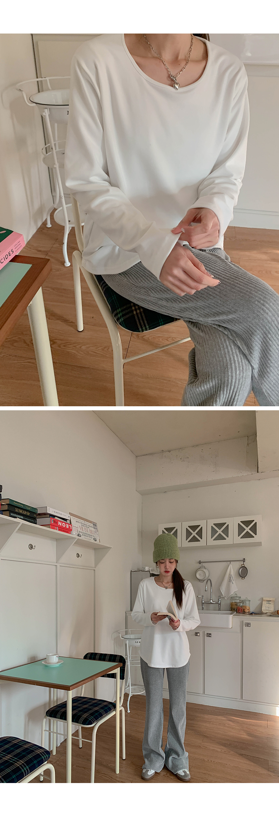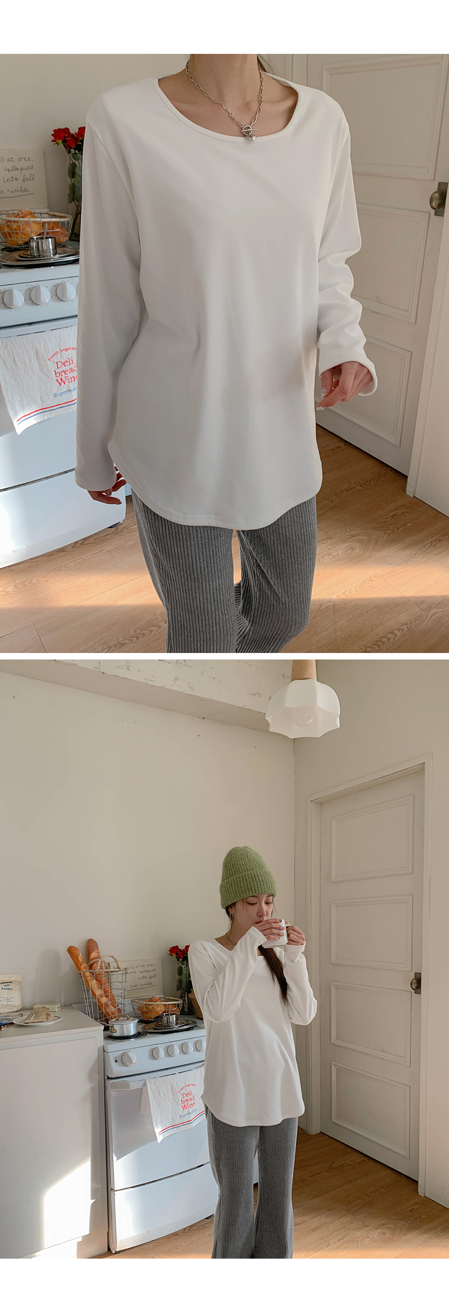 Cream Peach Brushed Round Long-sleeve T-shirt