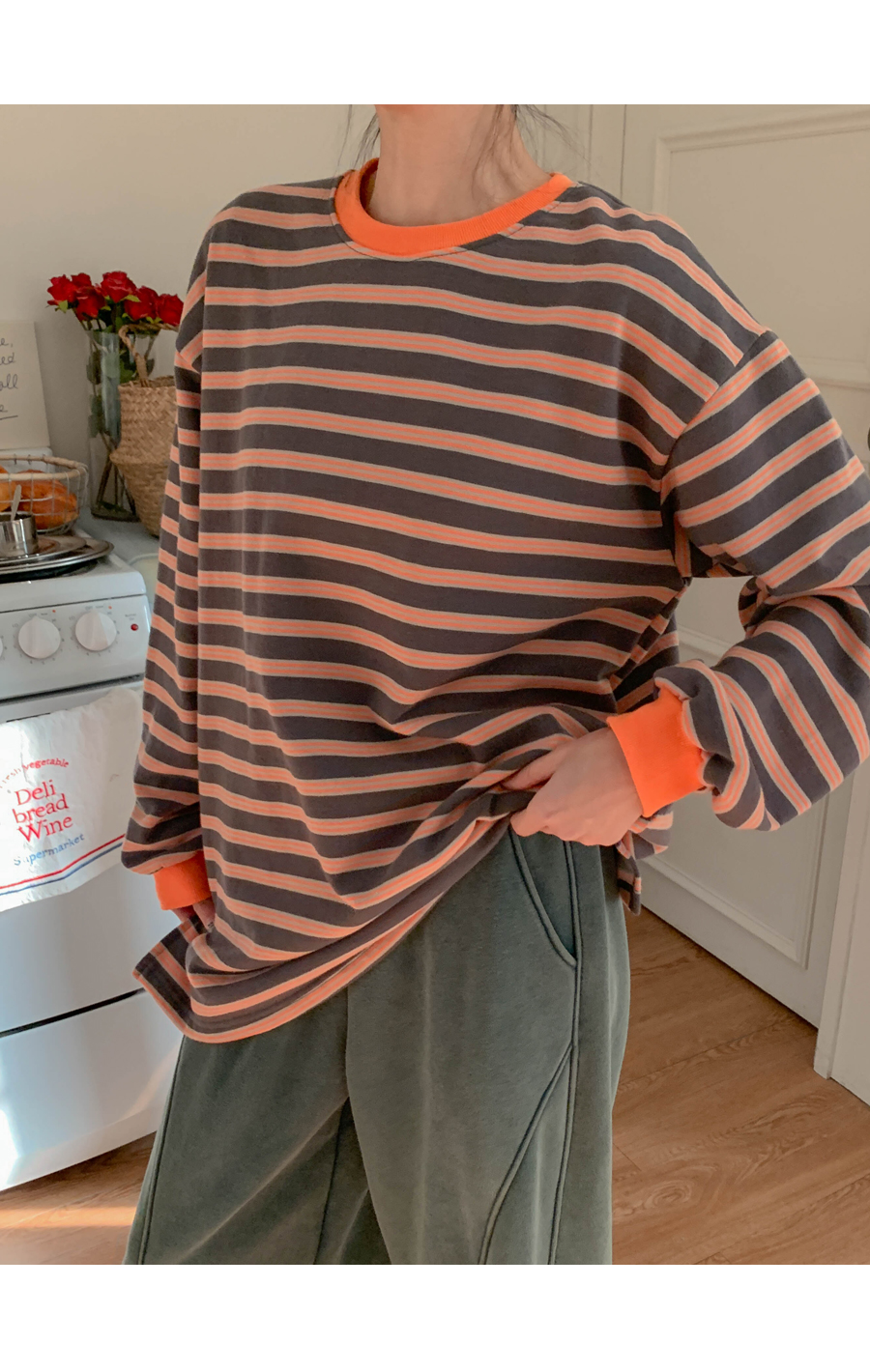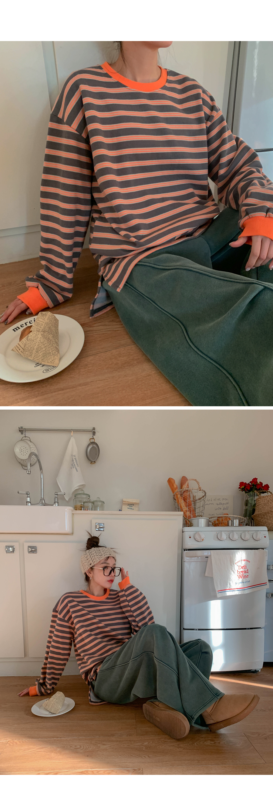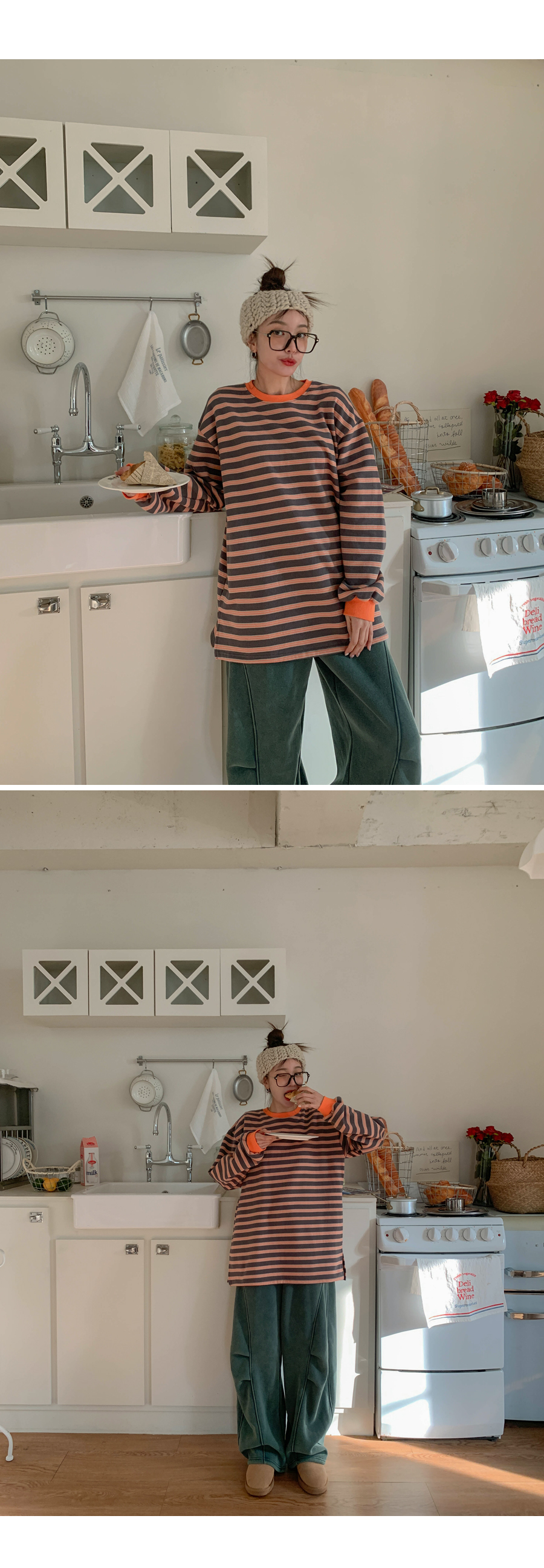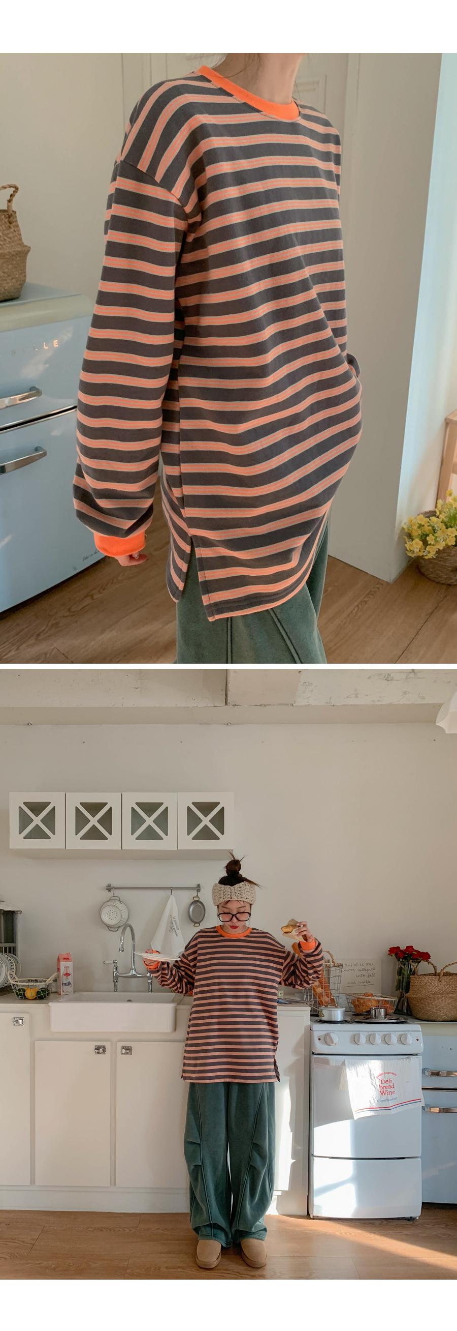 Mongsil Dangara color combination napping Long-sleeve Long t shirts
