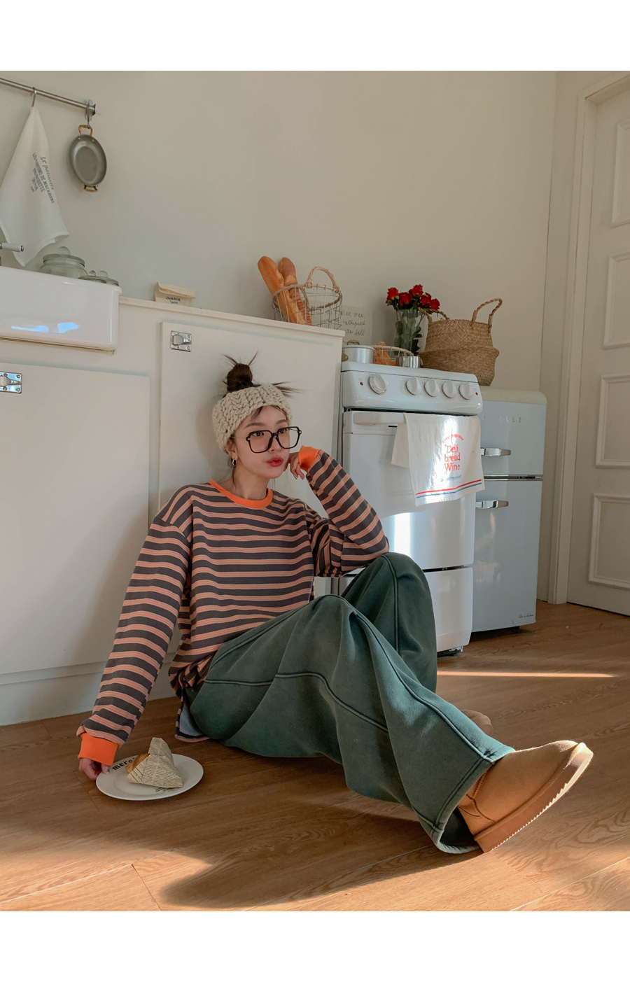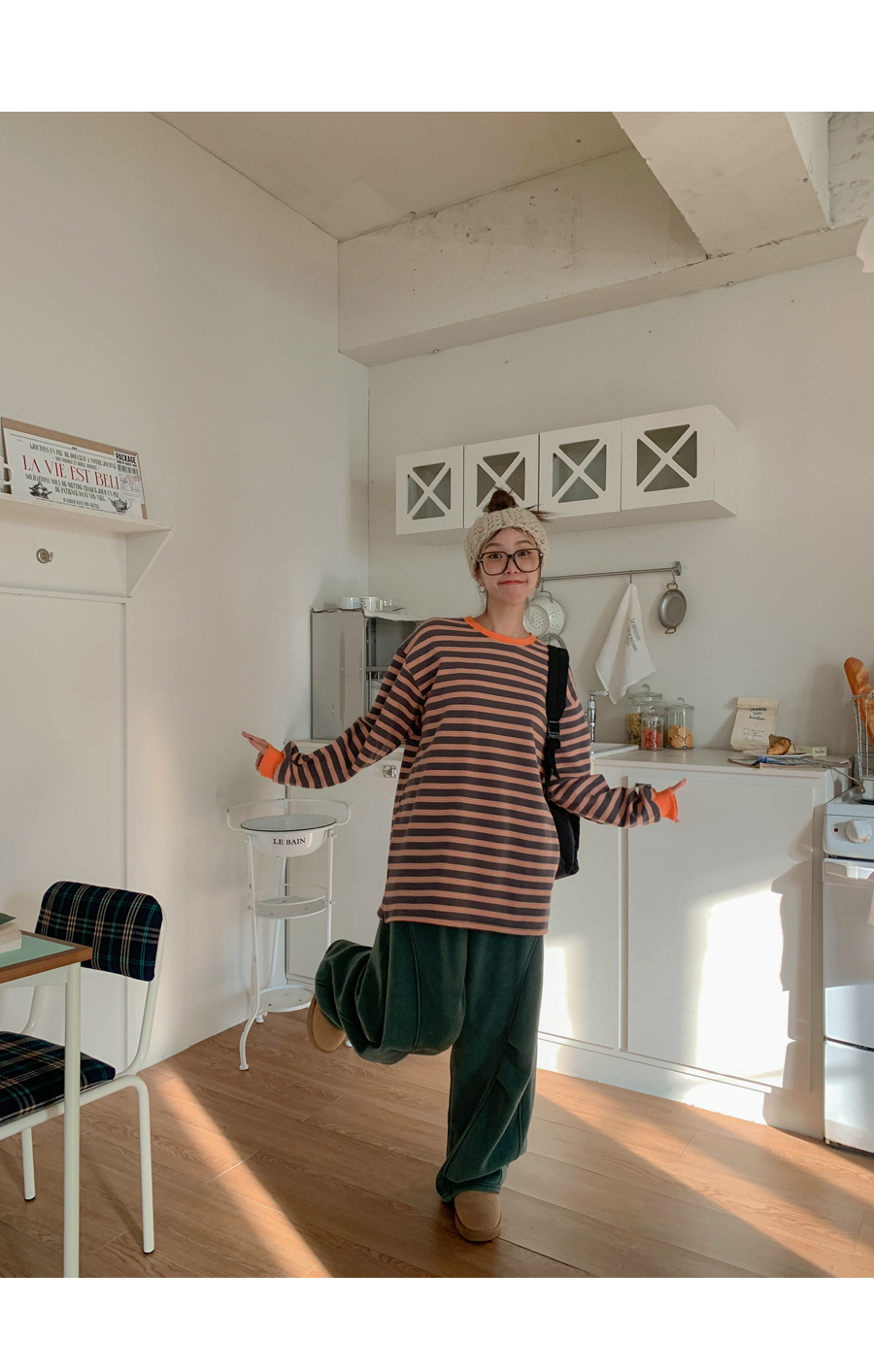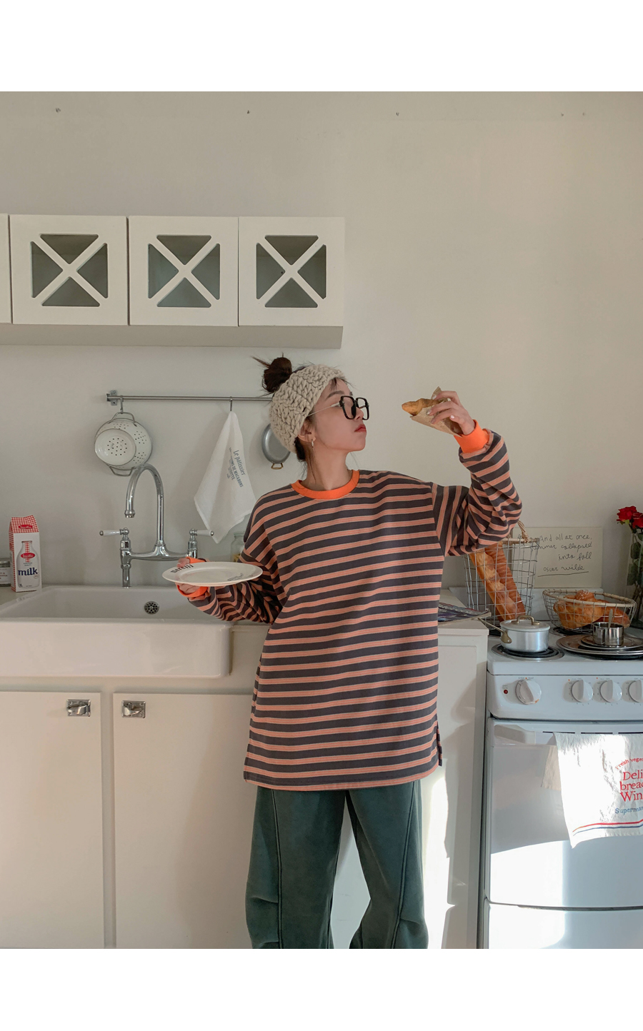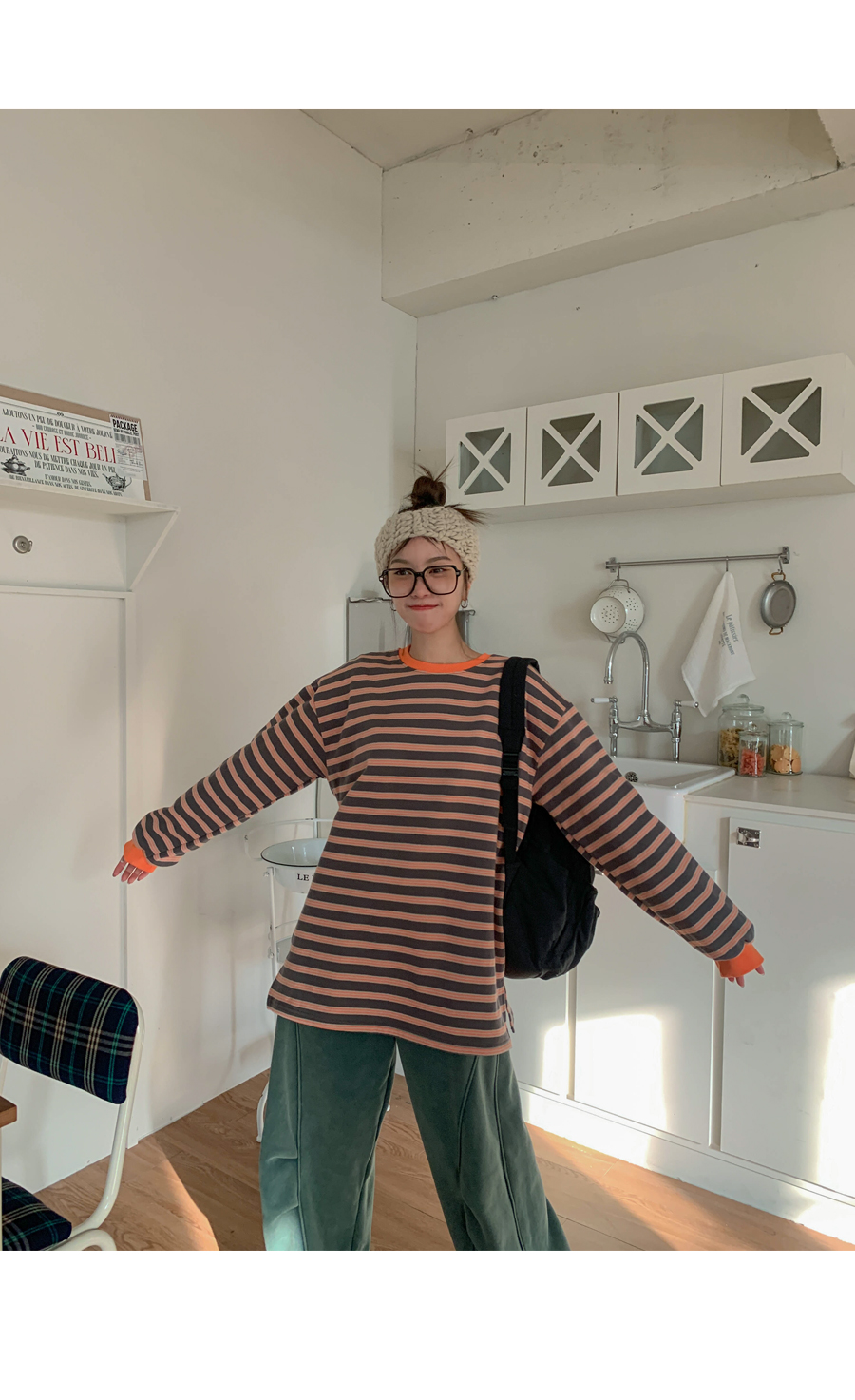 Mongsil Dangara color combination napping Long-sleeve Long t shirts
