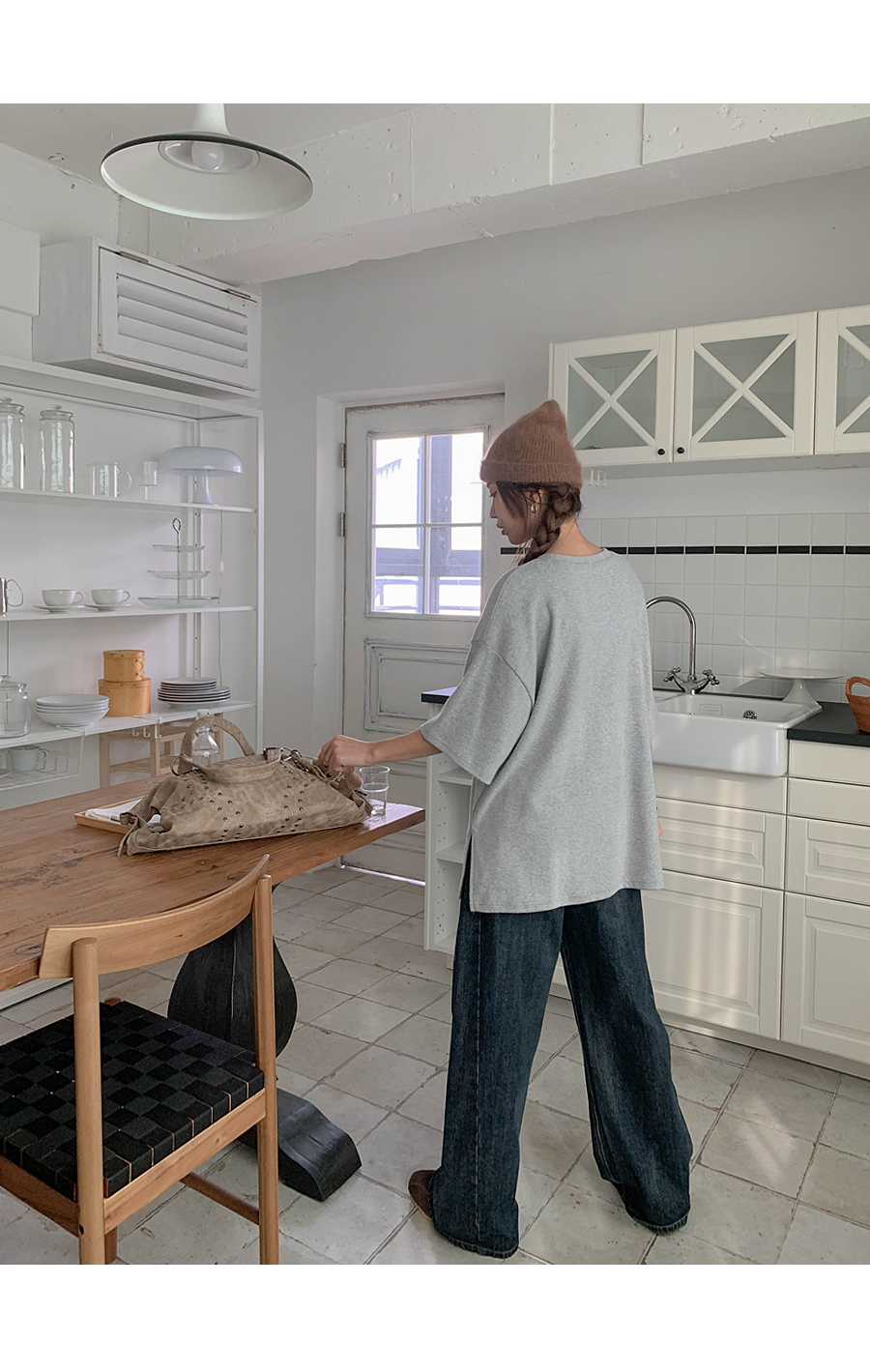 Bit diagonal cut wide denim pants/4 seasons/fleece options (Short/Basic/Long)