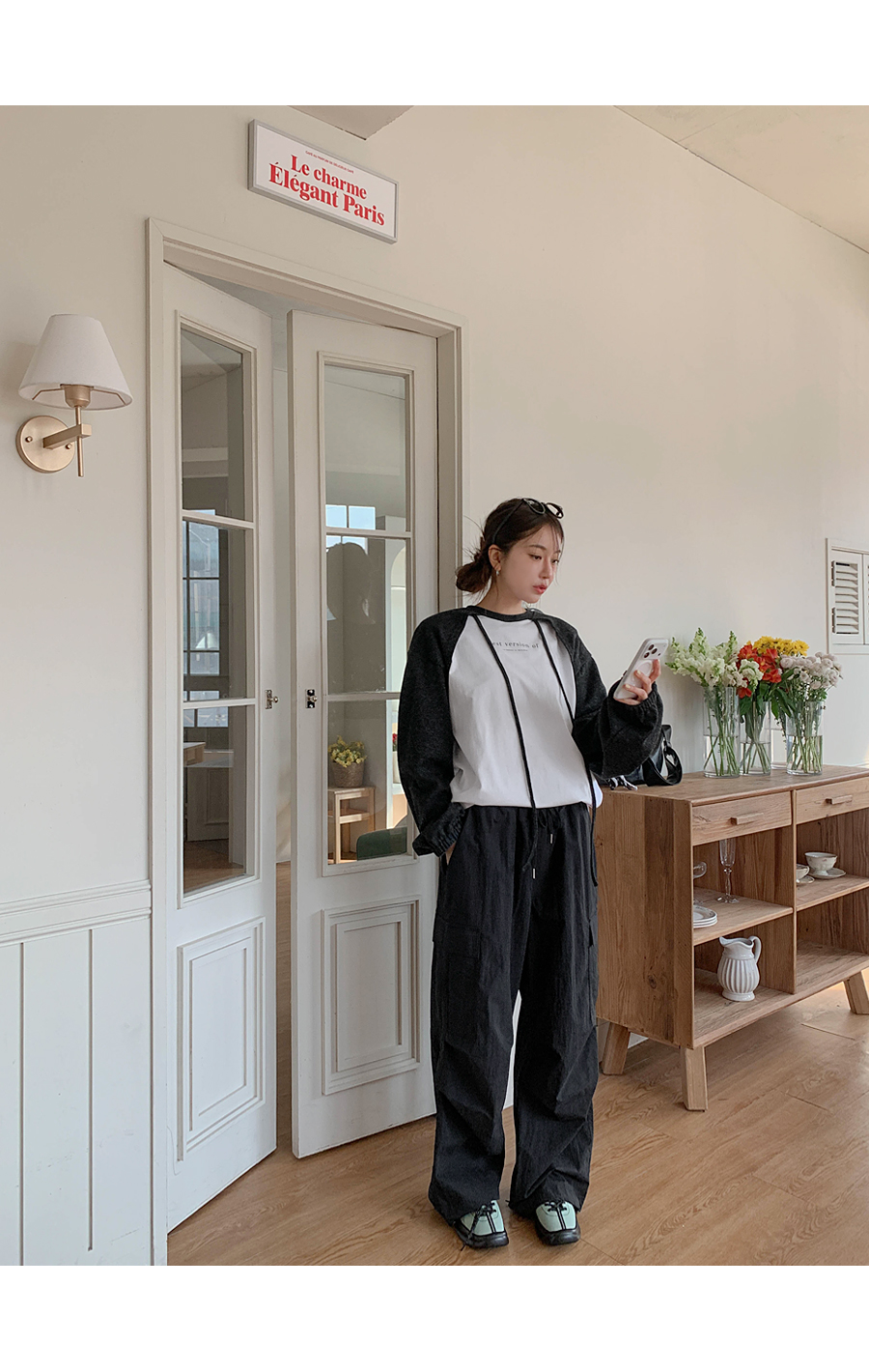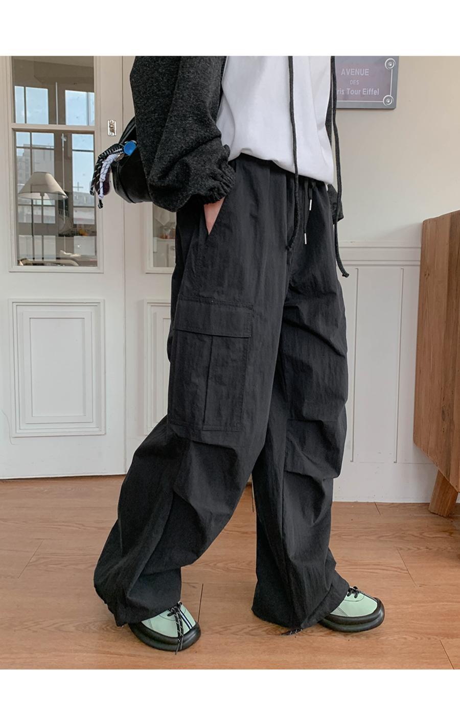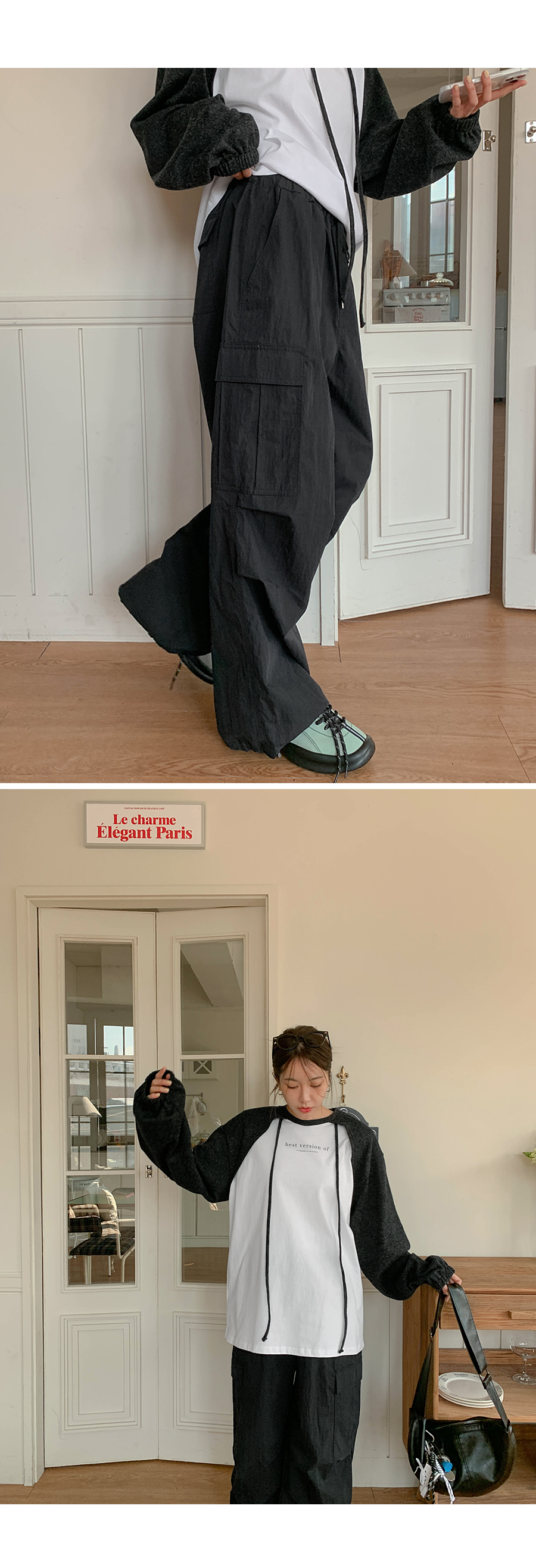 [20% off special sale] Pay Nylon Cargo two-way pintuck wide banding pants