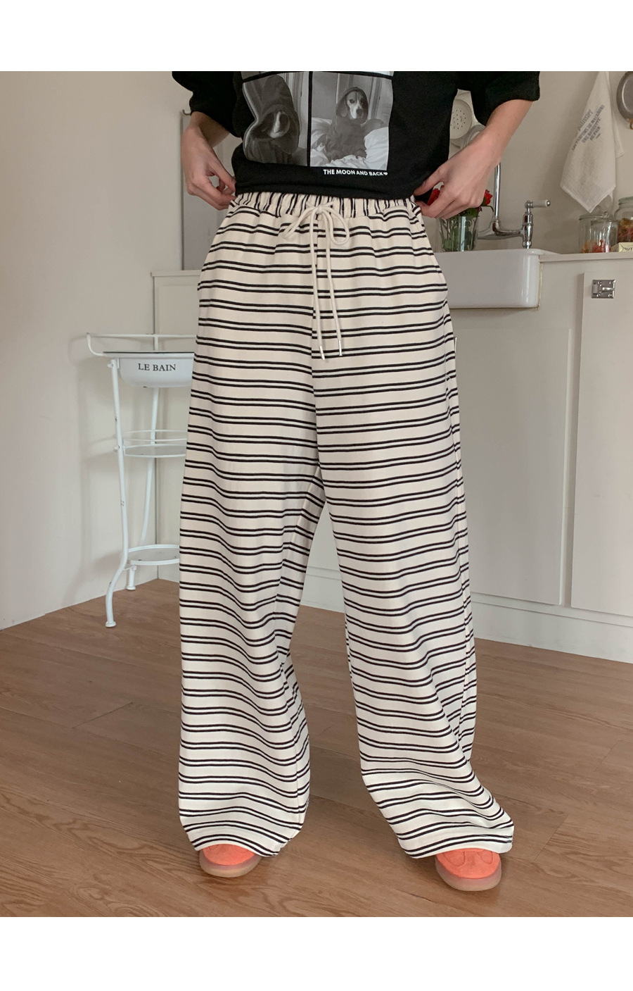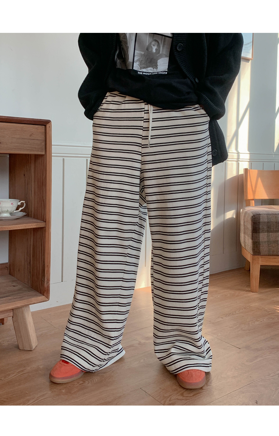 Clo color combination single-breasted wide training pants