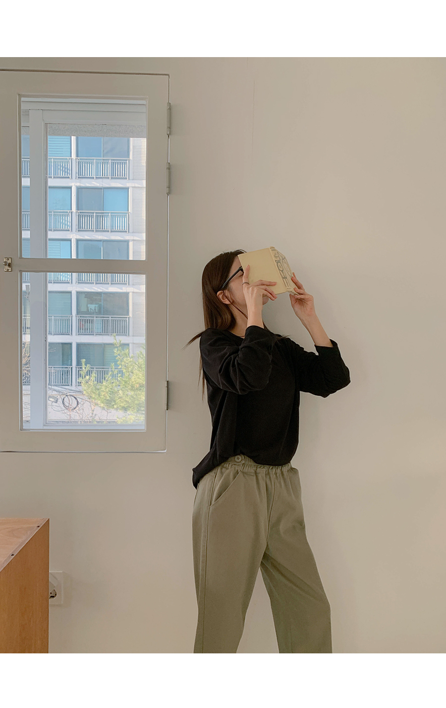 [20% off special sale] Hey Button Bijou Cotton Washing Semi Baggy Span Banding Pants