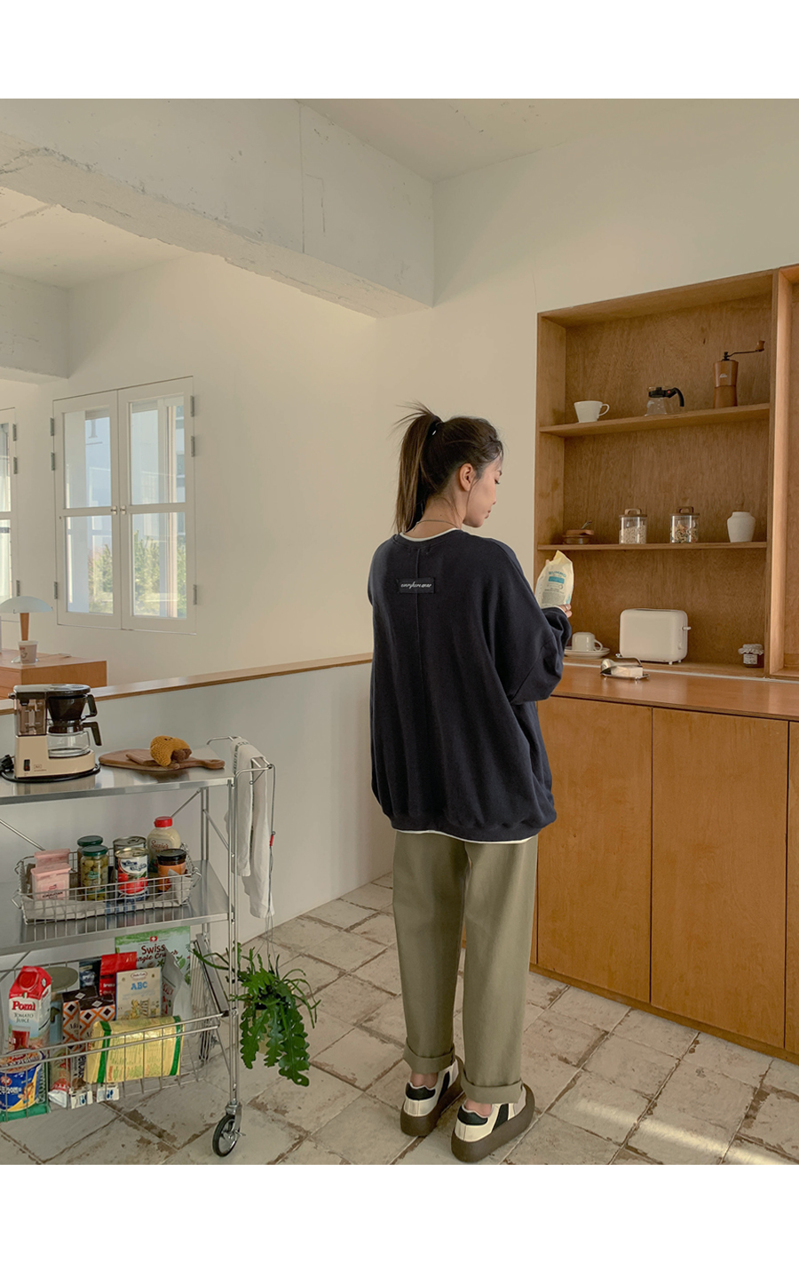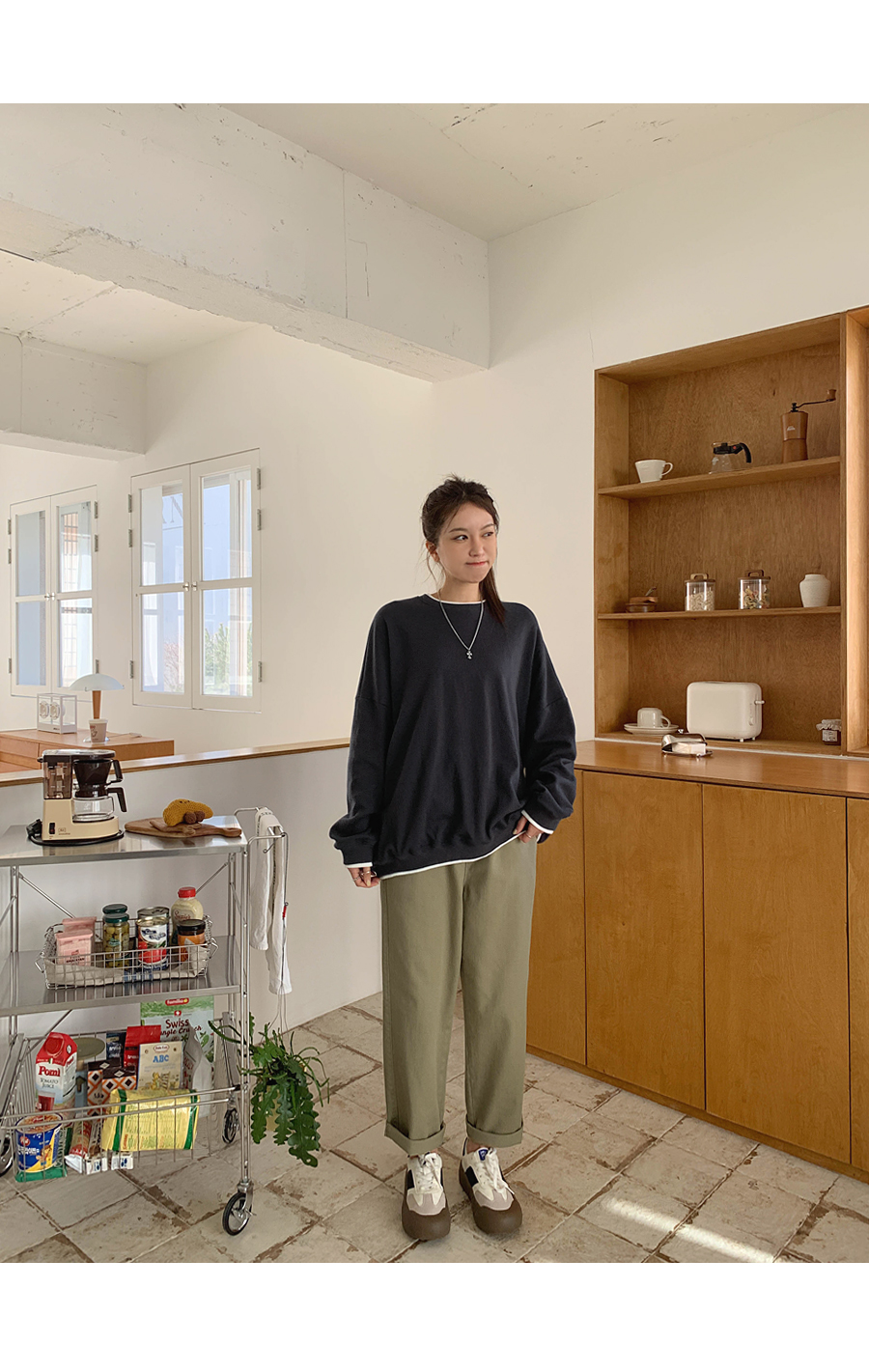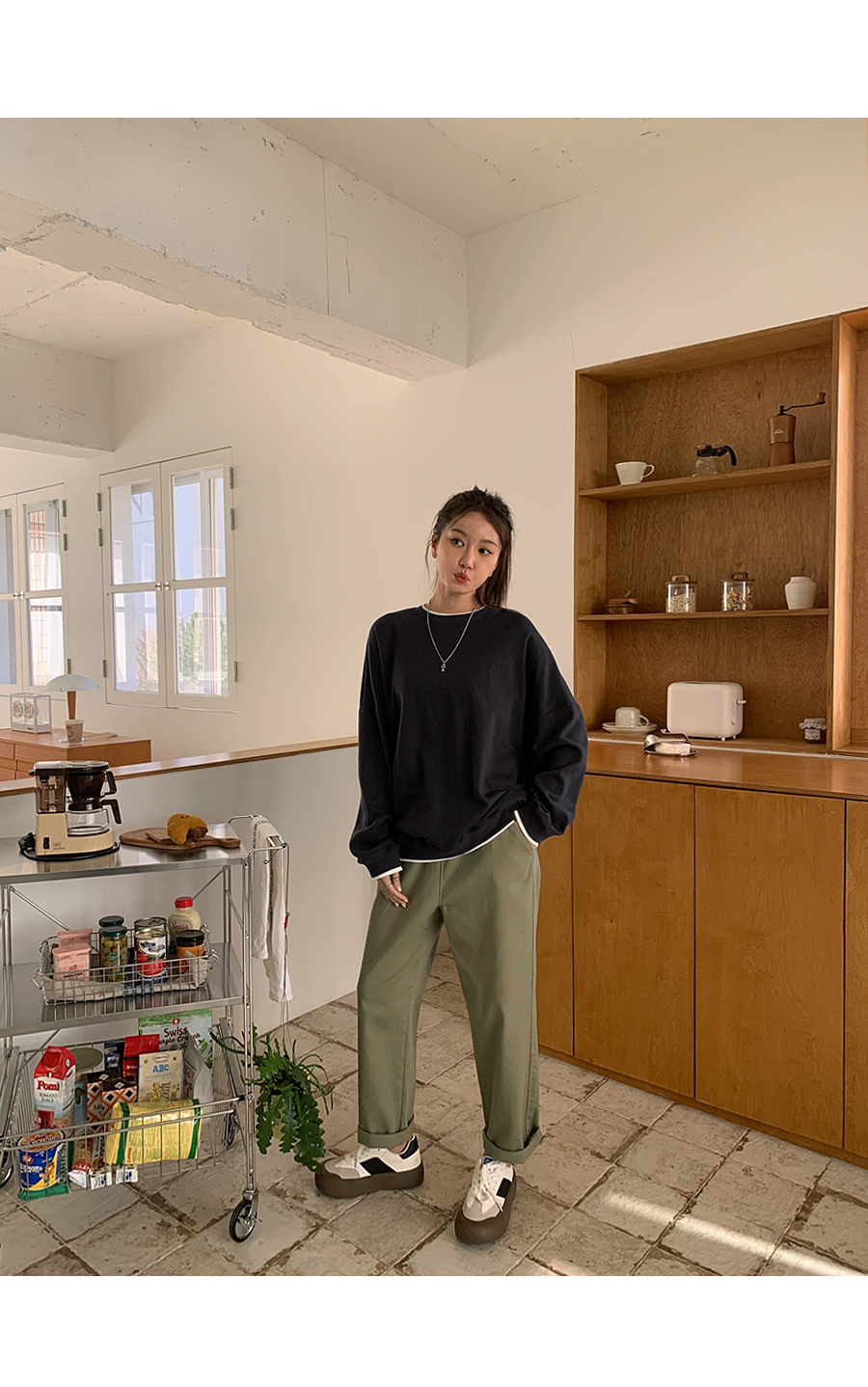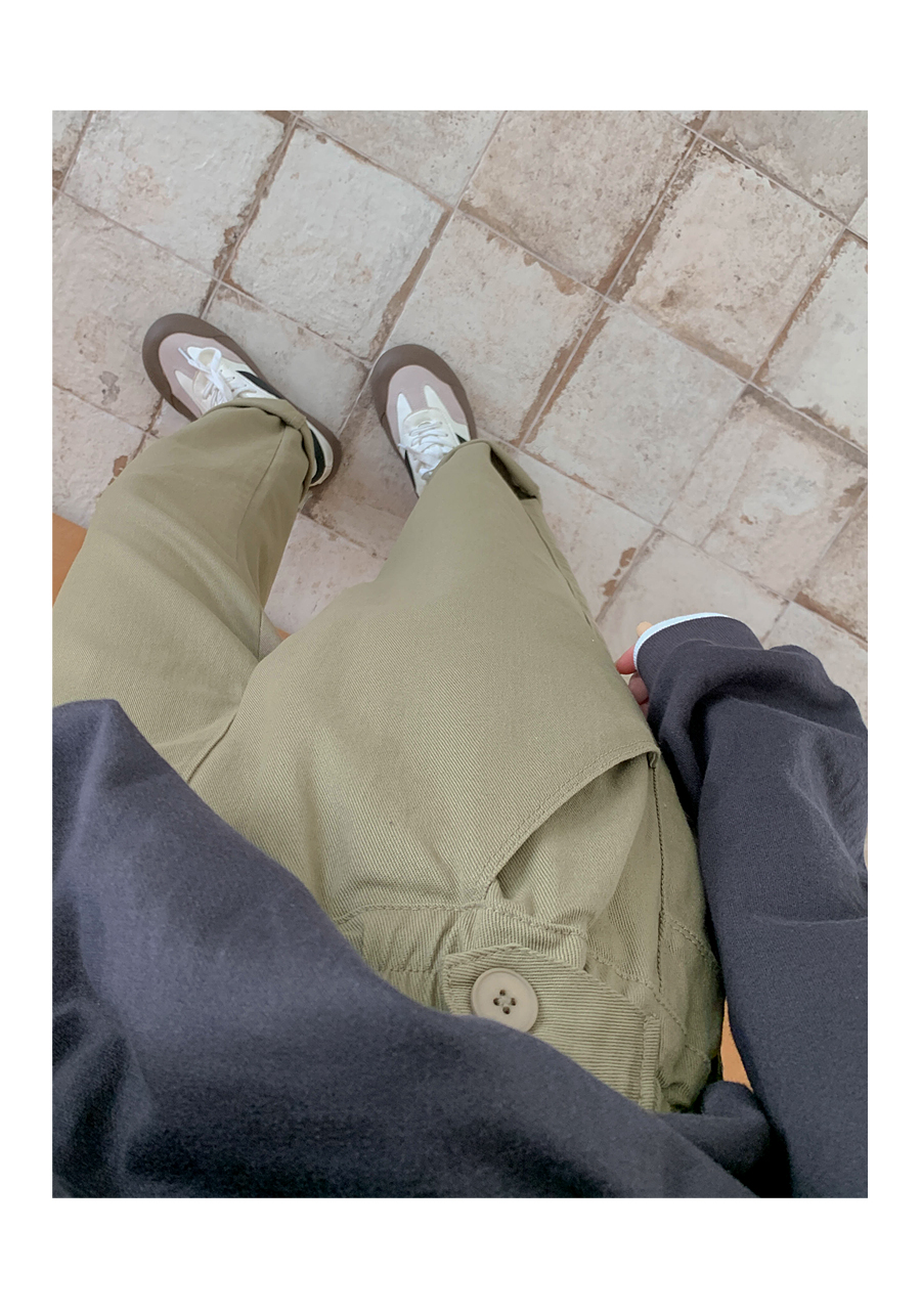 [20% off special sale] Hey Button Bijou Cotton Washing Semi Baggy Span Banding Pants
