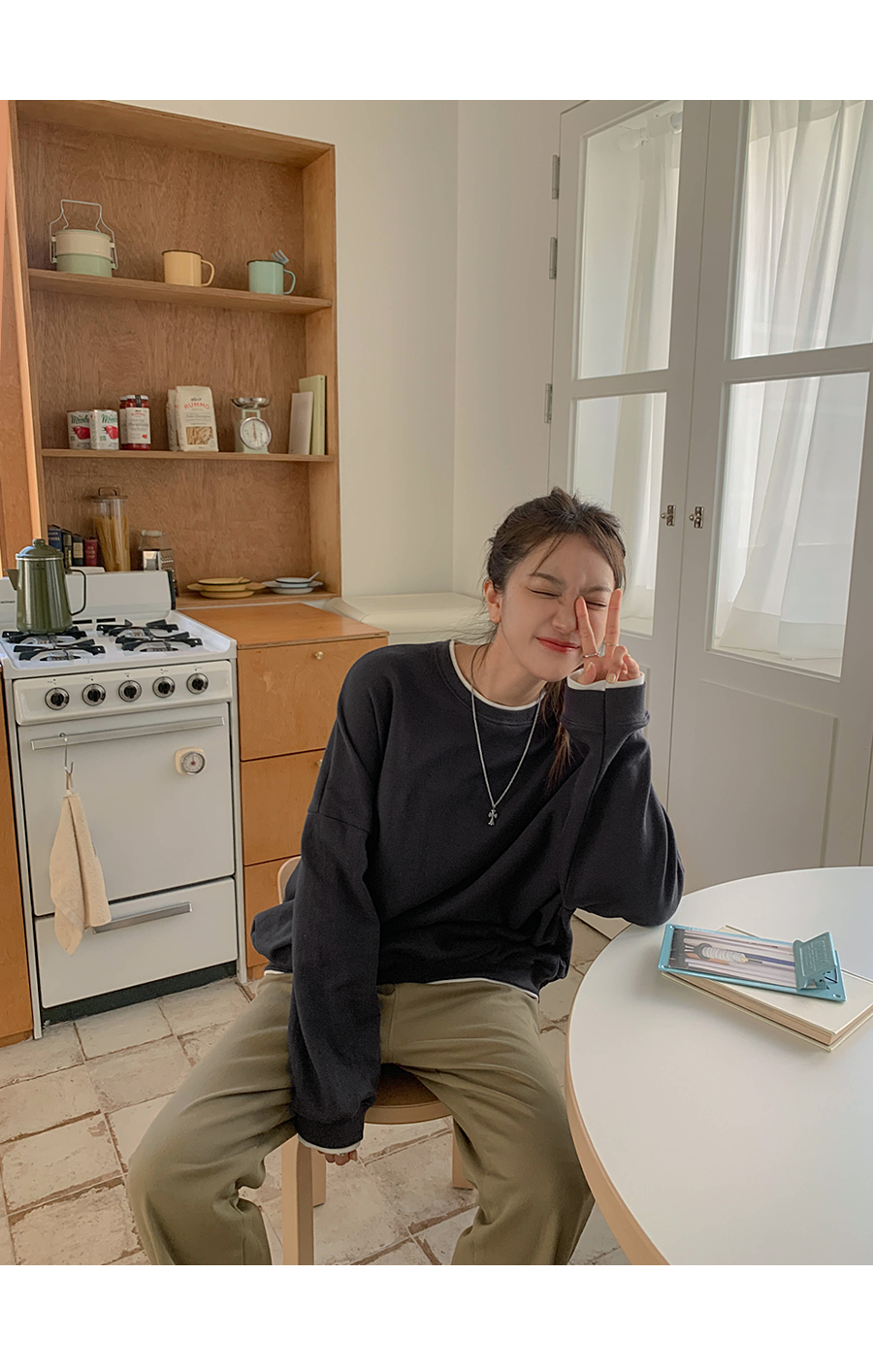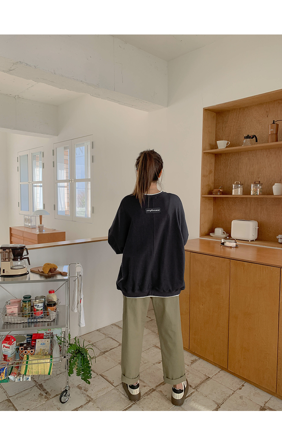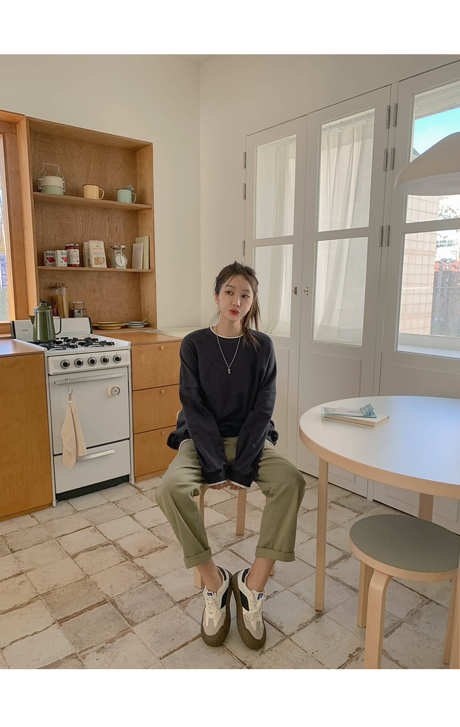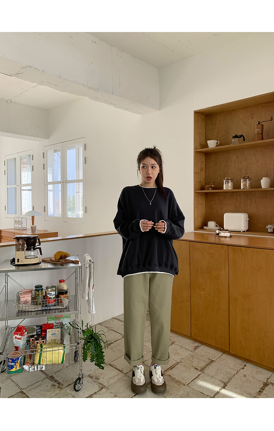 [20% off special sale] Hey Button Bijou Cotton Washing Semi Baggy Span Banding Pants