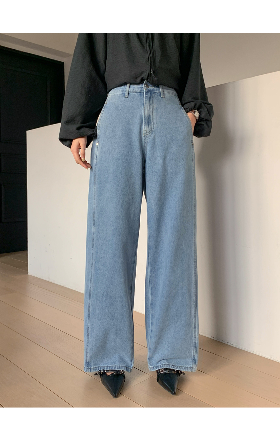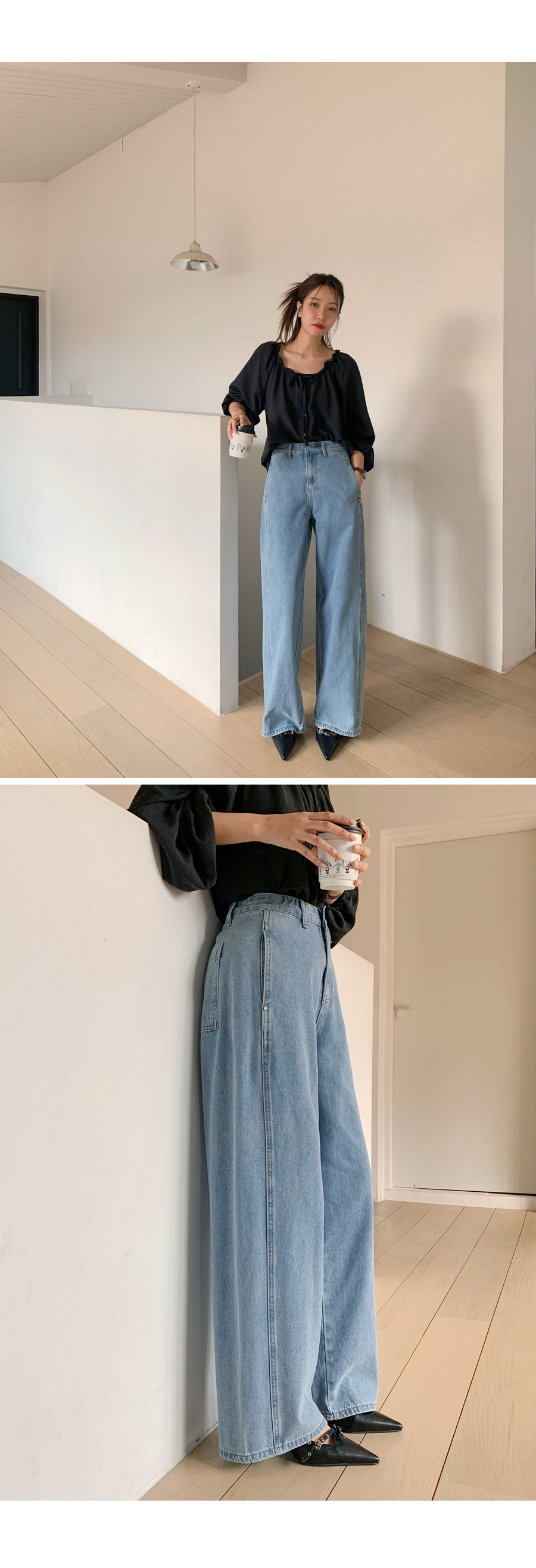 Fleece Curved Cut Denim Wide Pants (Short/Basic/Long)