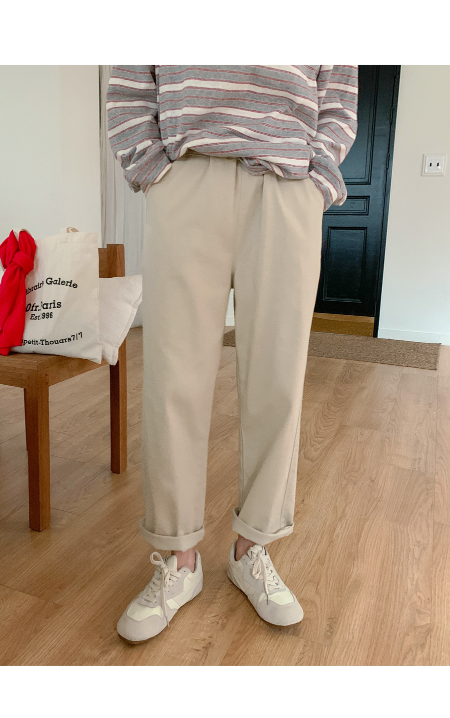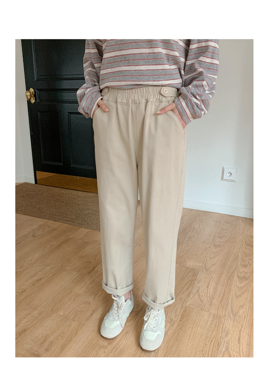 [20% off special sale] Hey Button Bijou Cotton Washing Semi Baggy Span Banding Pants