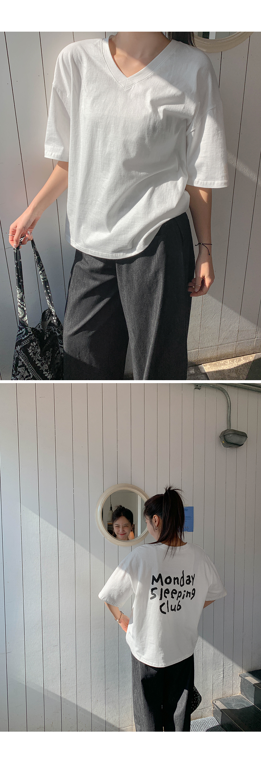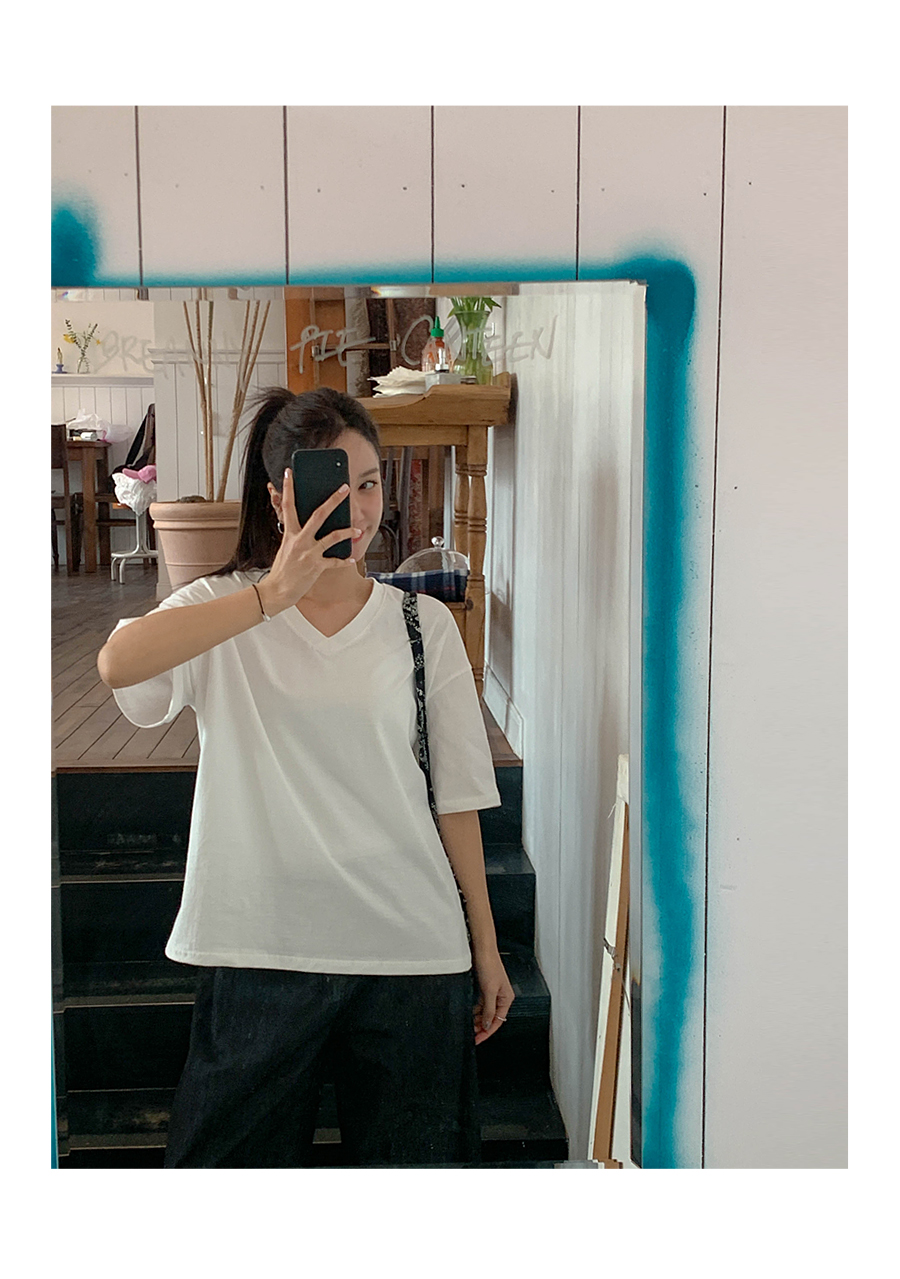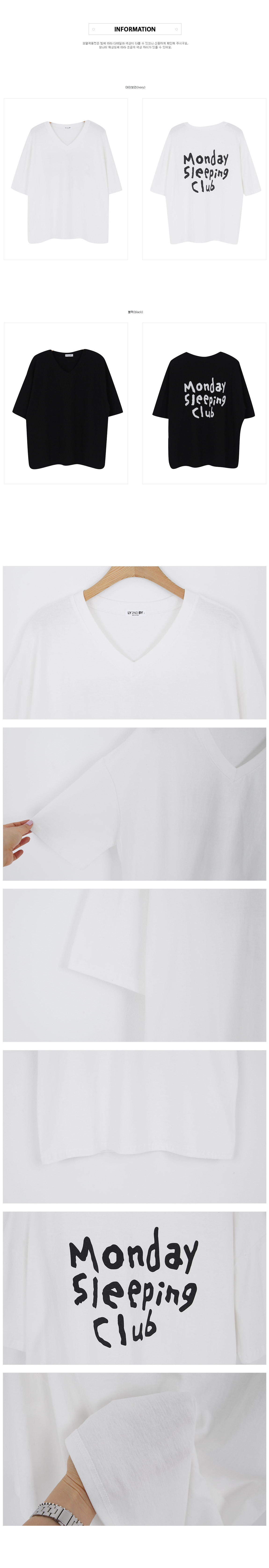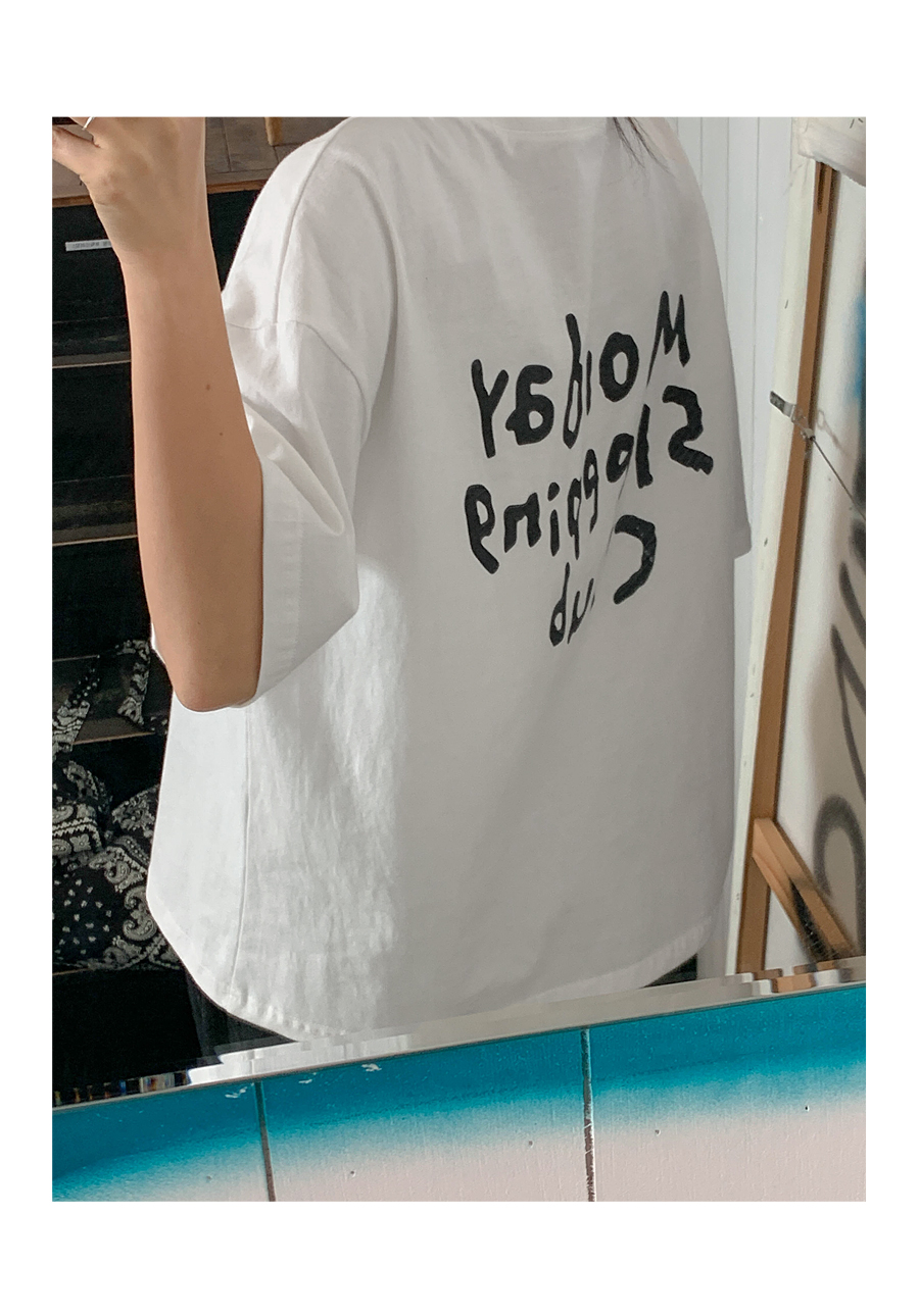 Monday Sleeping Back Print V-Neck Short Sleeves T-shirt