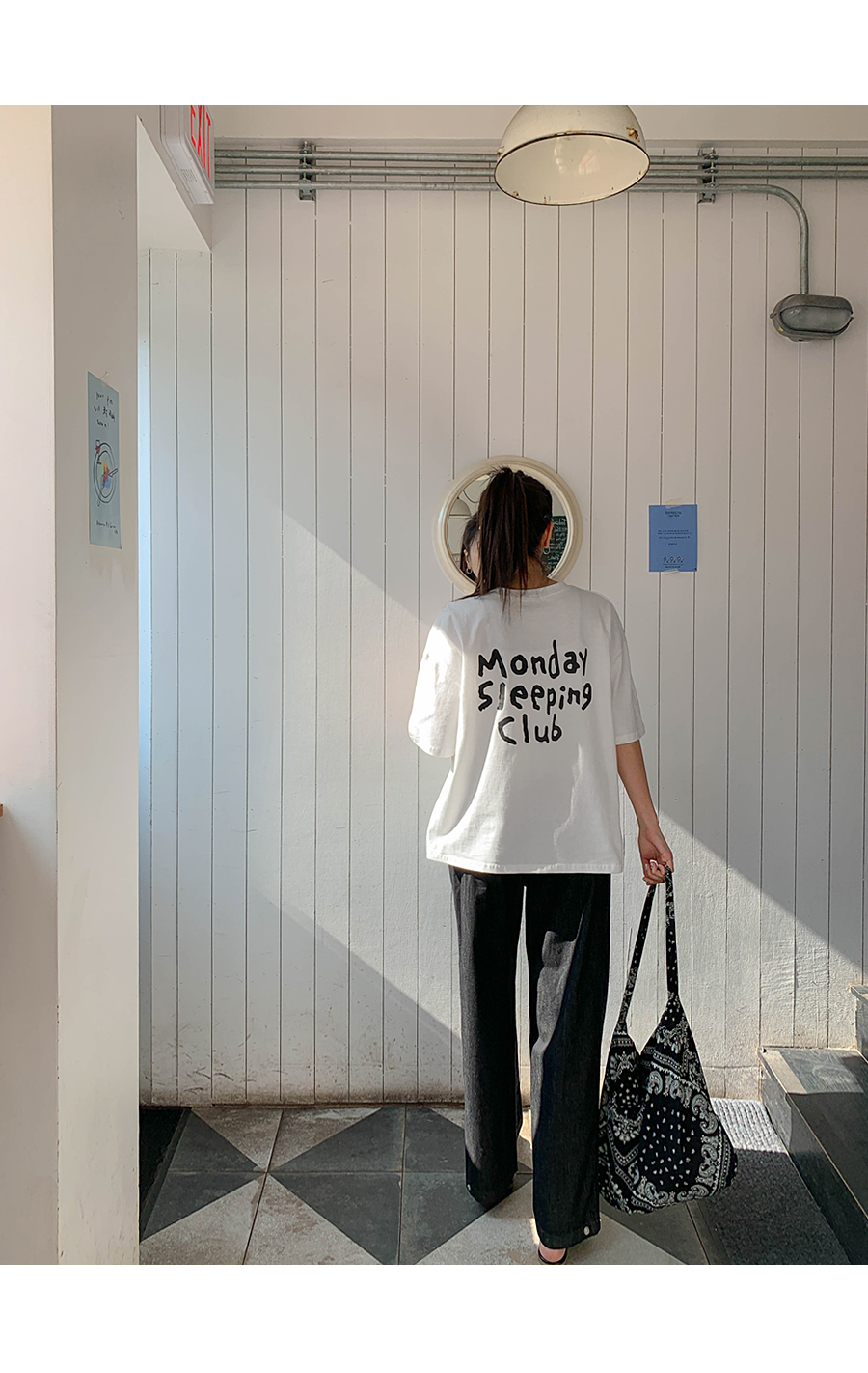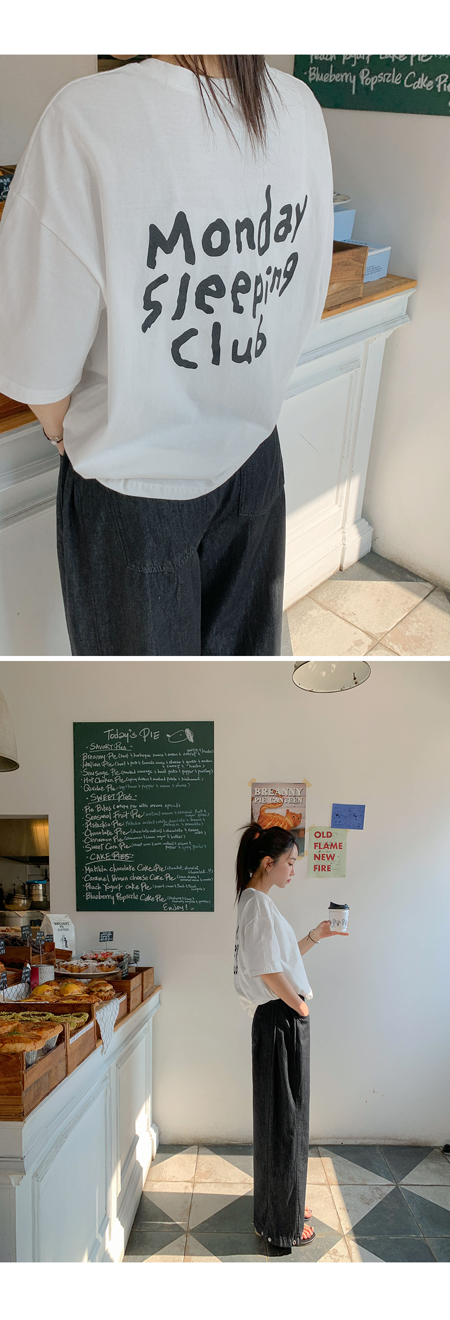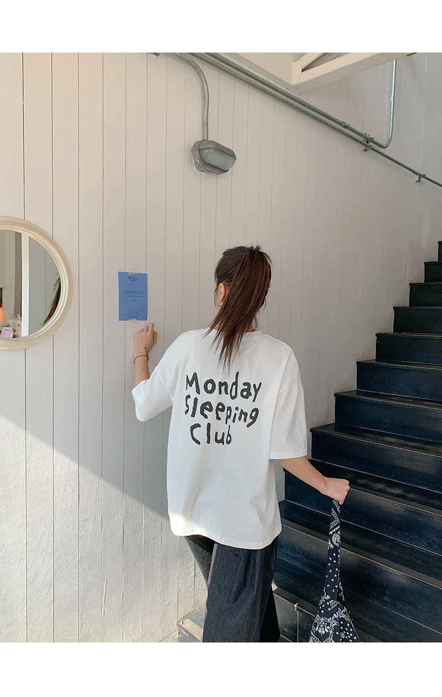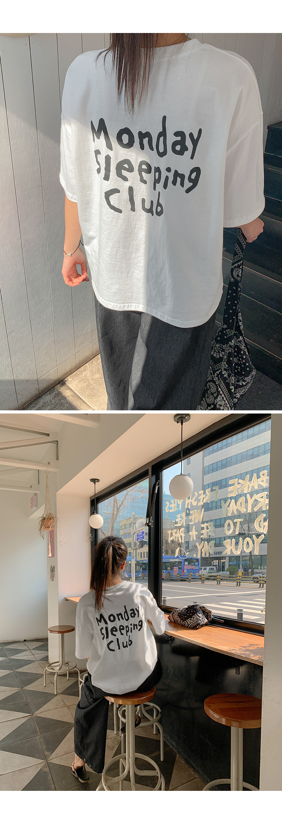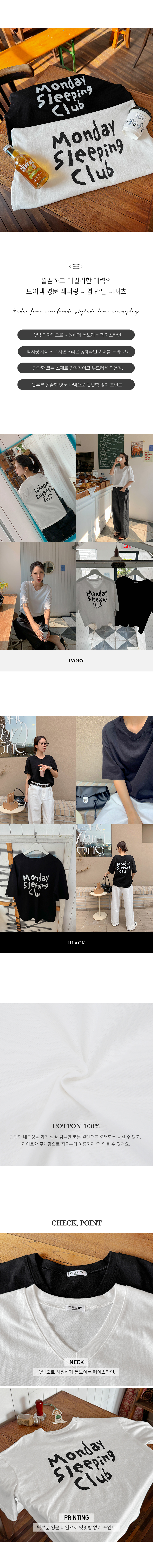 Monday Sleeping Back Print V-Neck Short Sleeves T-shirt