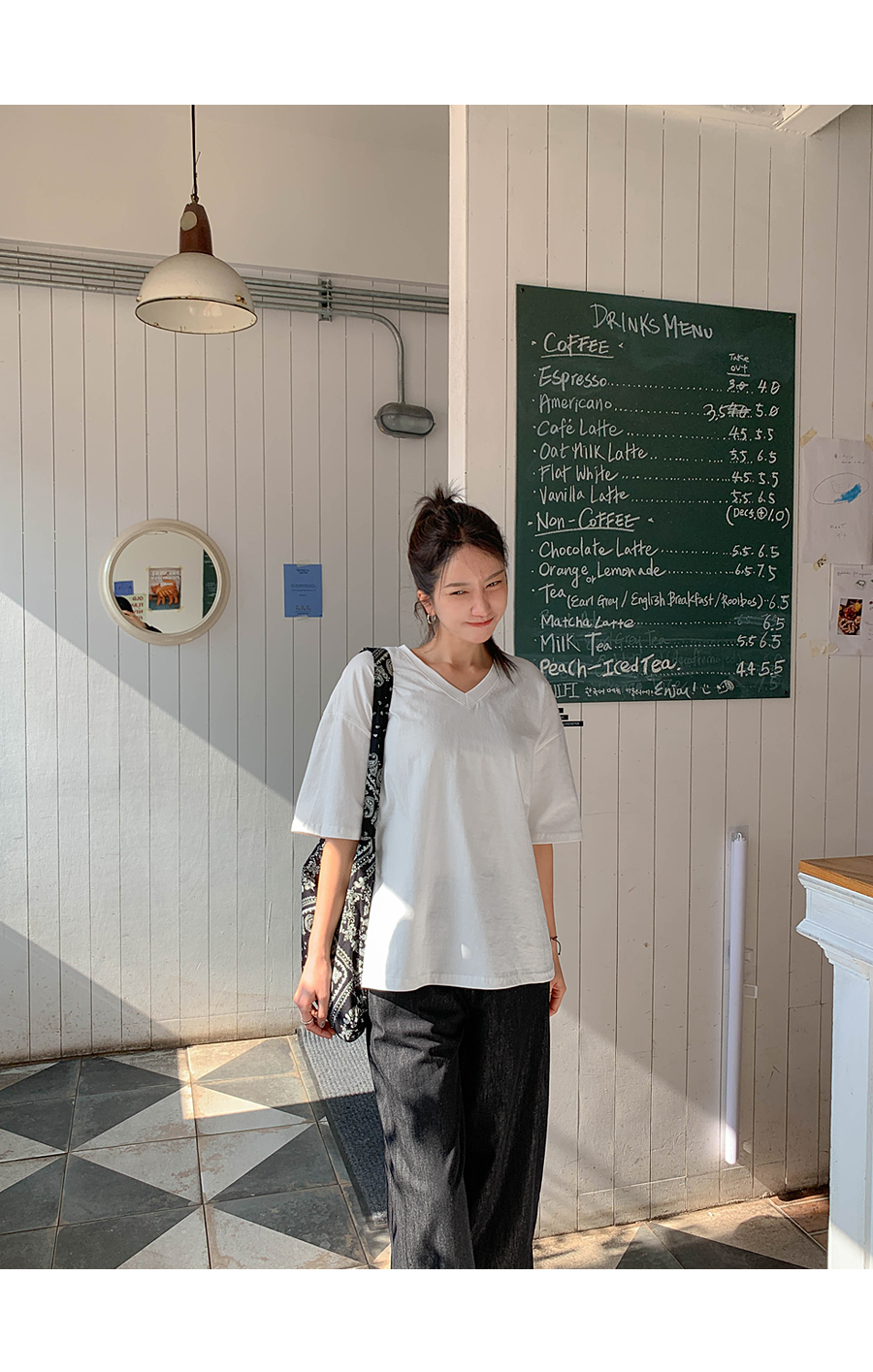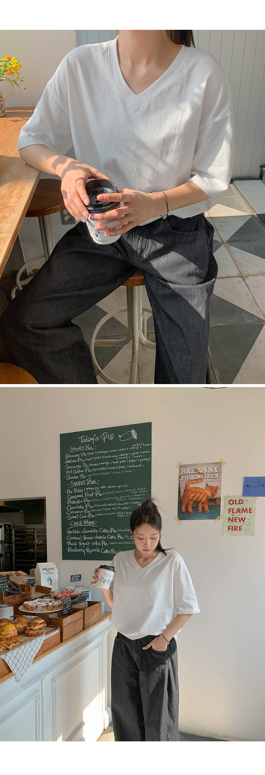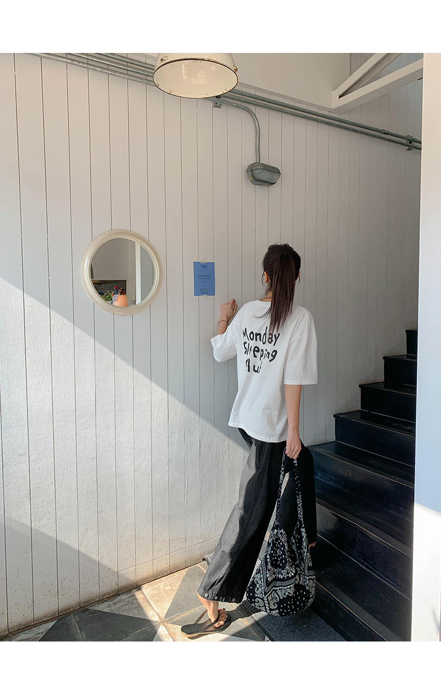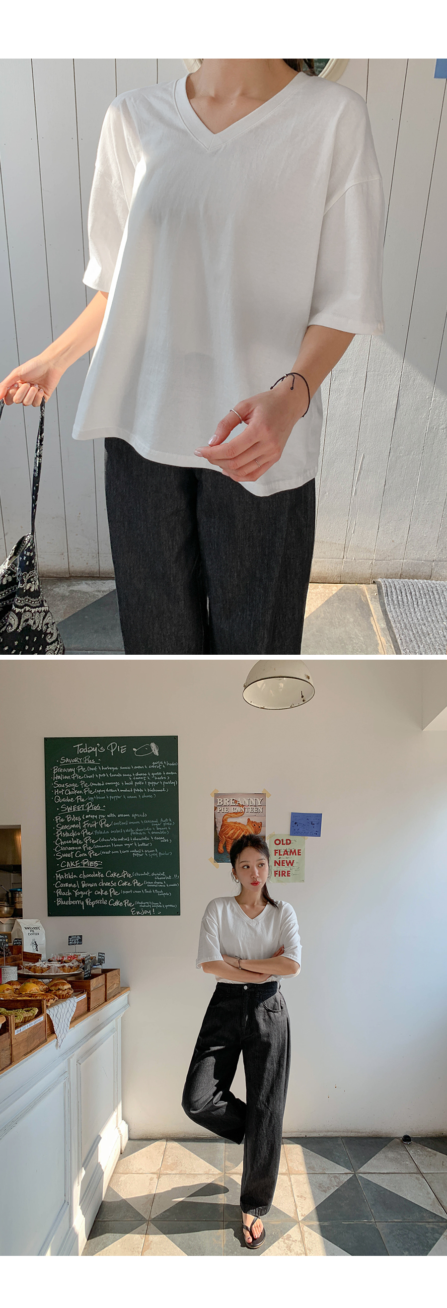 Monday Sleeping Back Print V-Neck Short Sleeves T-shirt