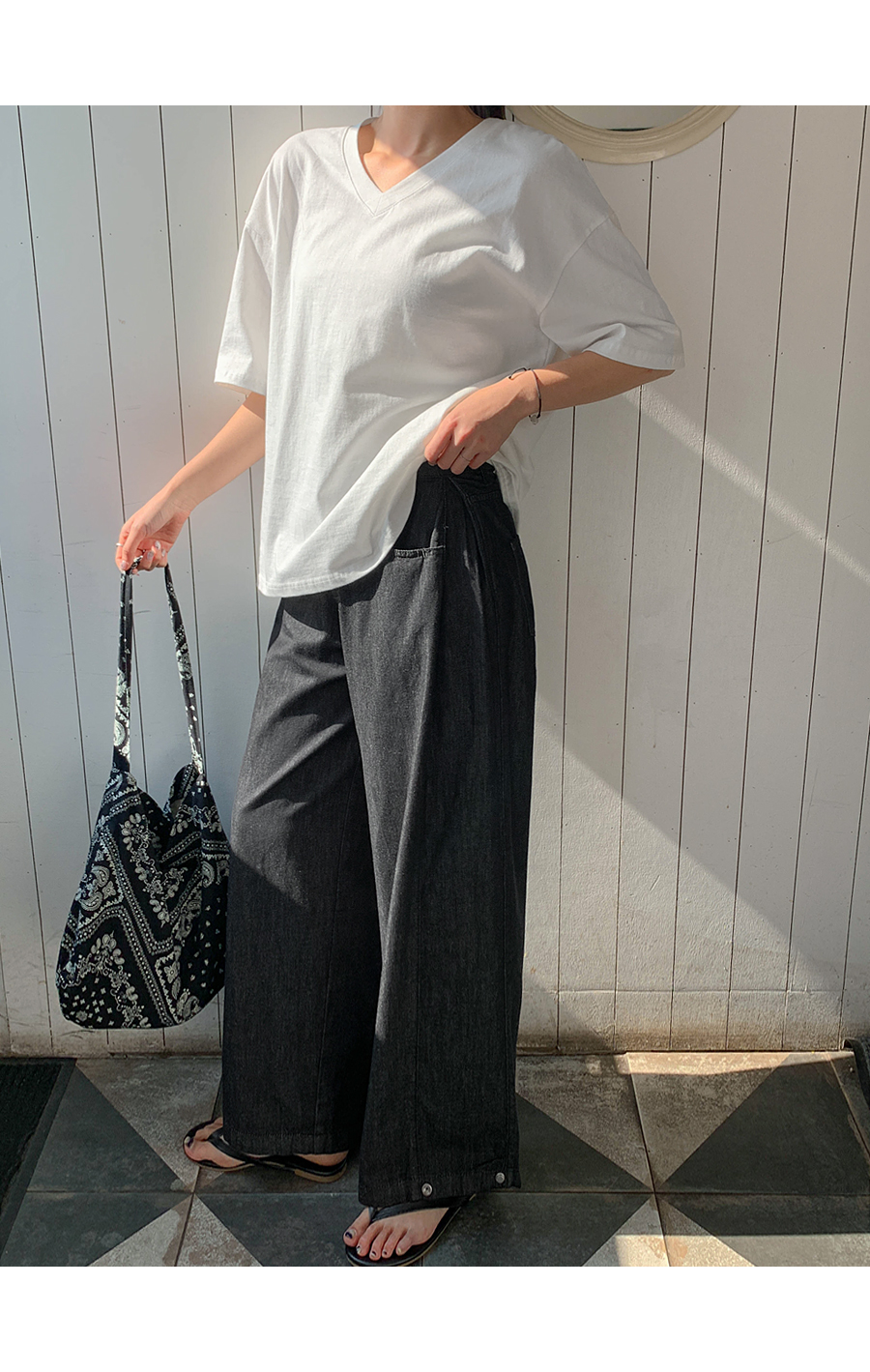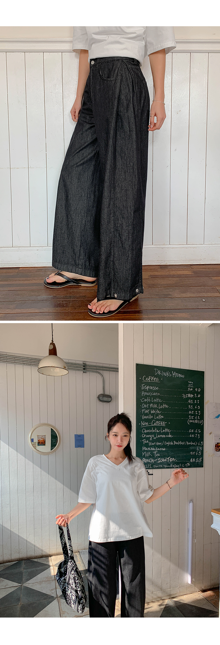 Loop 3-way Pintuck Snap Button Non-Fade Denim Wide Pants (Short/Basic/Longver)