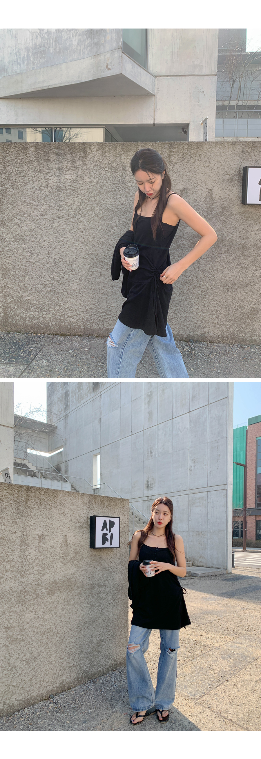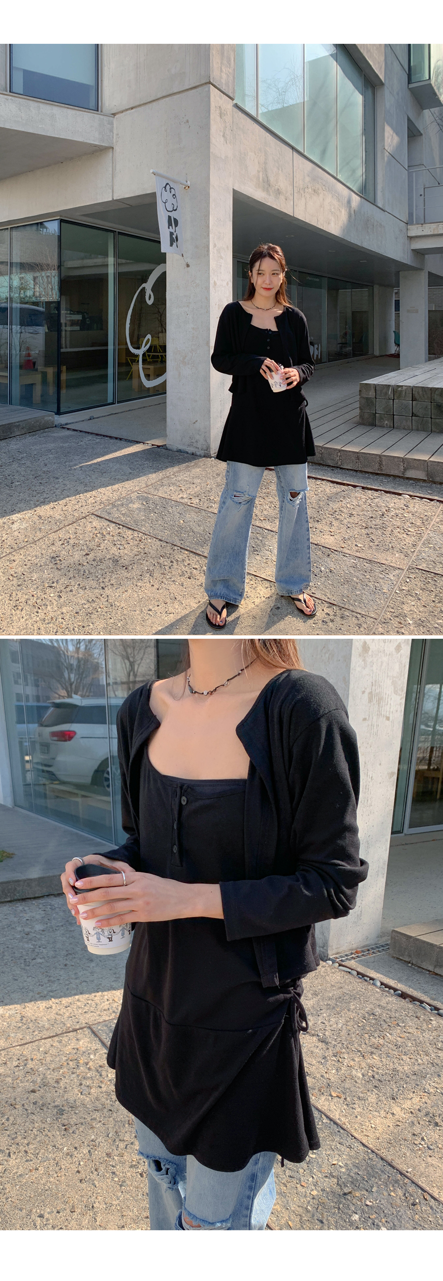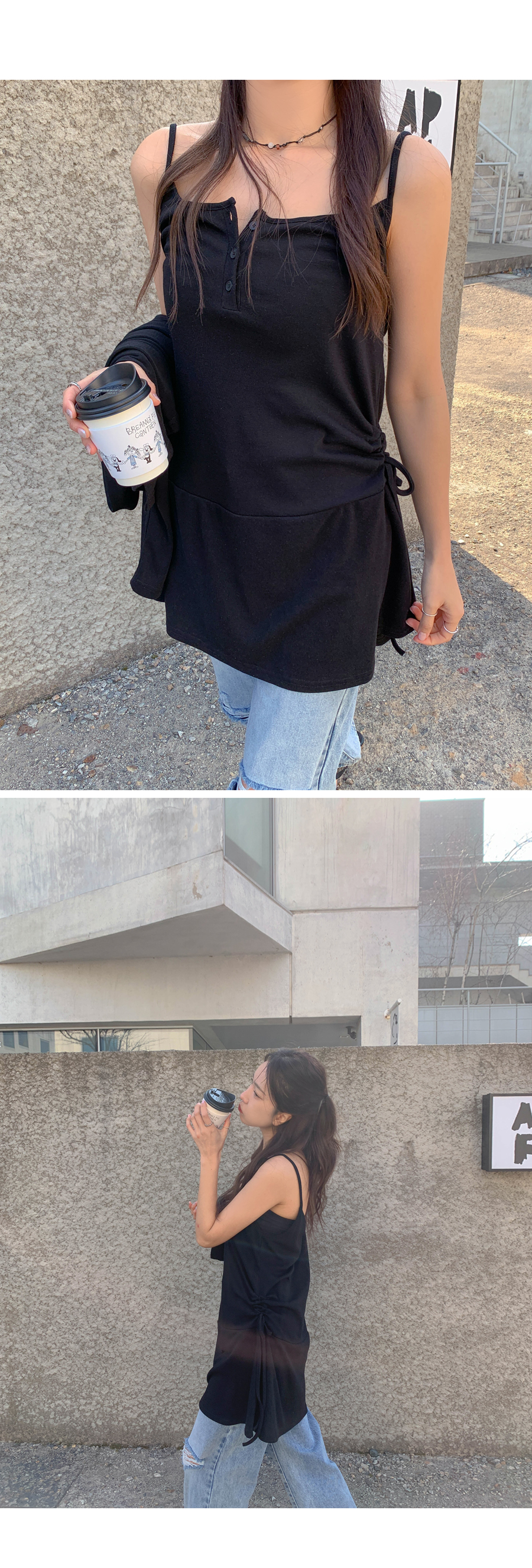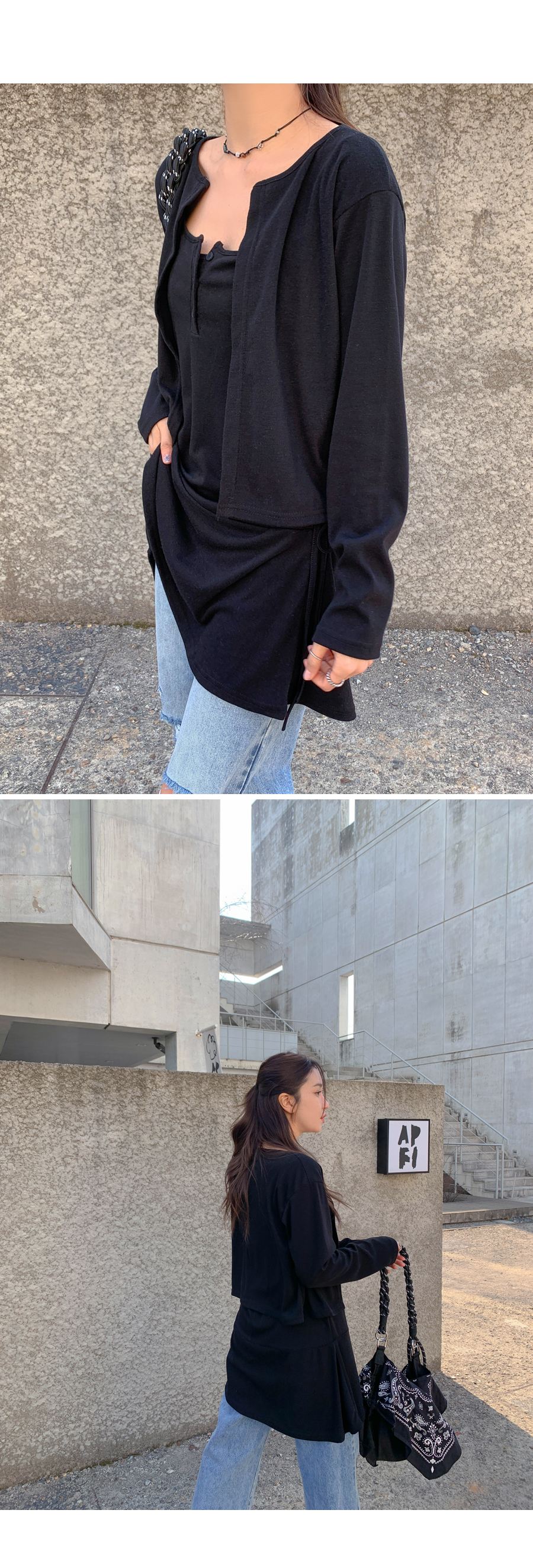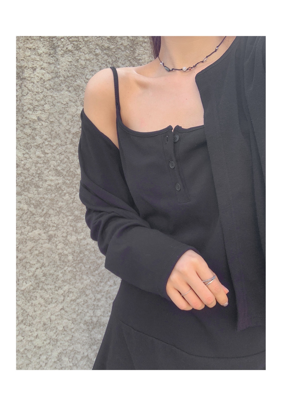 TT Shirring Sleeveless Shirts One Piece Cardigan Set