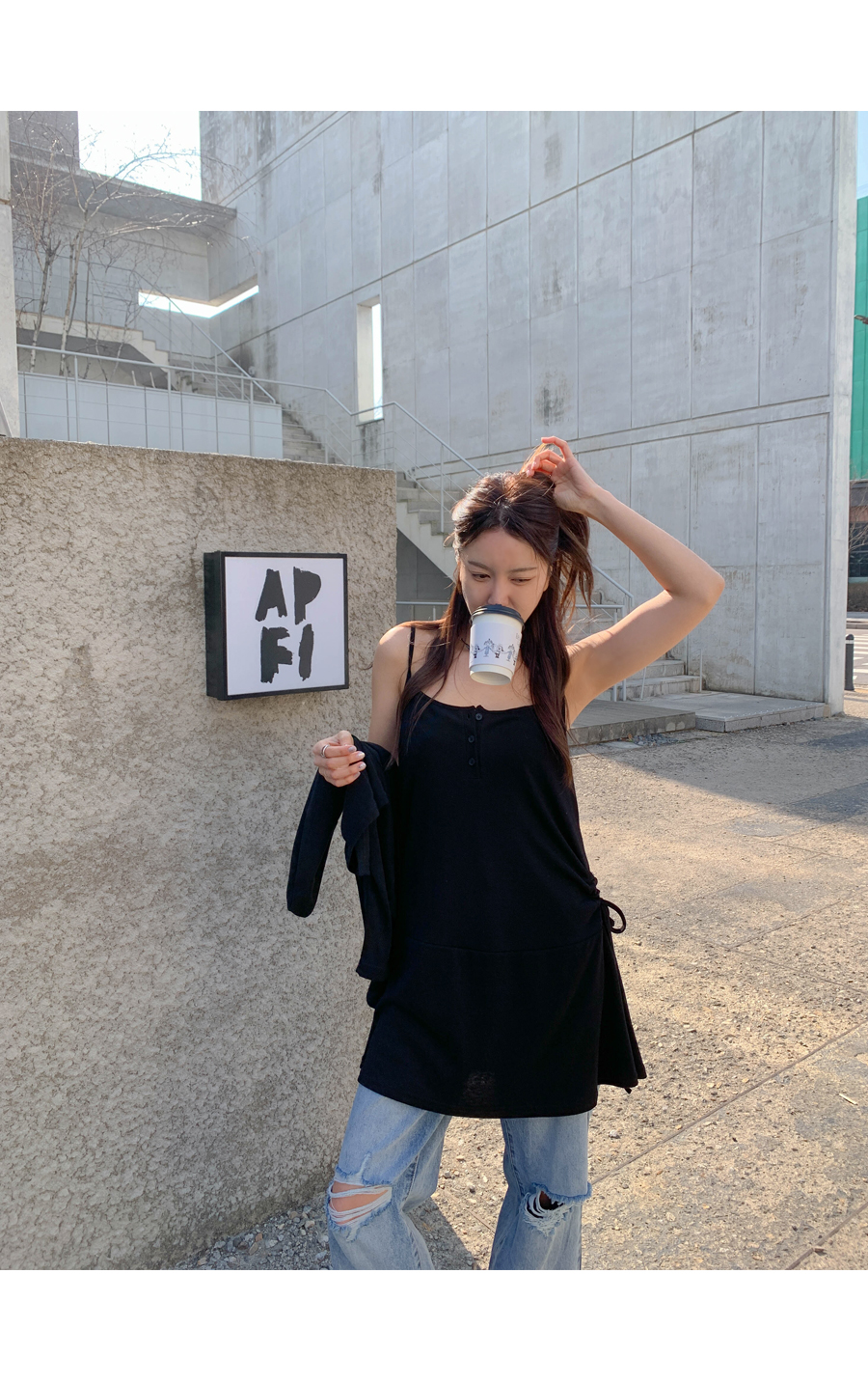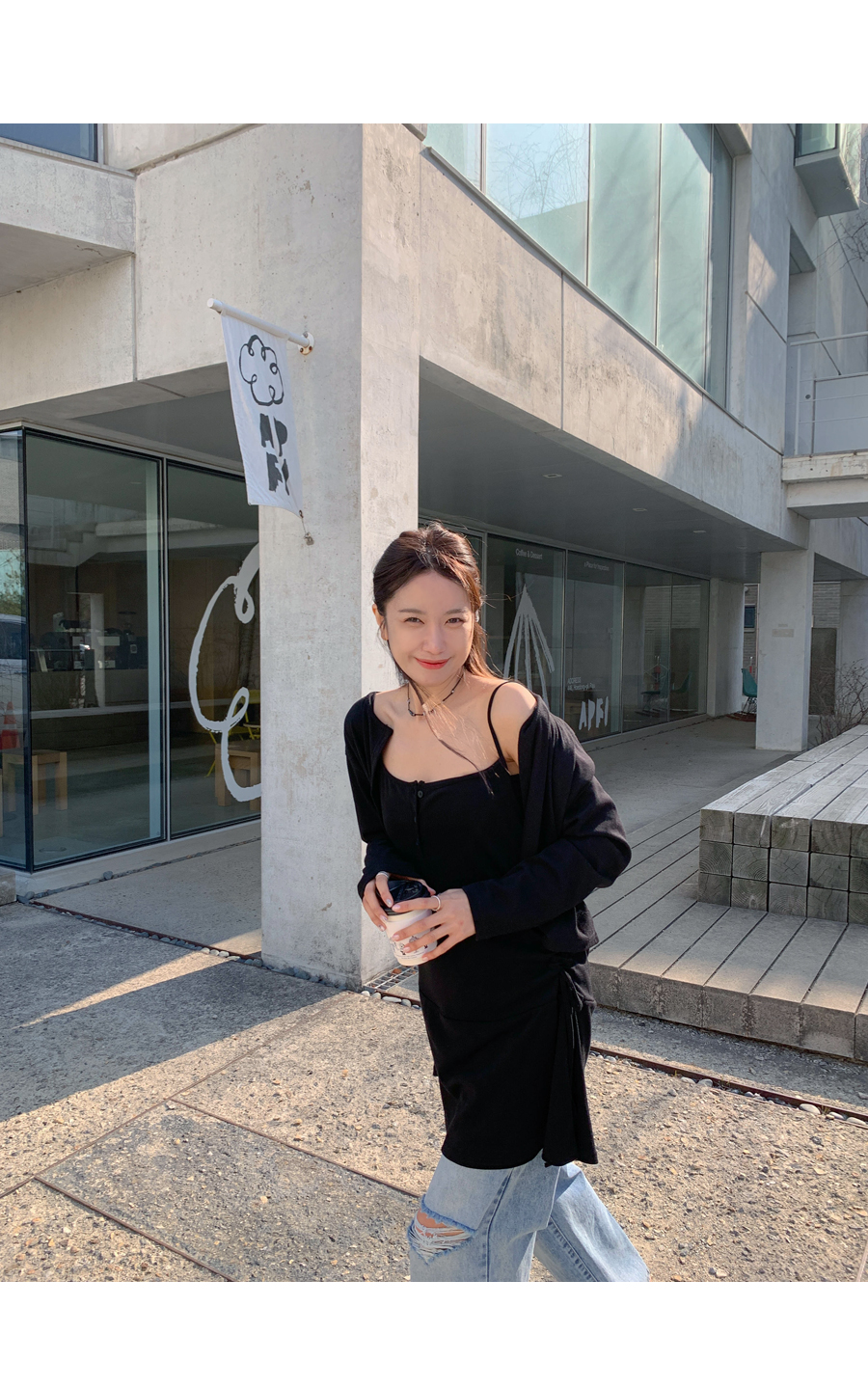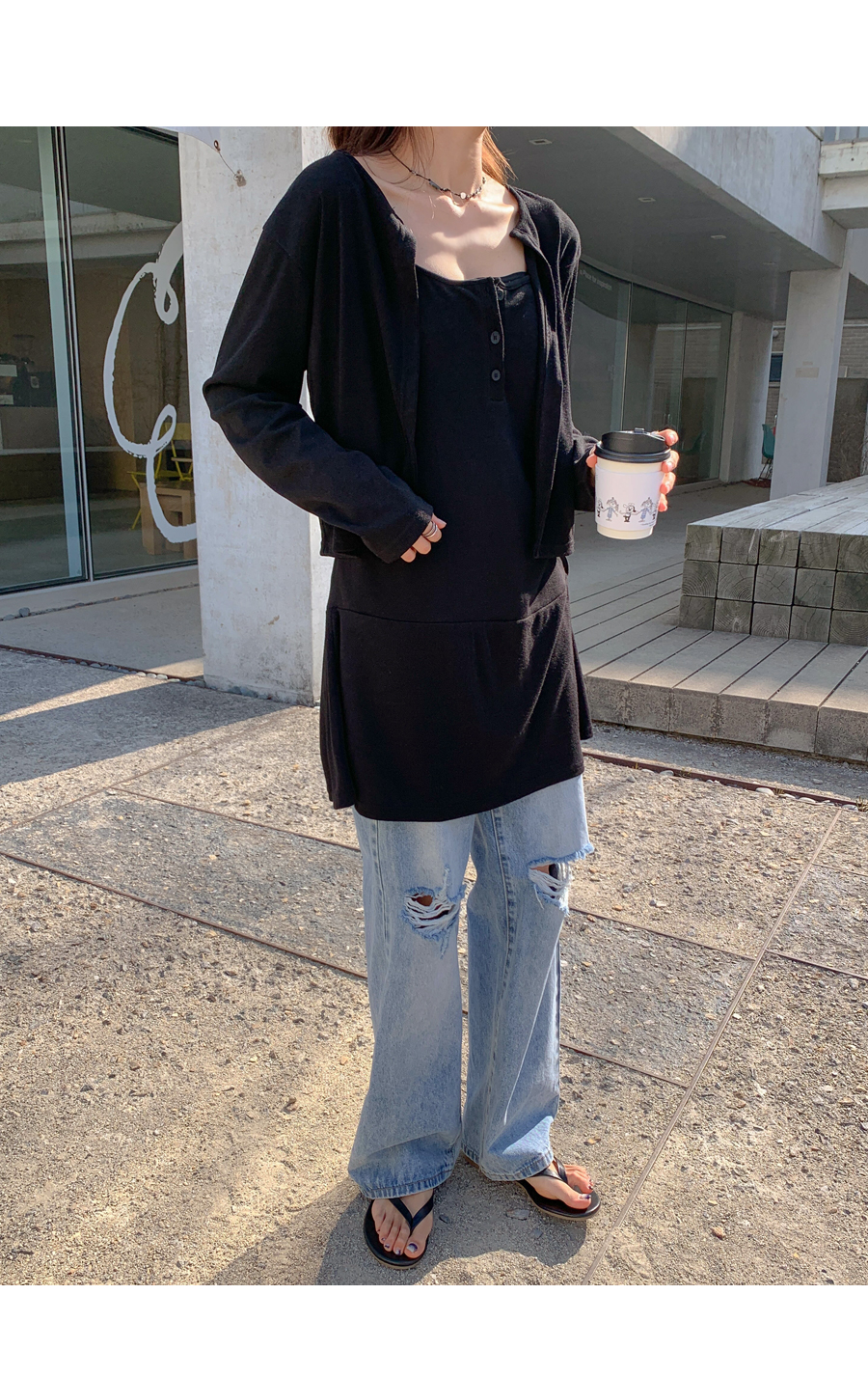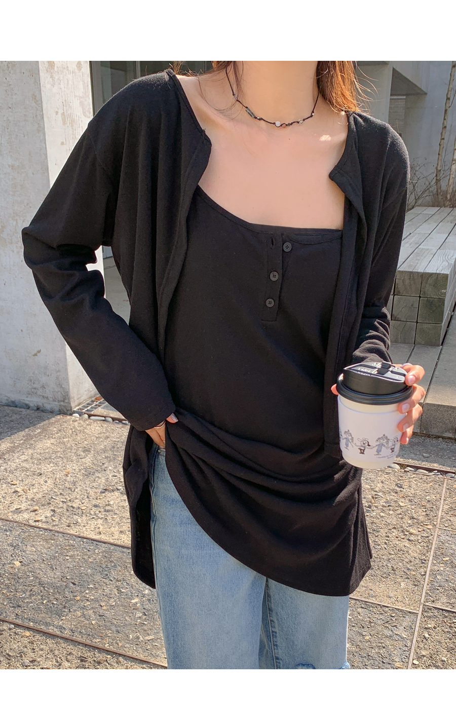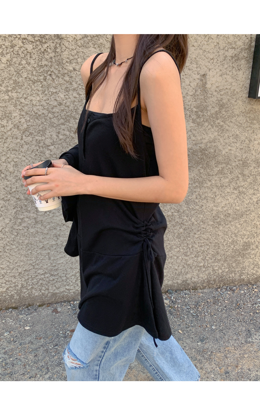 TT Shirring Sleeveless Shirts One Piece Cardigan Set