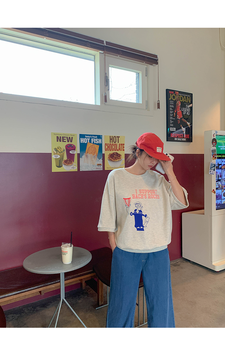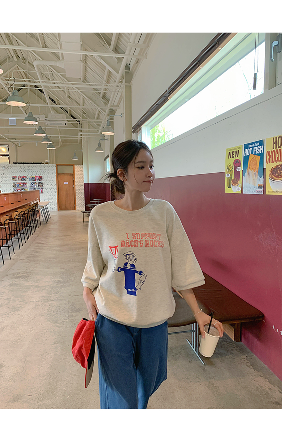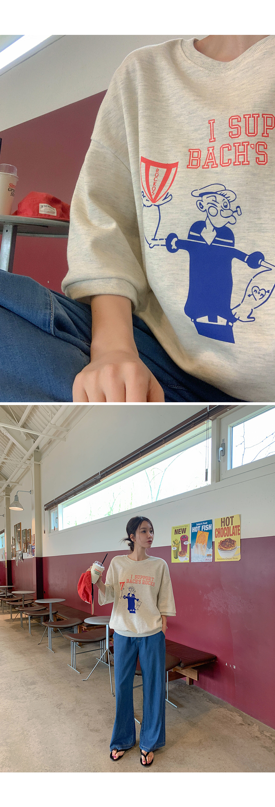 Popeye Print Short-sleeve Sweatshirt