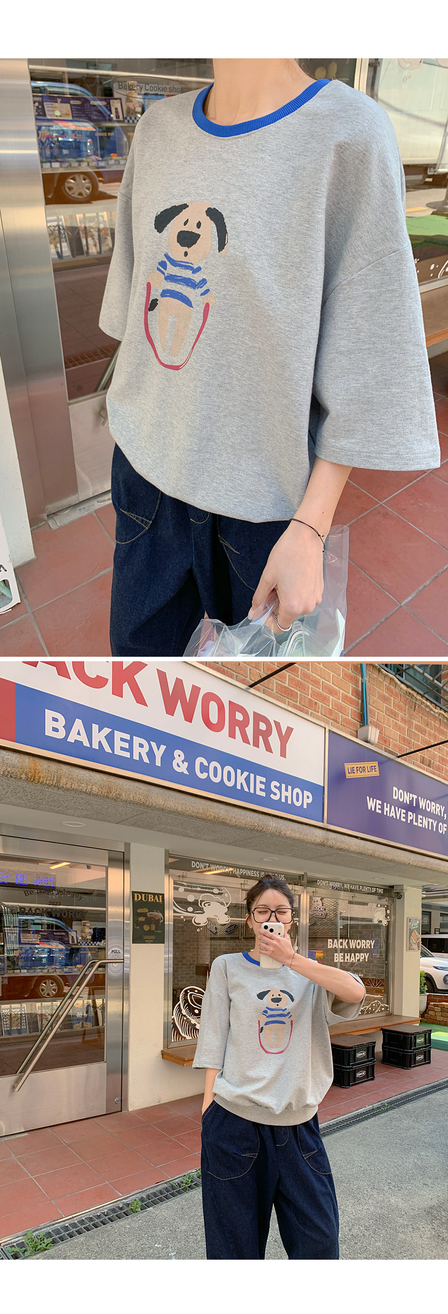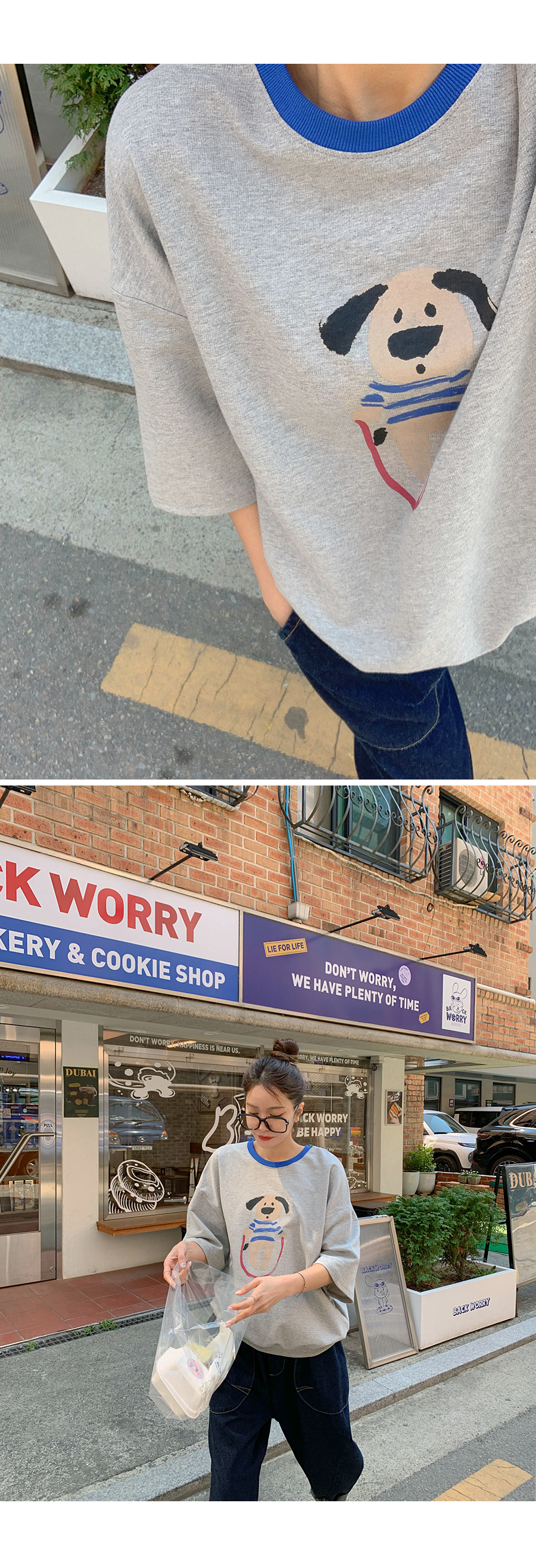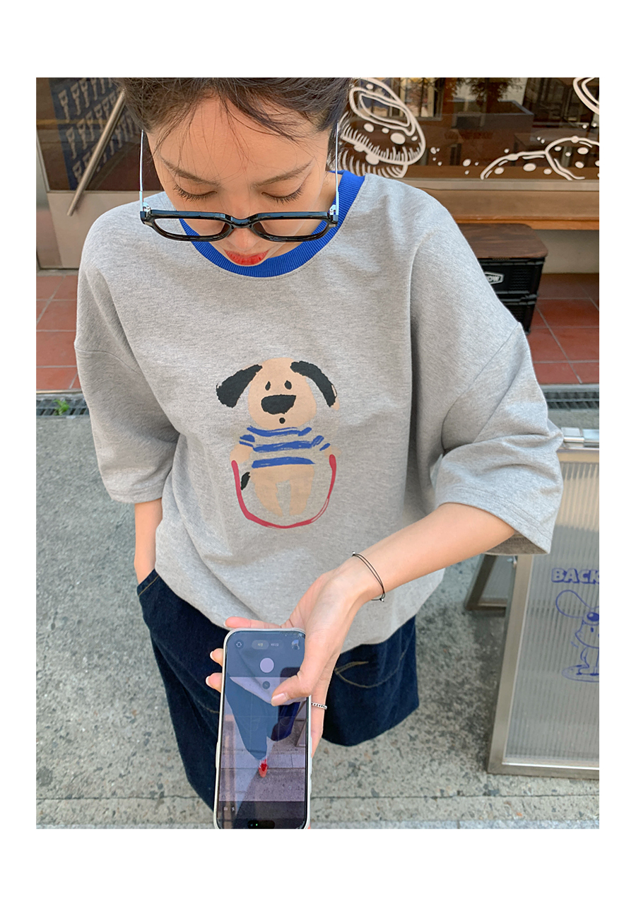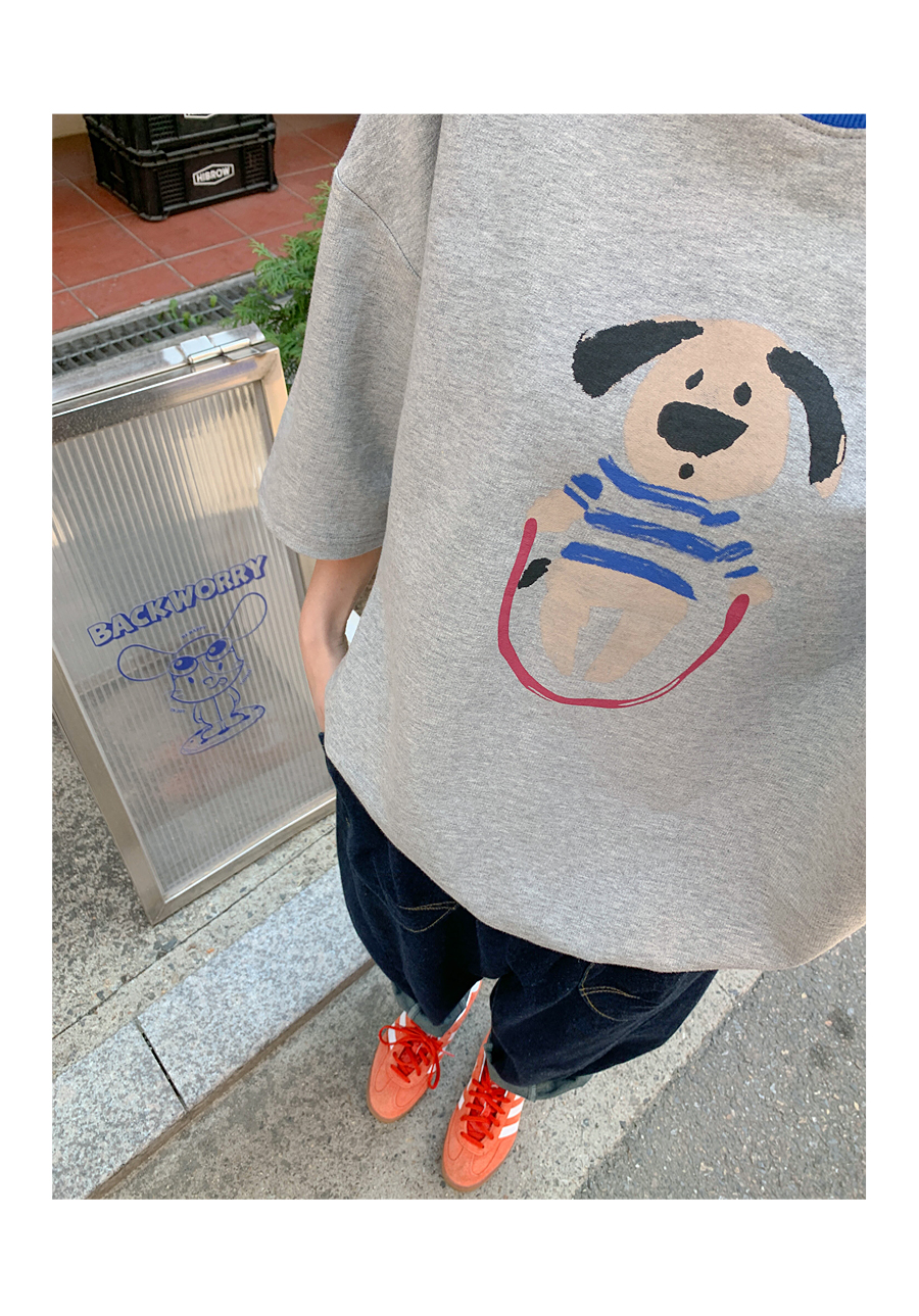Puppy color combination print short-sleeve sweatshirt