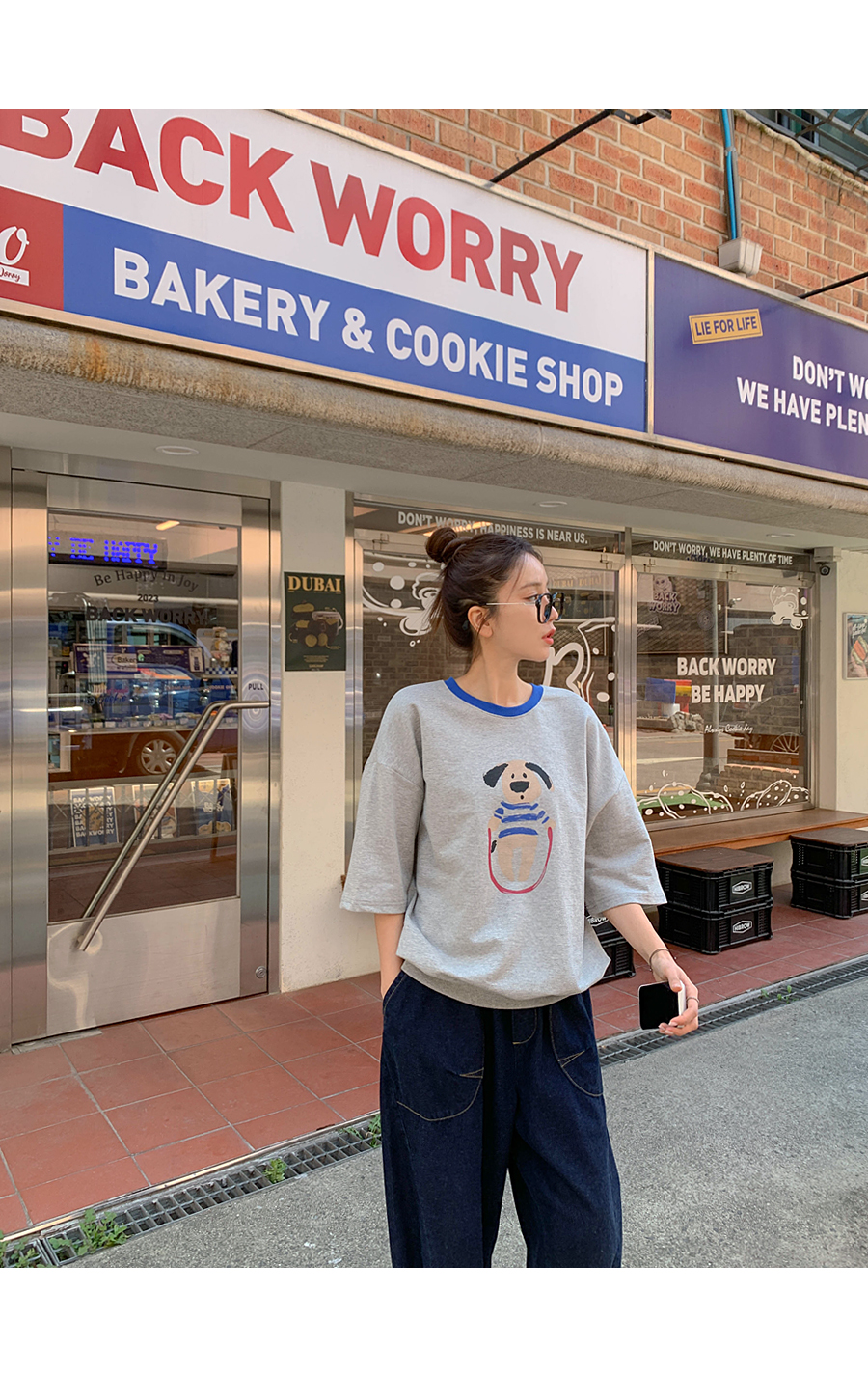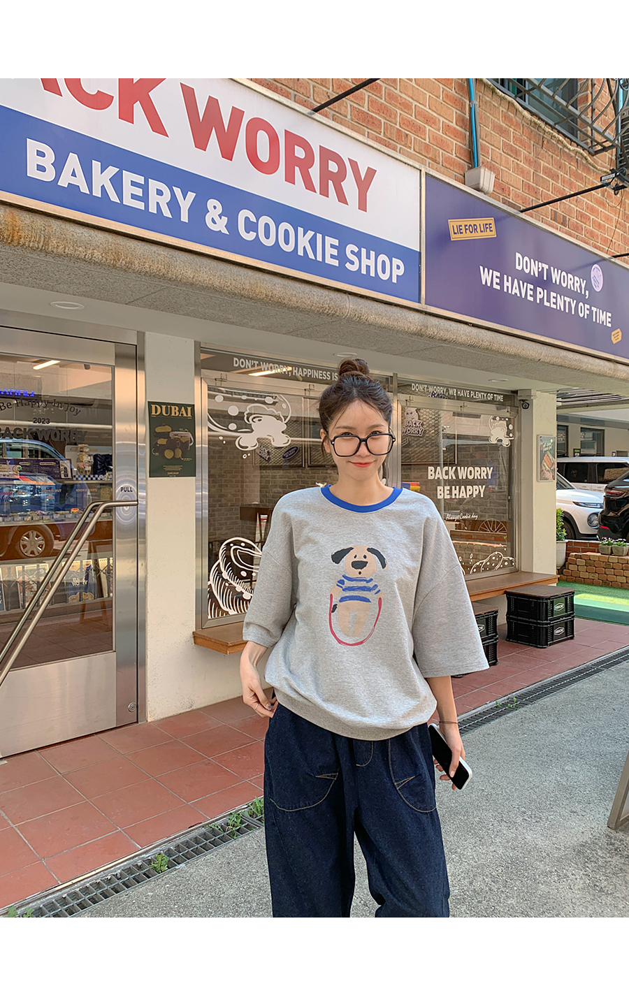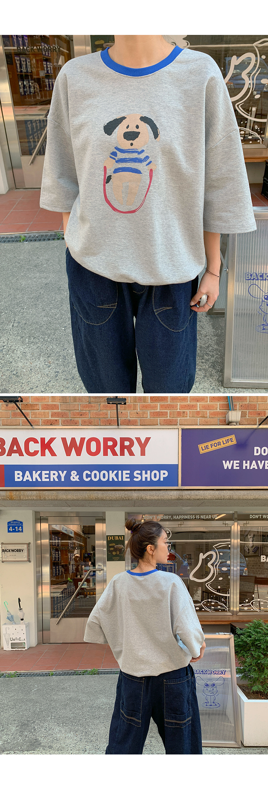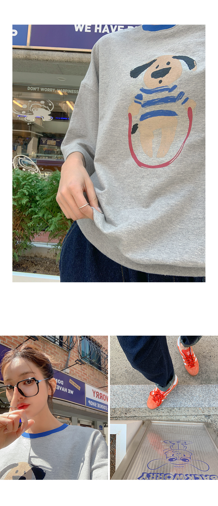 Puppy color combination print short-sleeve sweatshirt