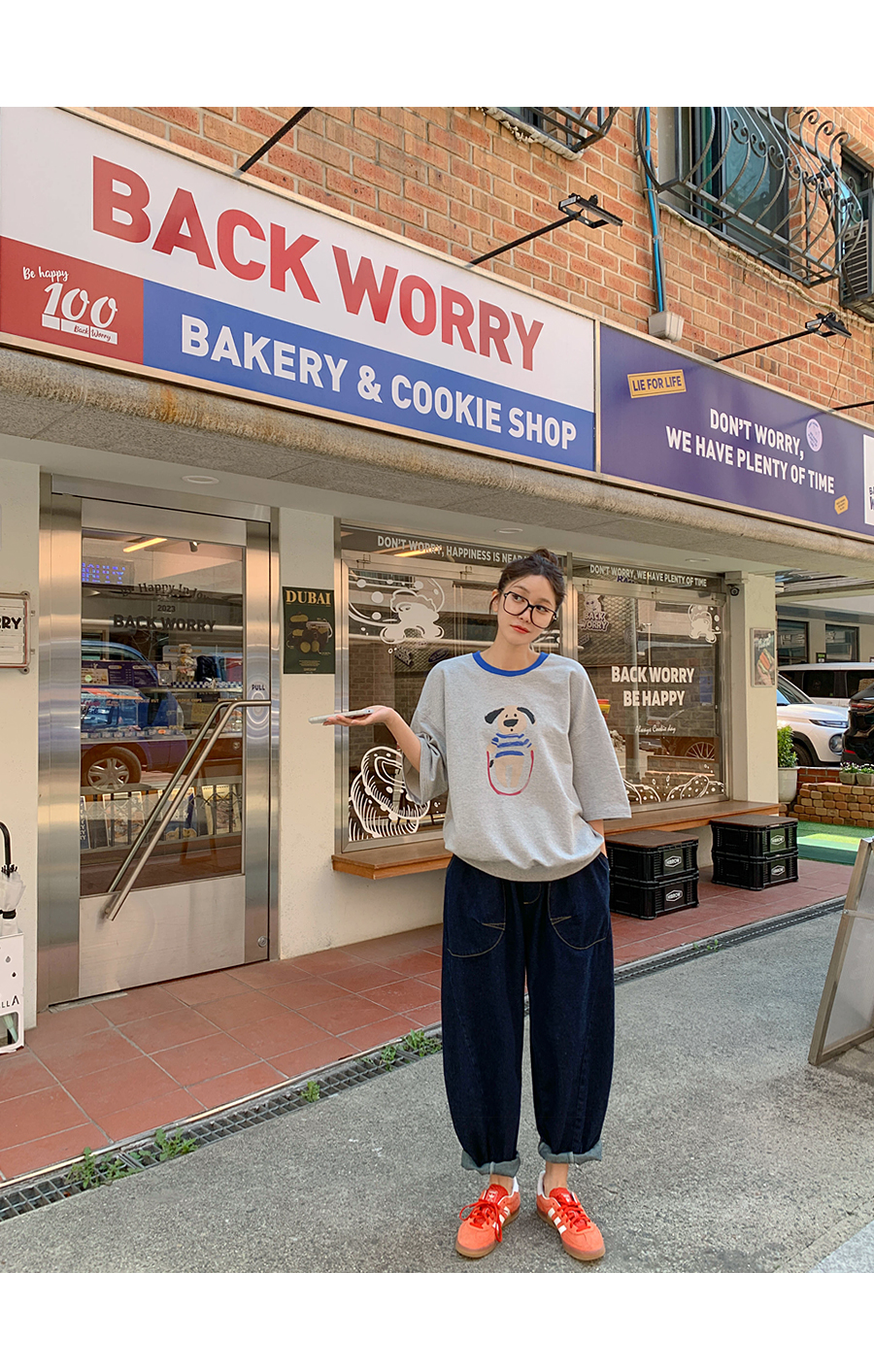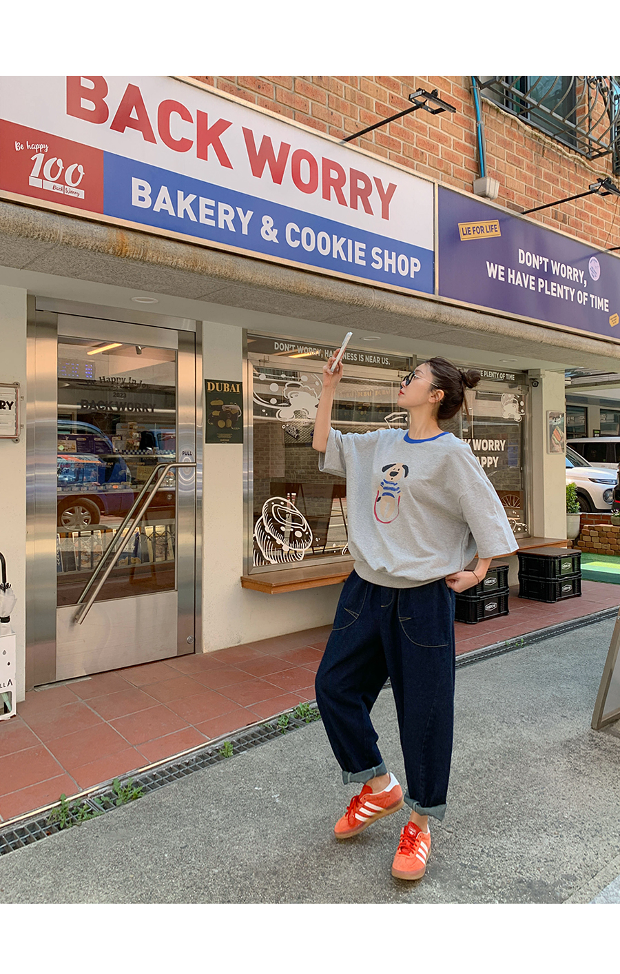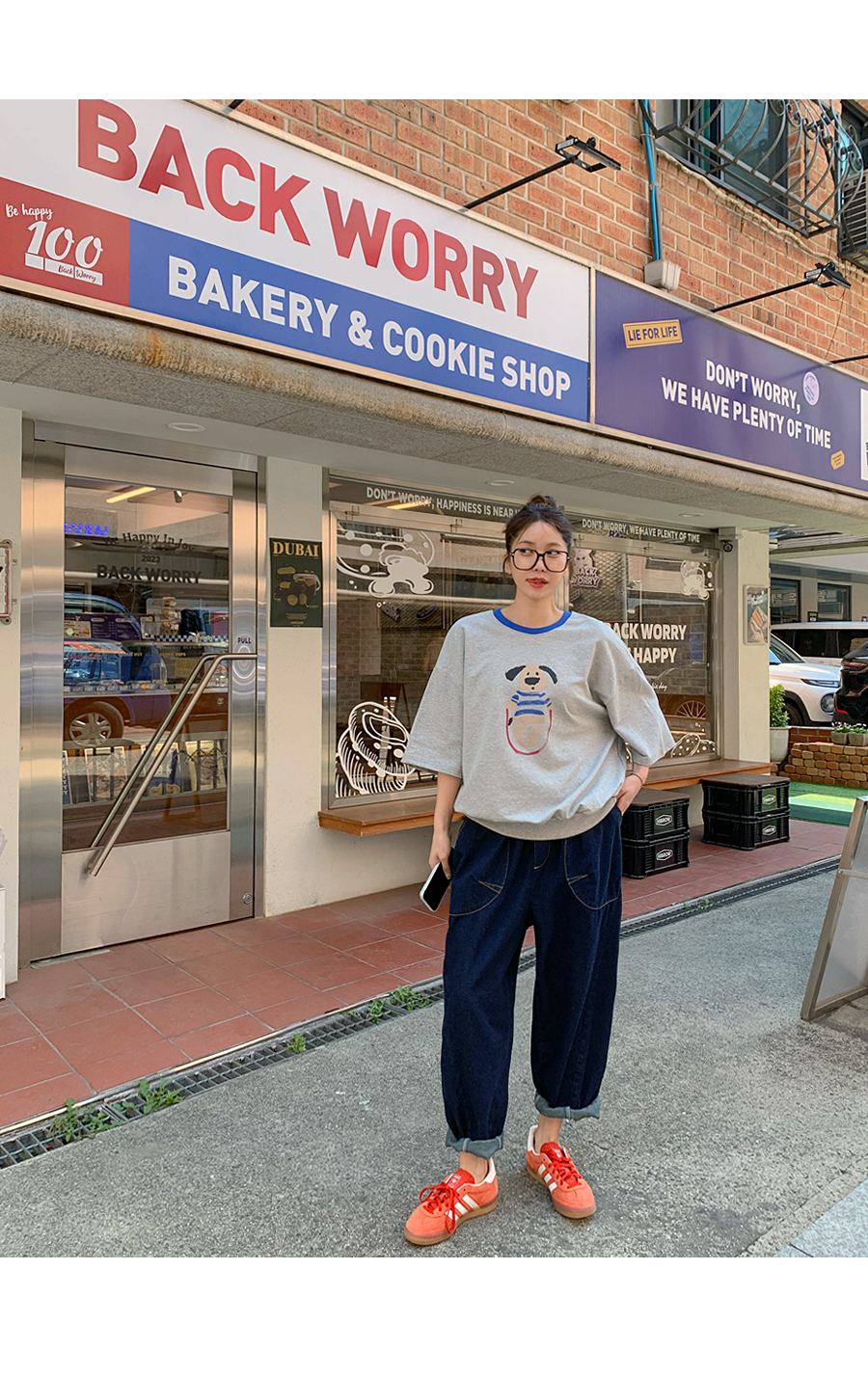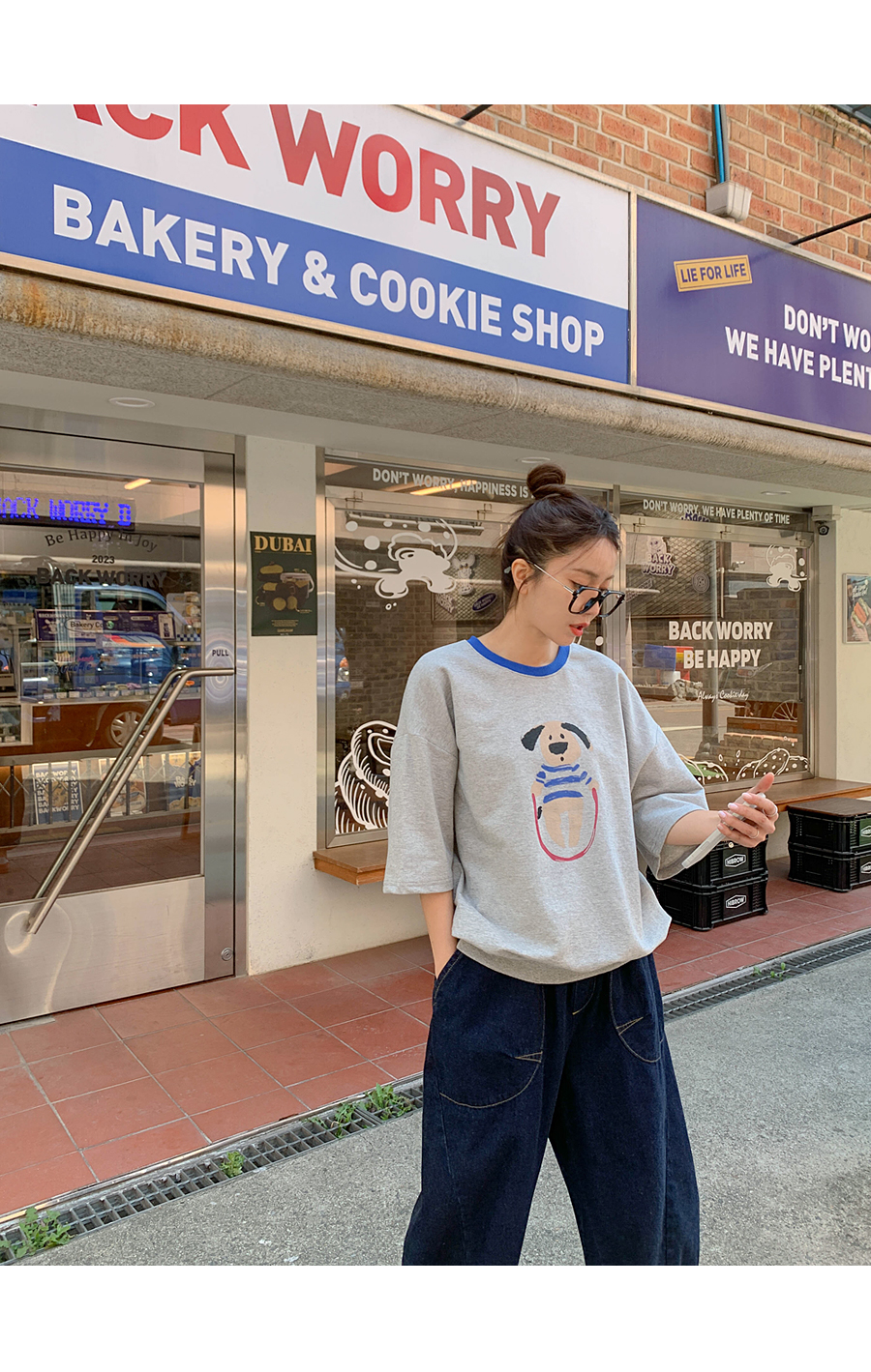 Puppy color combination print short-sleeve sweatshirt