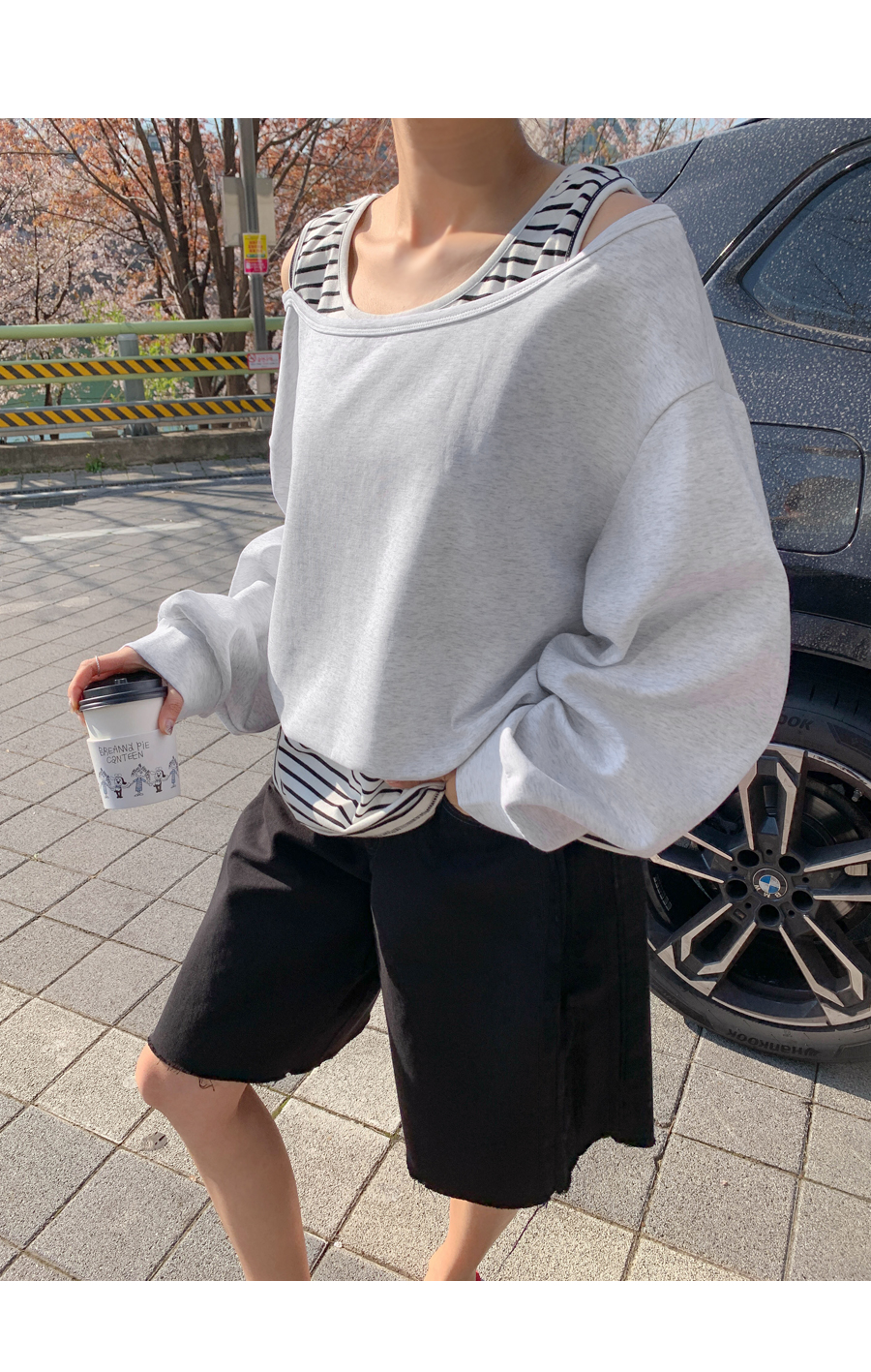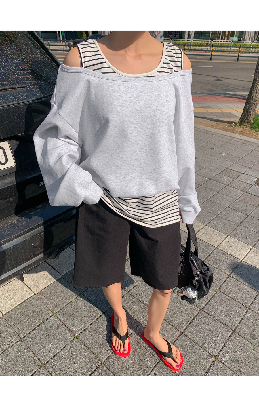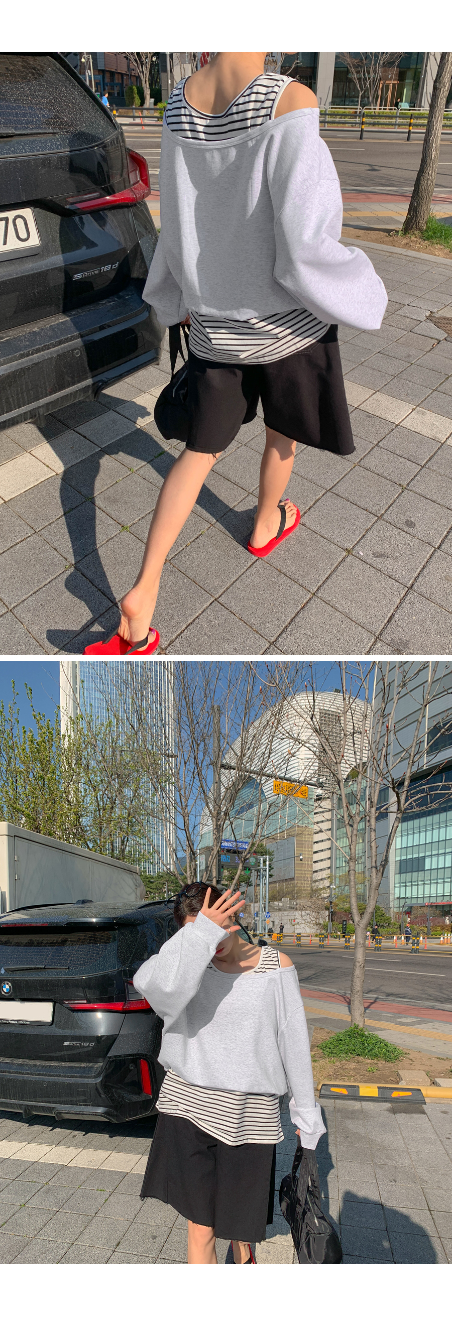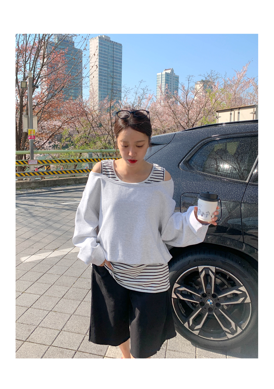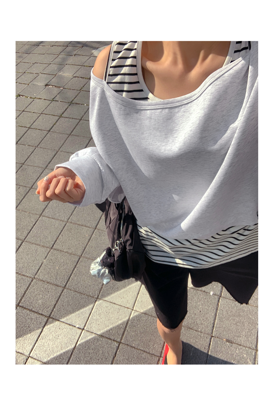 Packed Striped Sleeveless Shirts Layered Off-Shoulder Sweatshirt