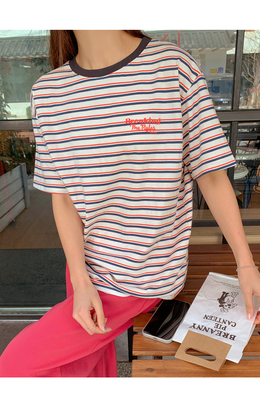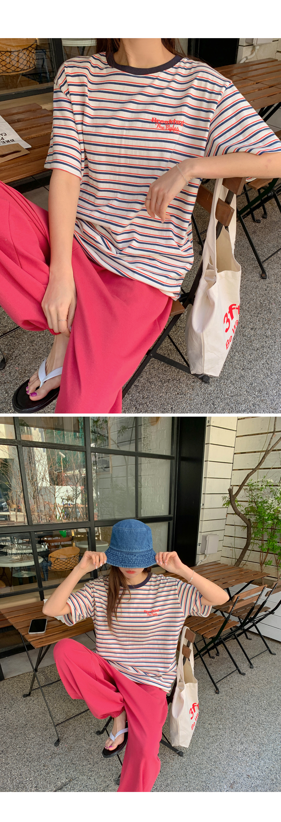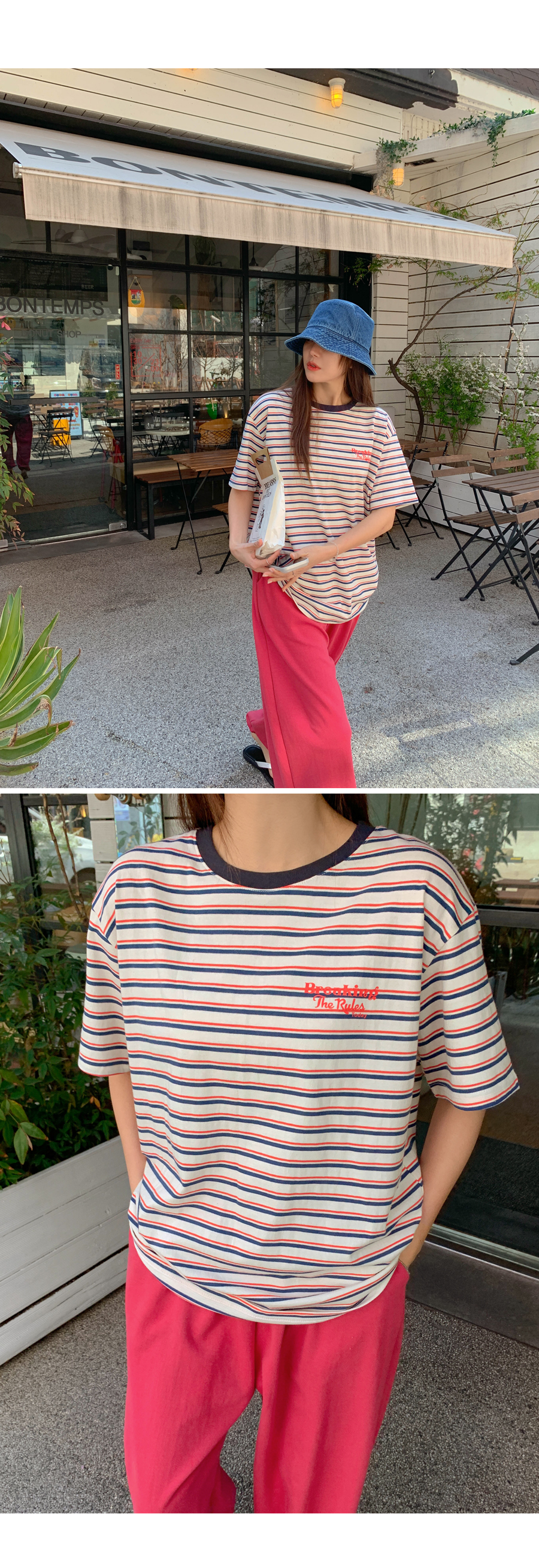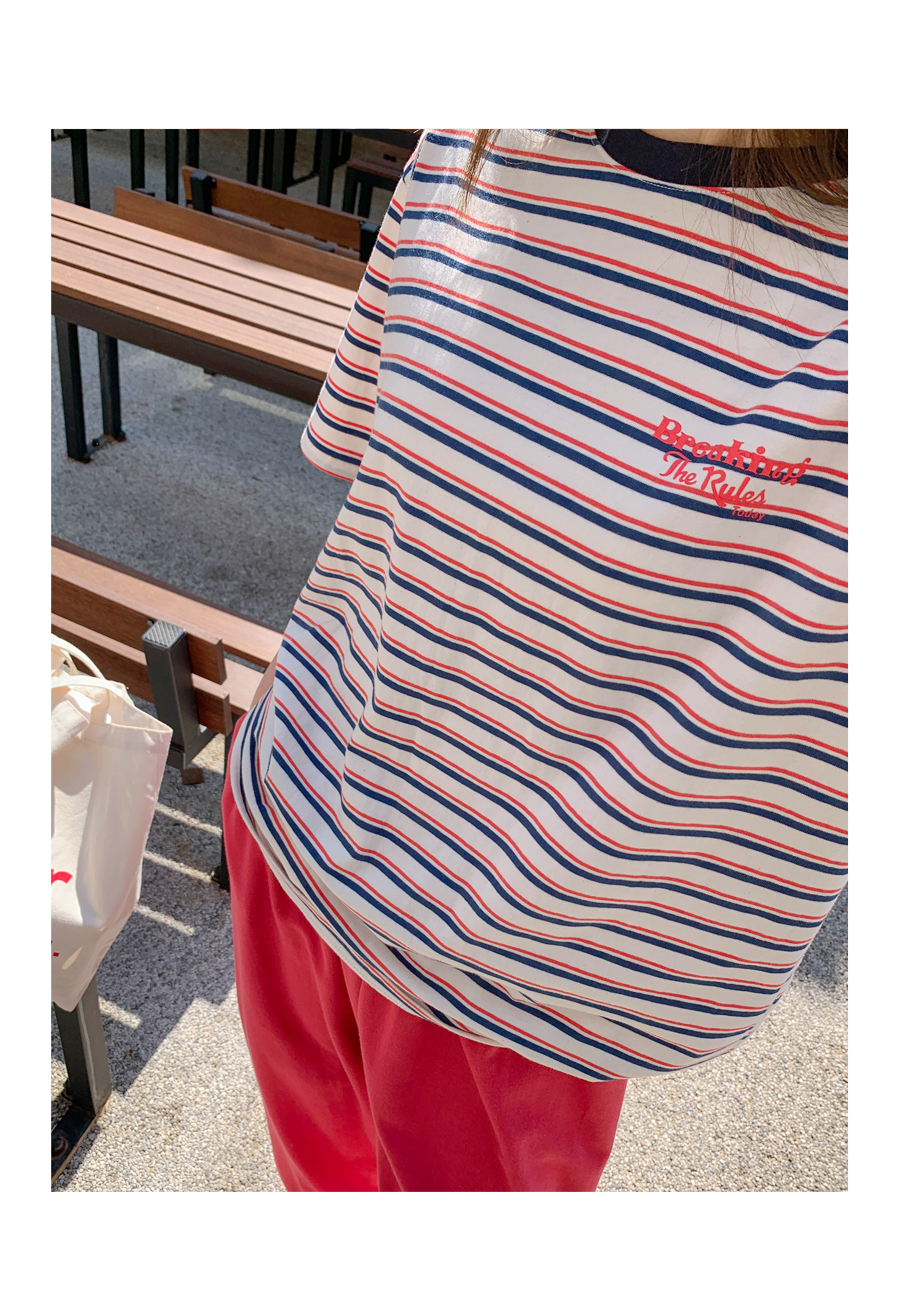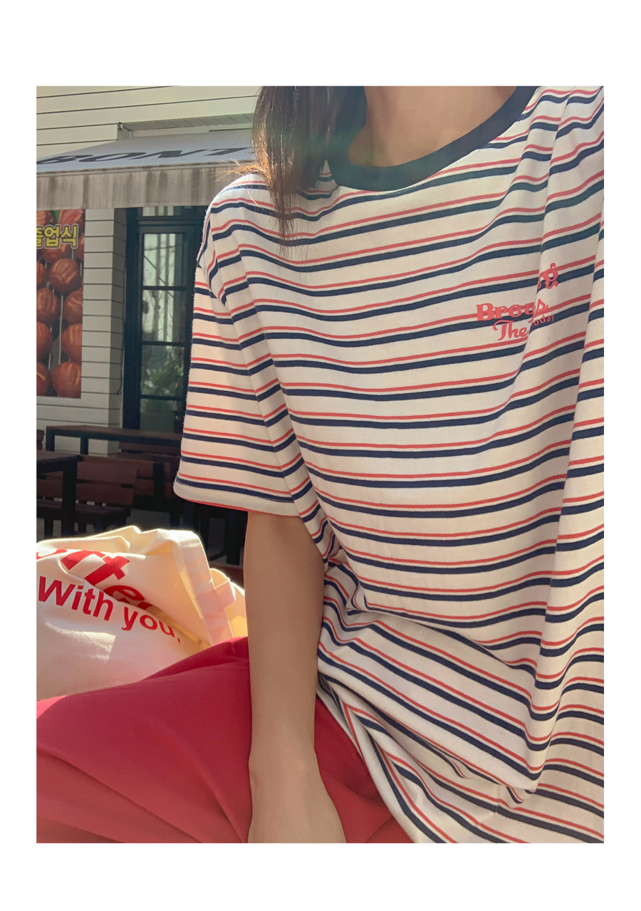 Today's color combination striped short T-shirts