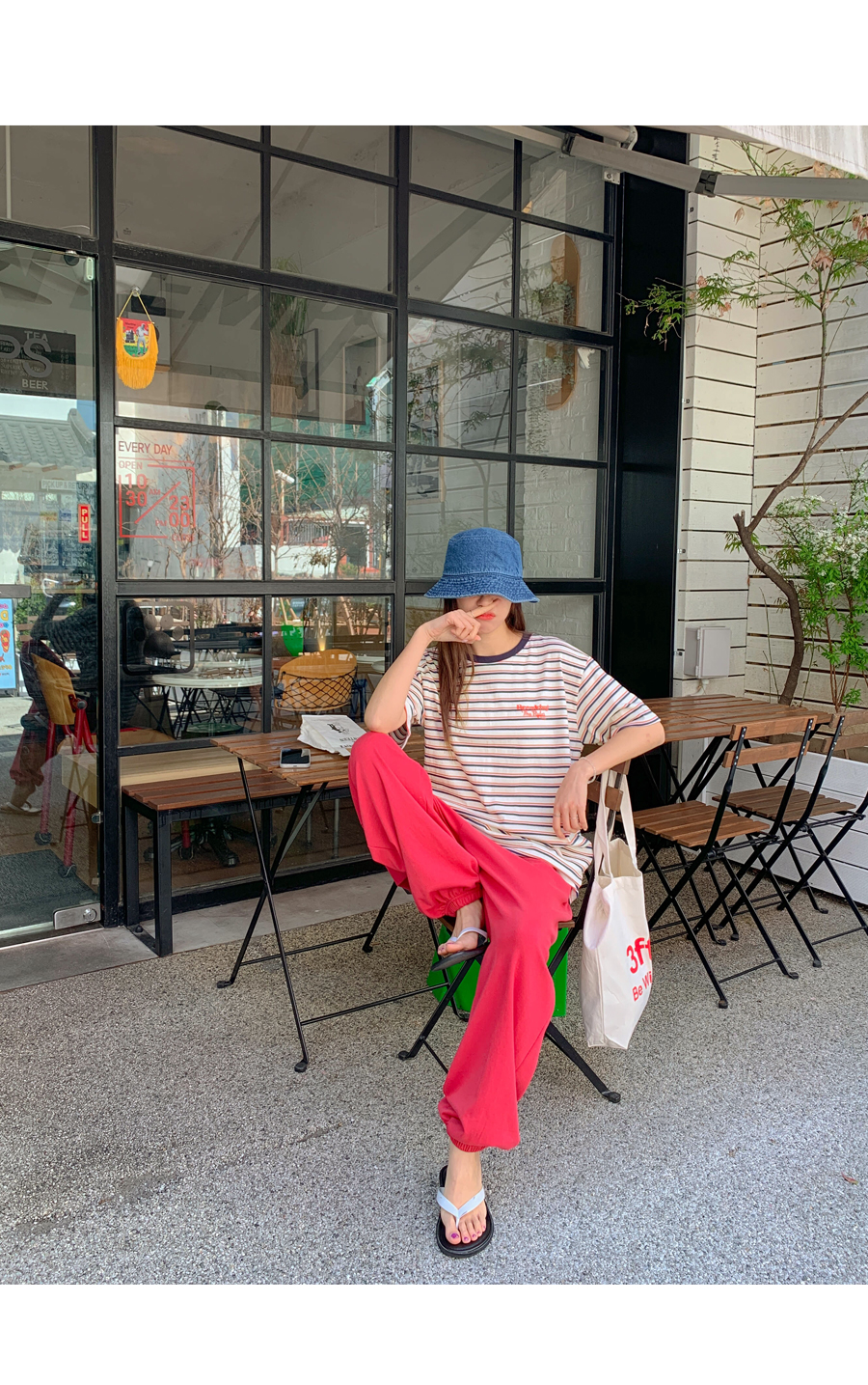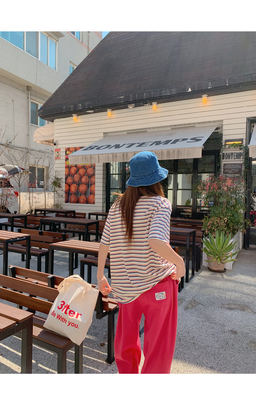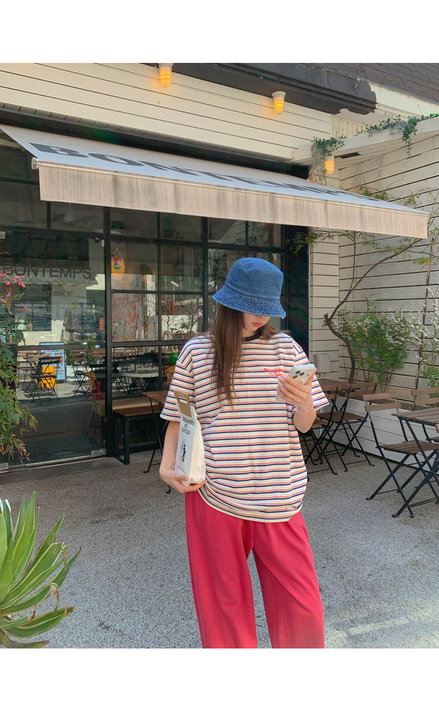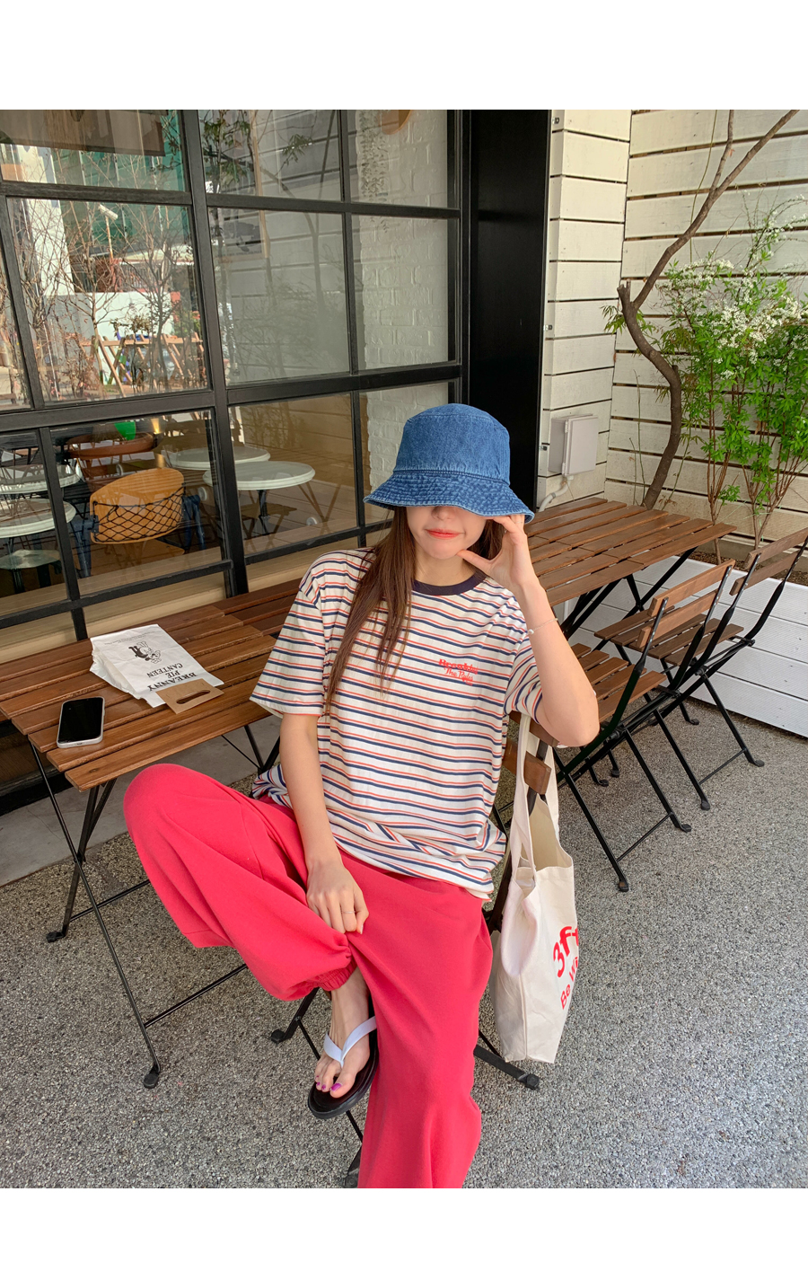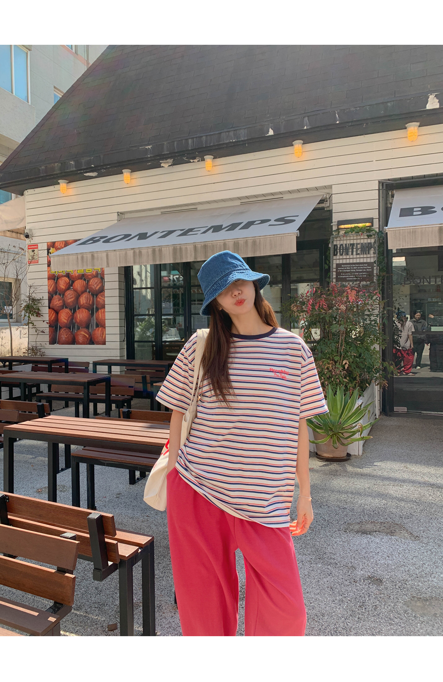 Today's color combination striped short T-shirts