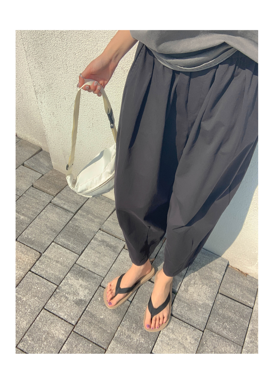 Wide Pin Tuck 9-Part Banding Baggy Pants