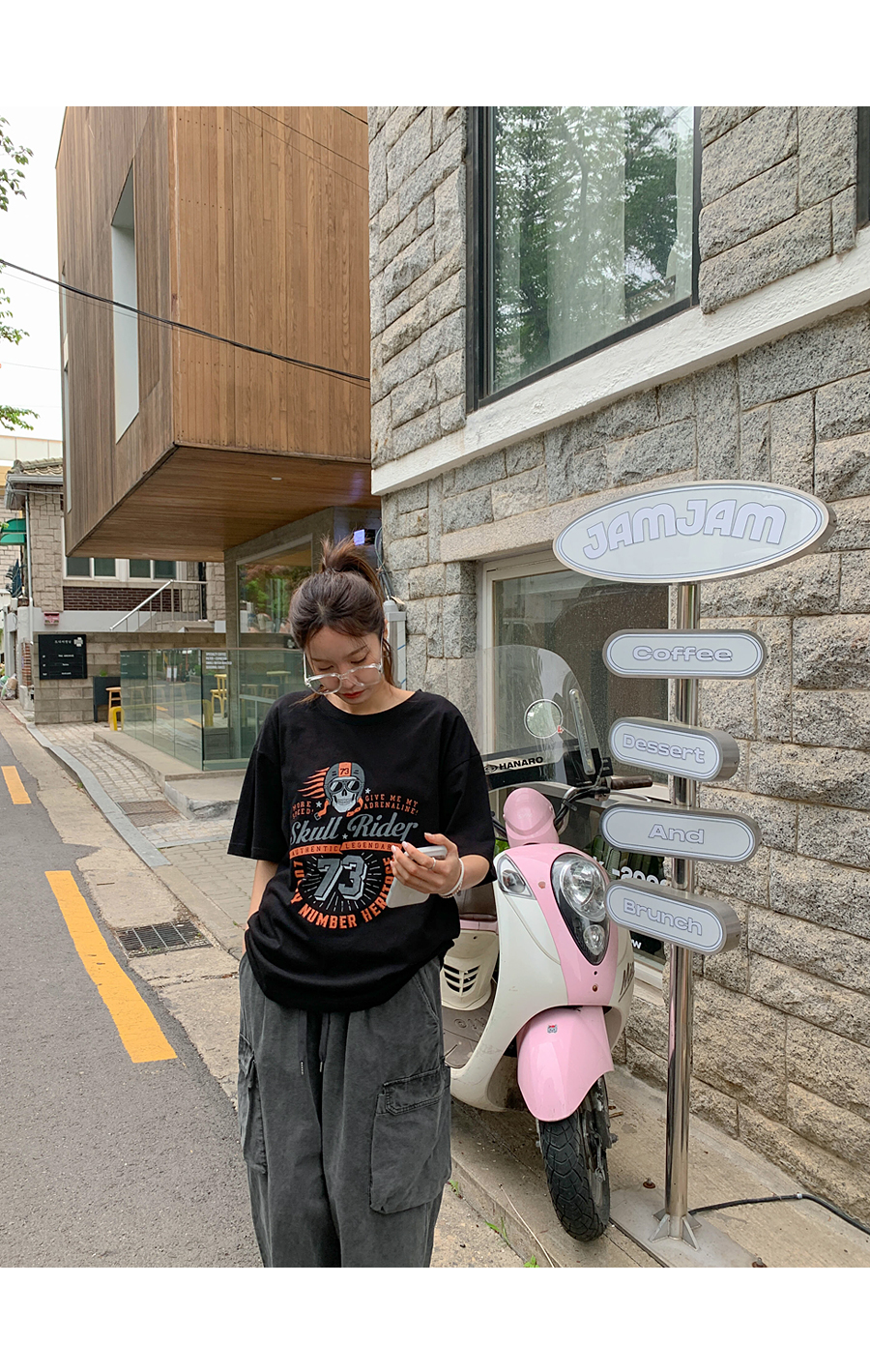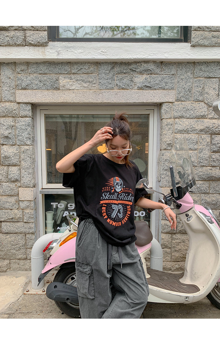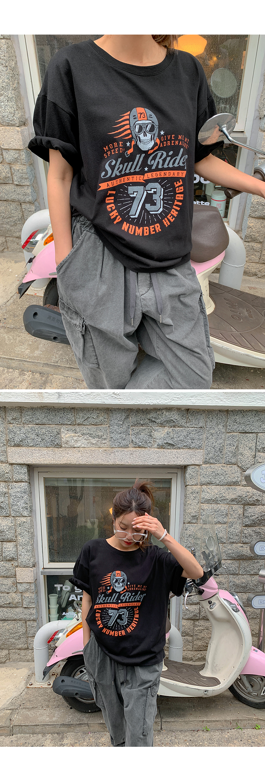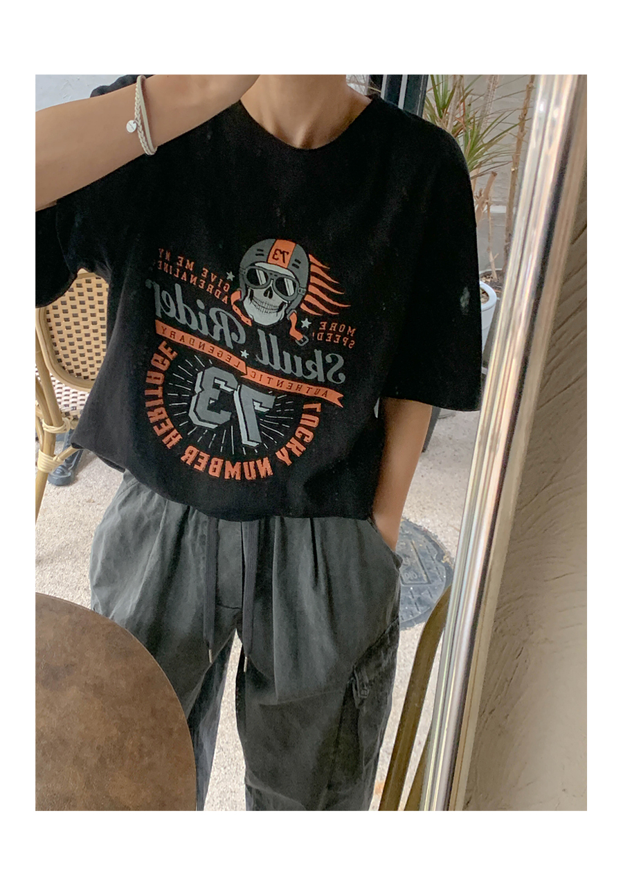 [Unisex] Skull Rider Print Loose Fit Short Sleeves T-shirt