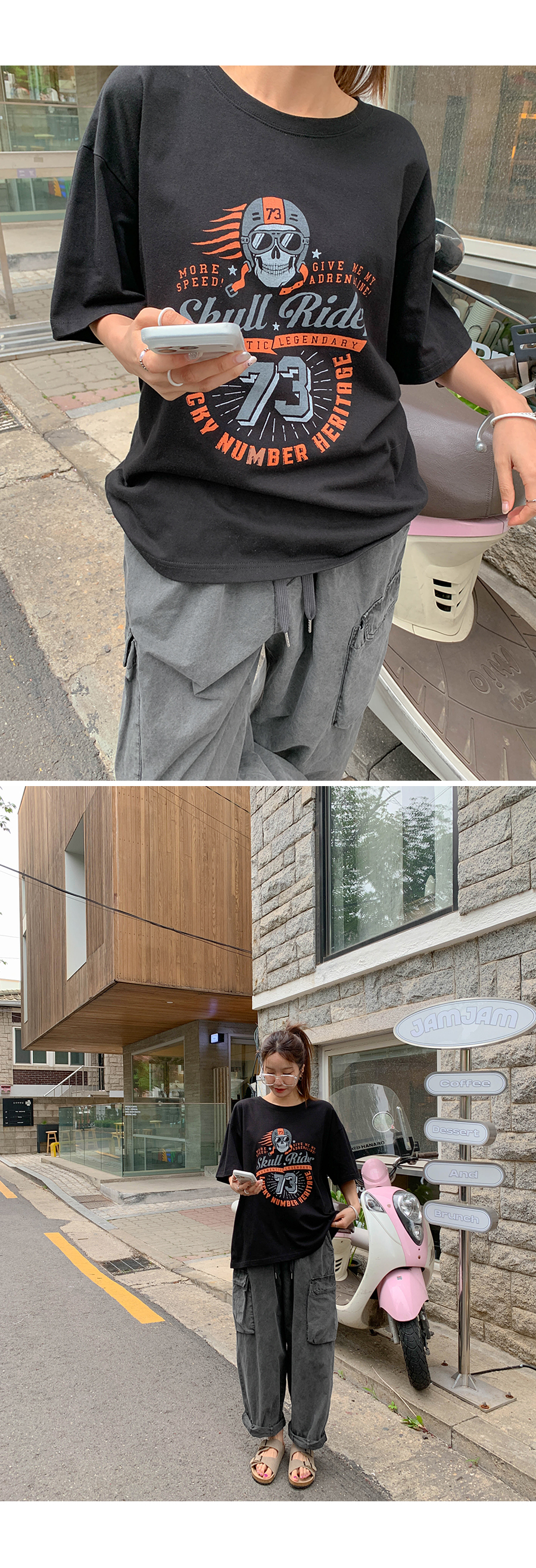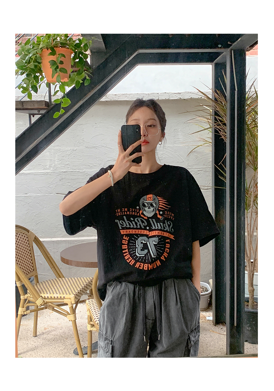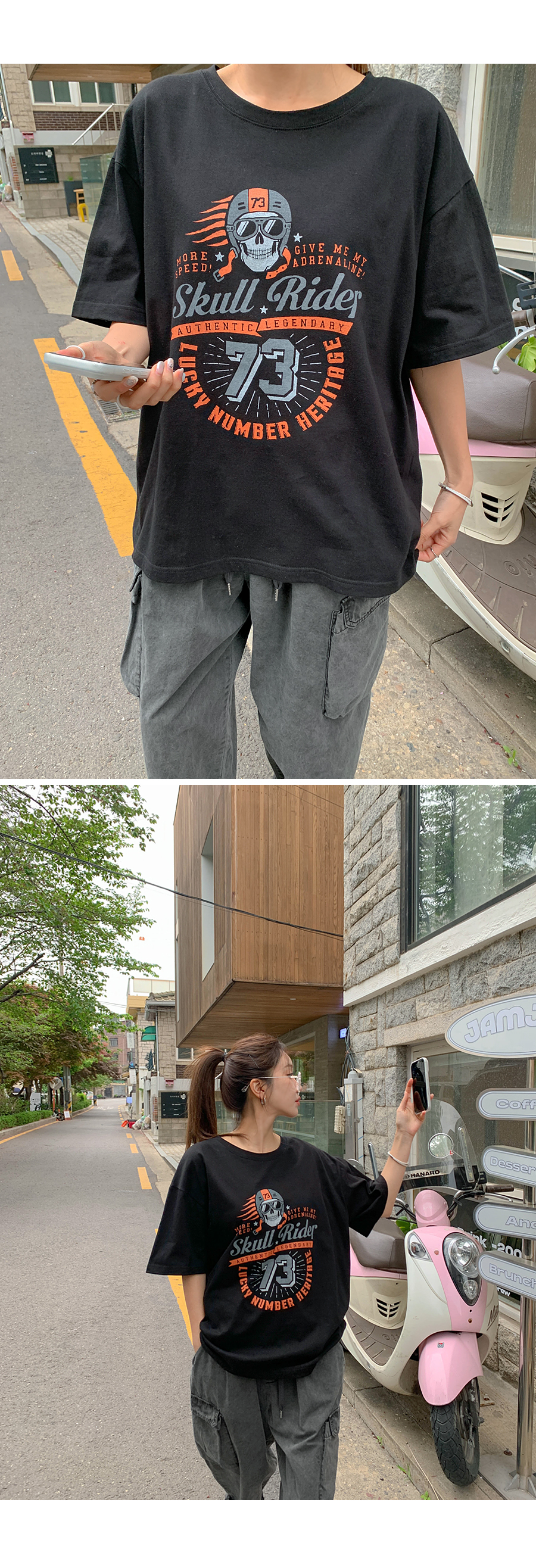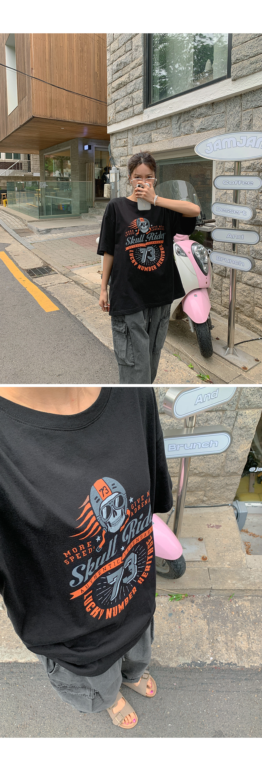 [Unisex] Skull Rider Print Loose Fit Short Sleeves T-shirt